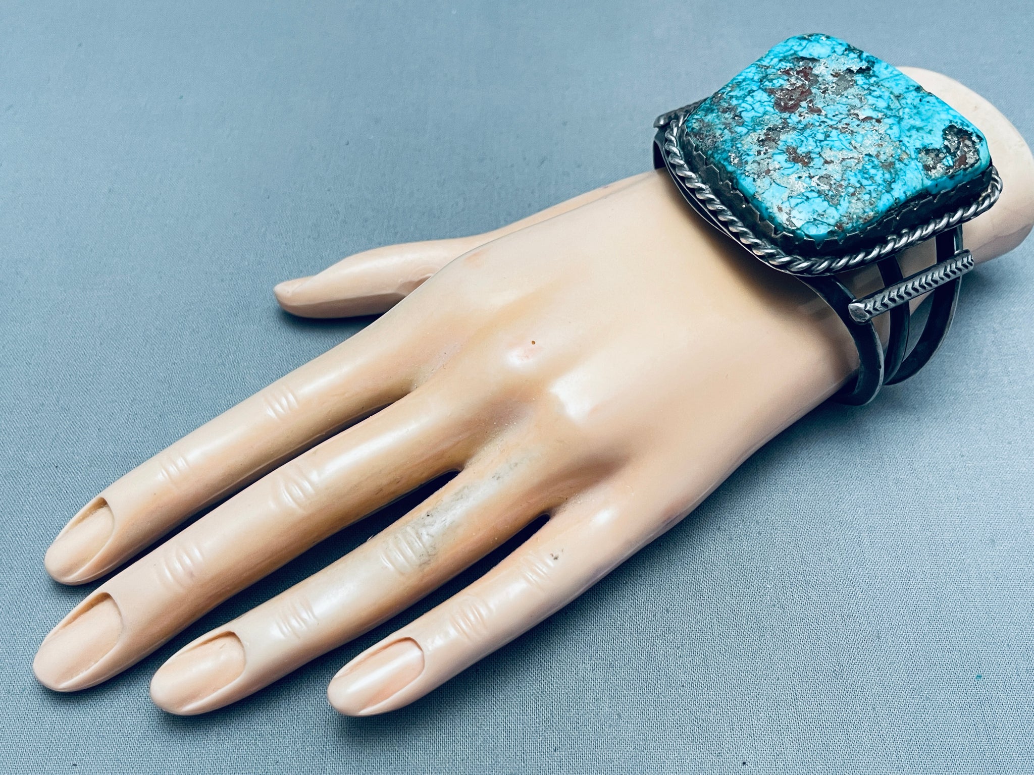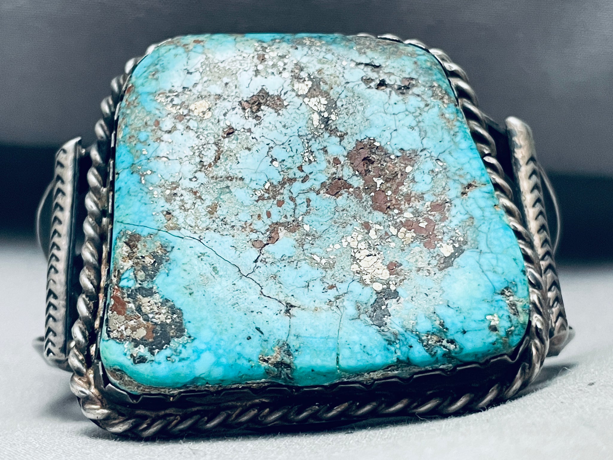 One Of The Best Ever Vintage Native American Navajo Morenci Turquoise Sterling Silver Bracelet