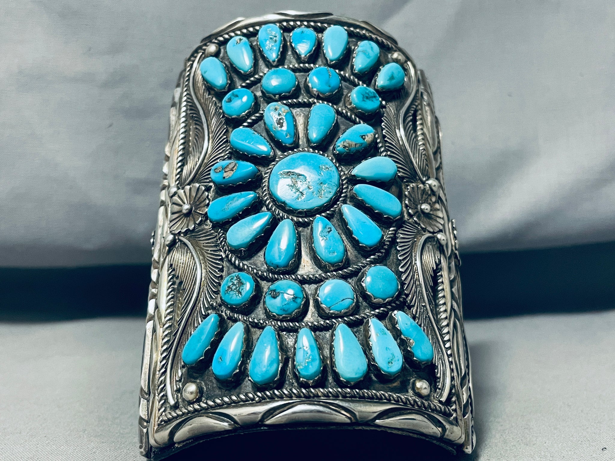 One Of The Best Ever Vintage Native American Navajo Turquoise Sterling Silver Ketoh Bracelet