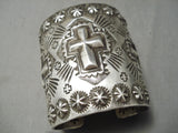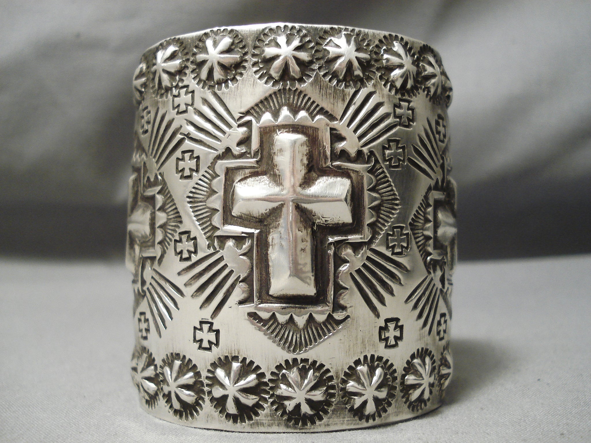 One Of The Best Native American Navajo Cross Sterling Silver Bracelet Huge Big