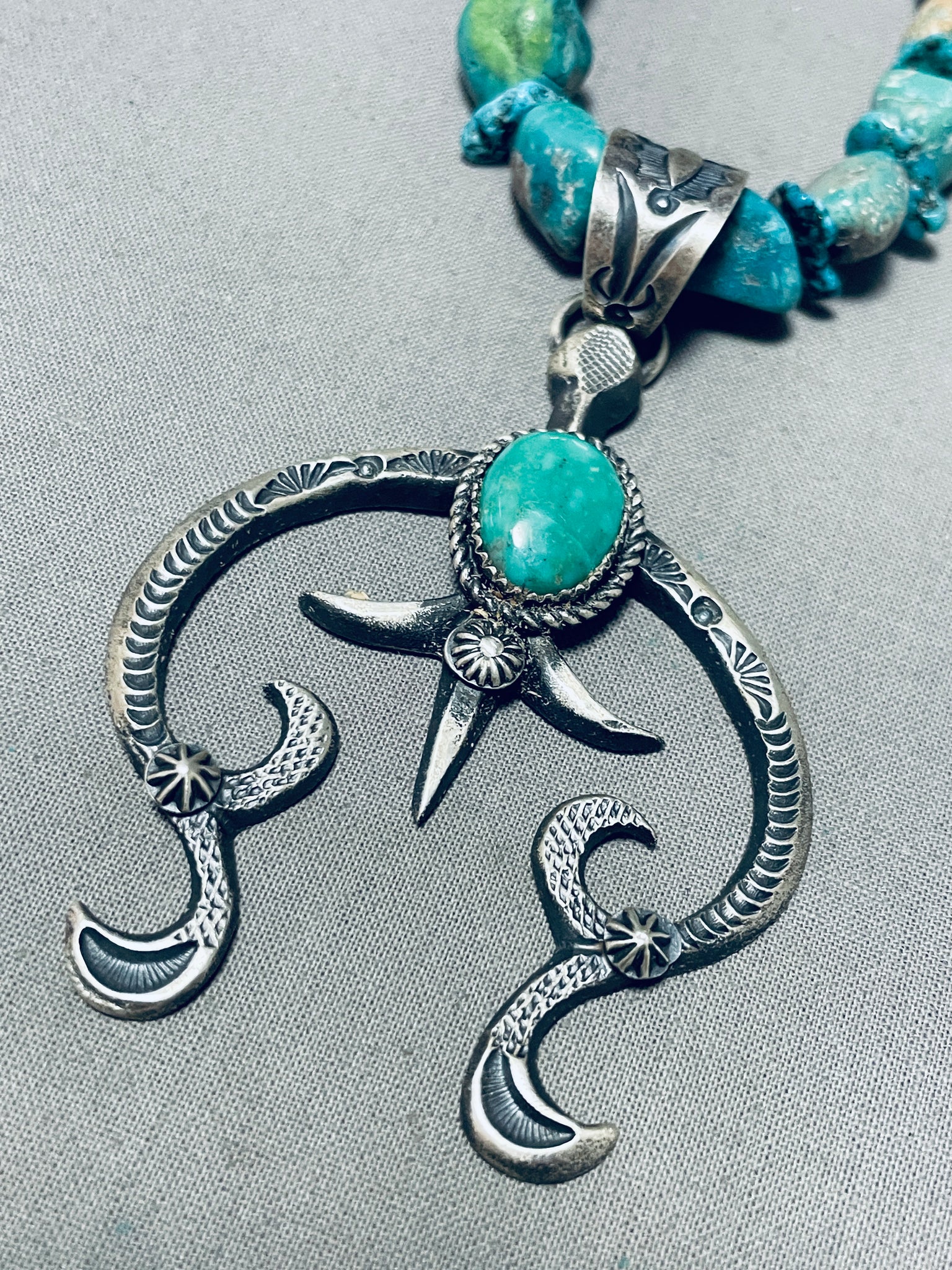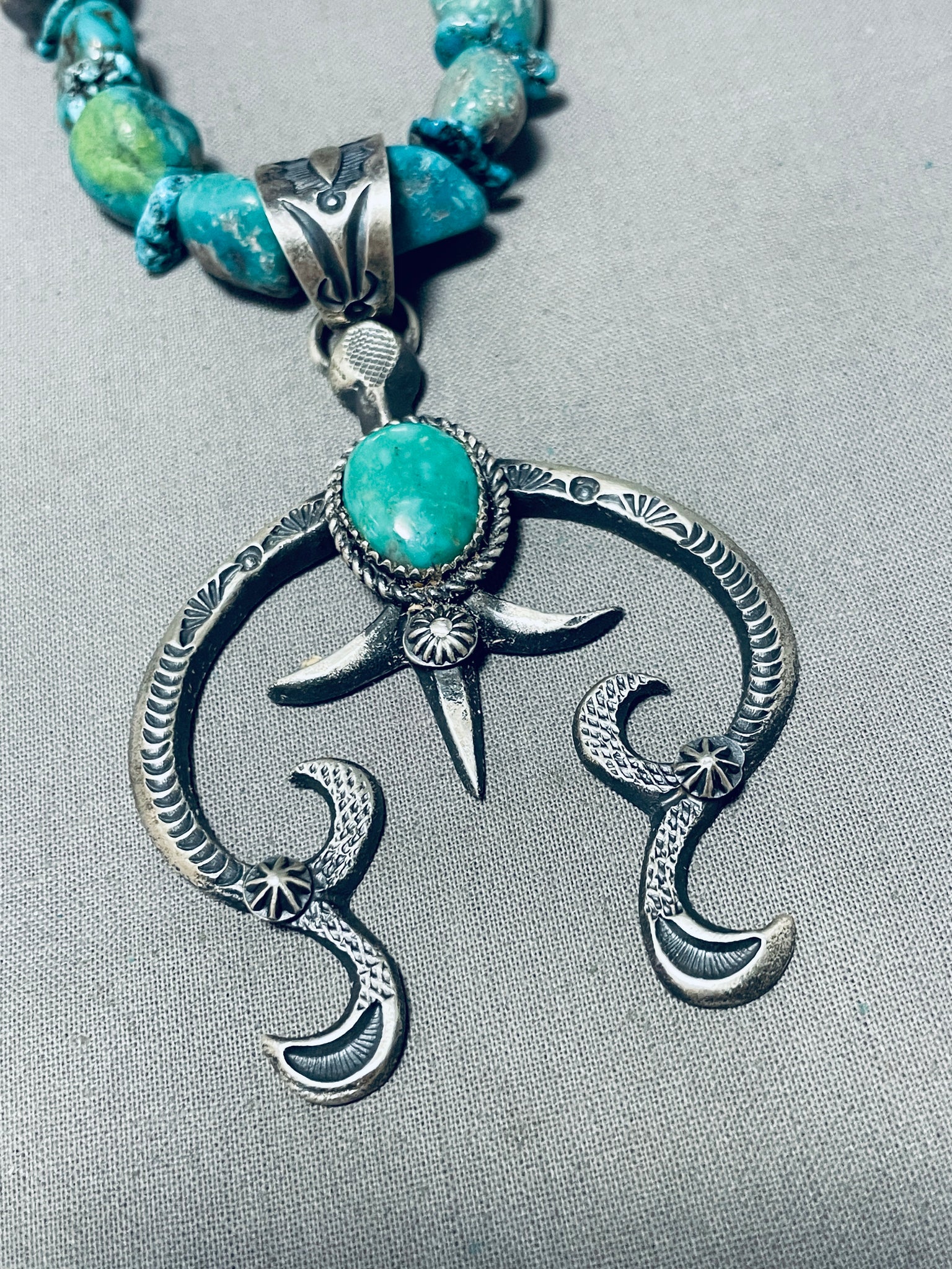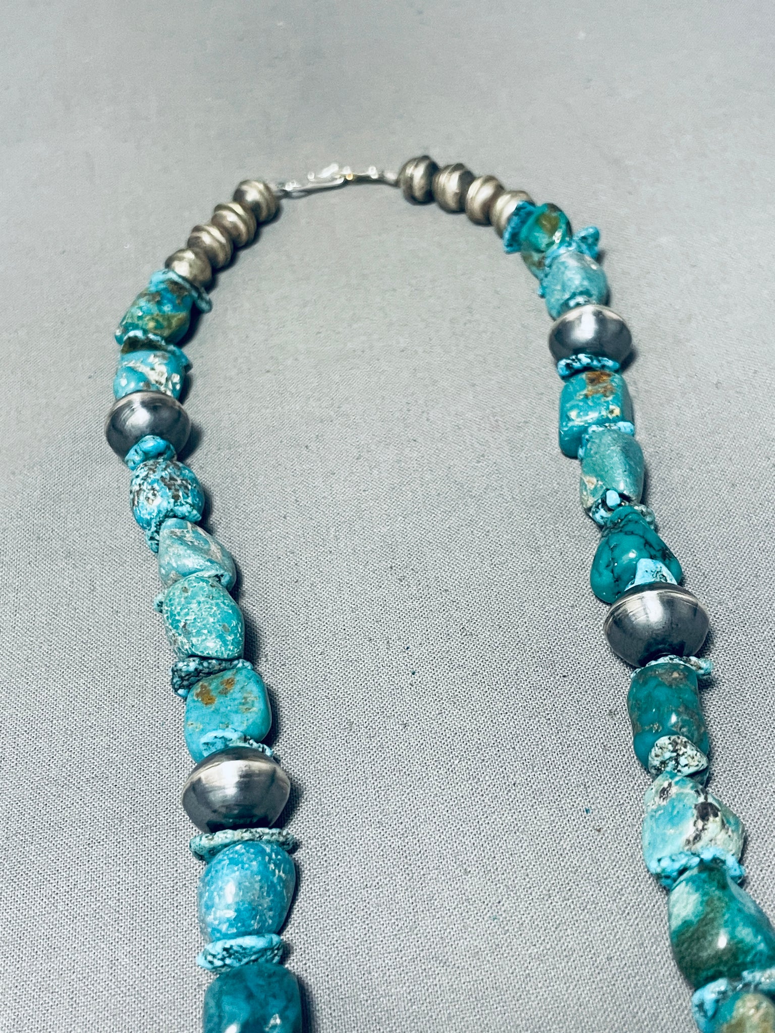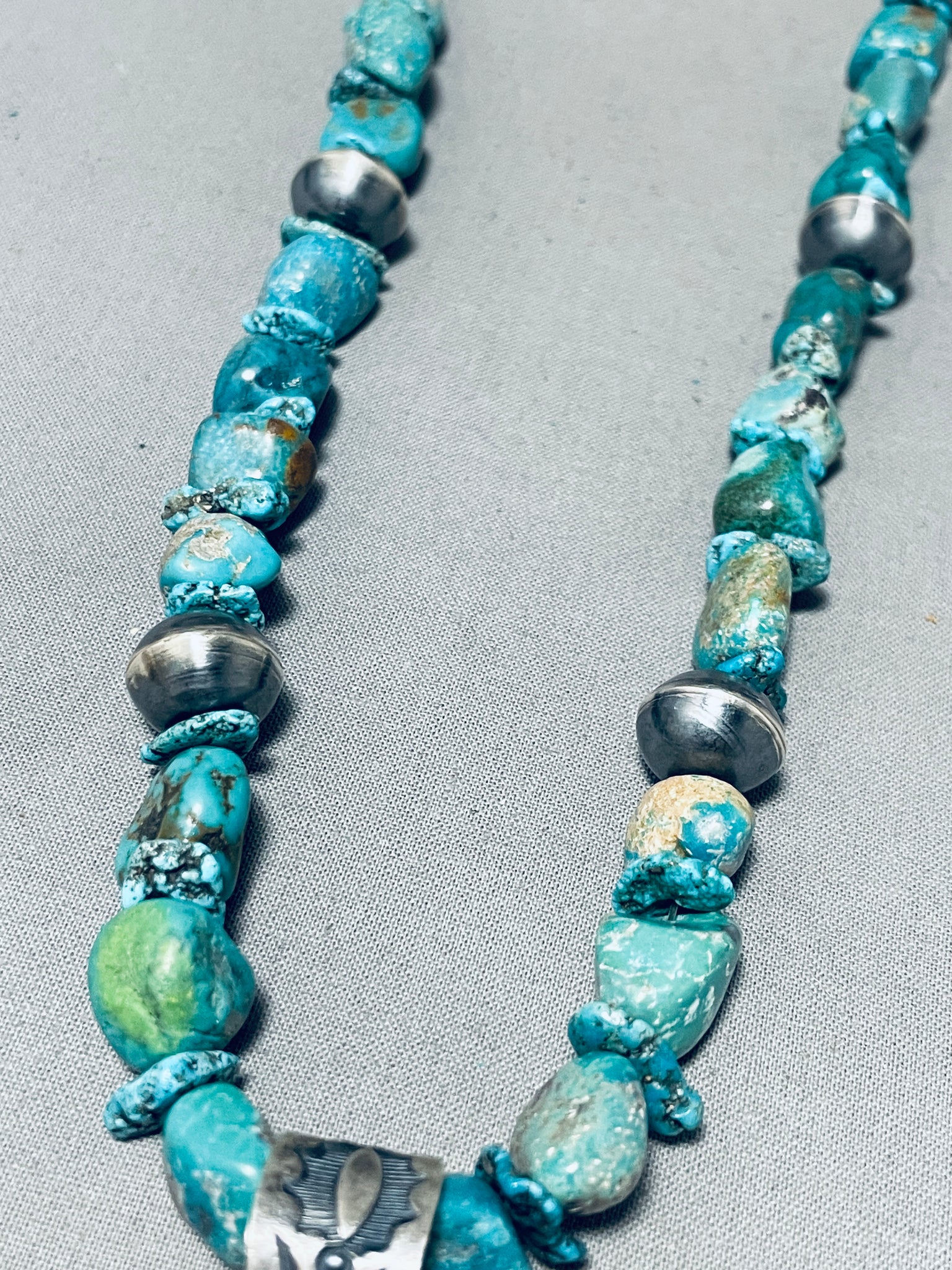 One Of The Best Native American Navajo Old Kingman Turquoise Sterling Silver Necklace