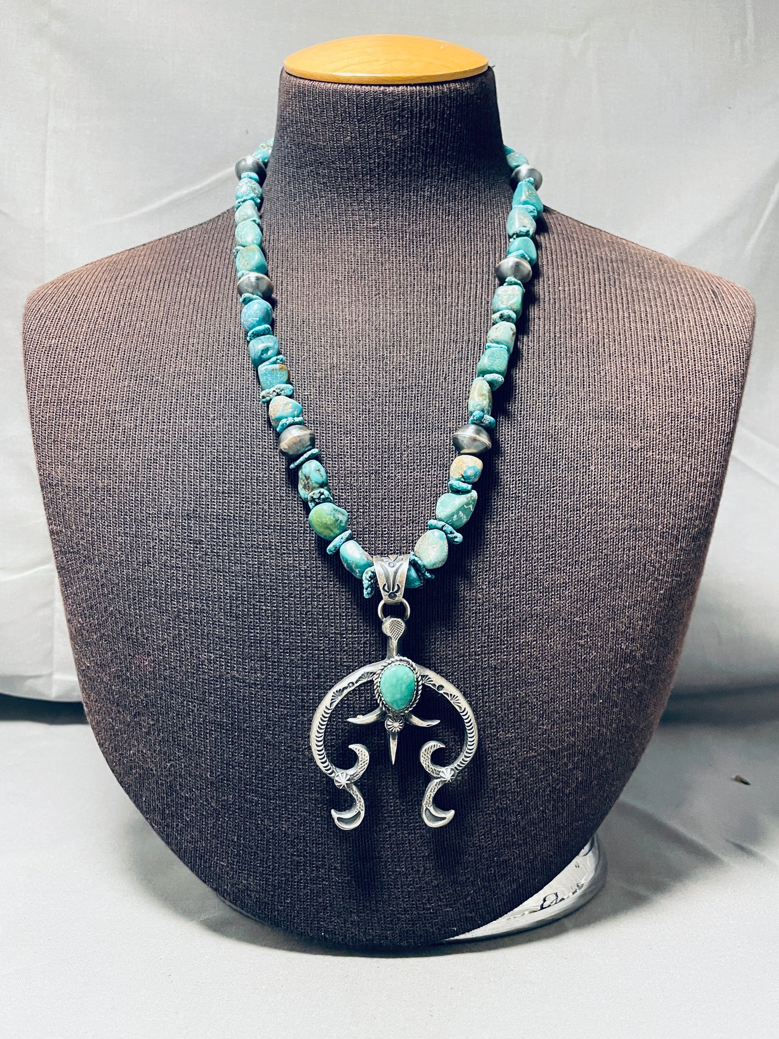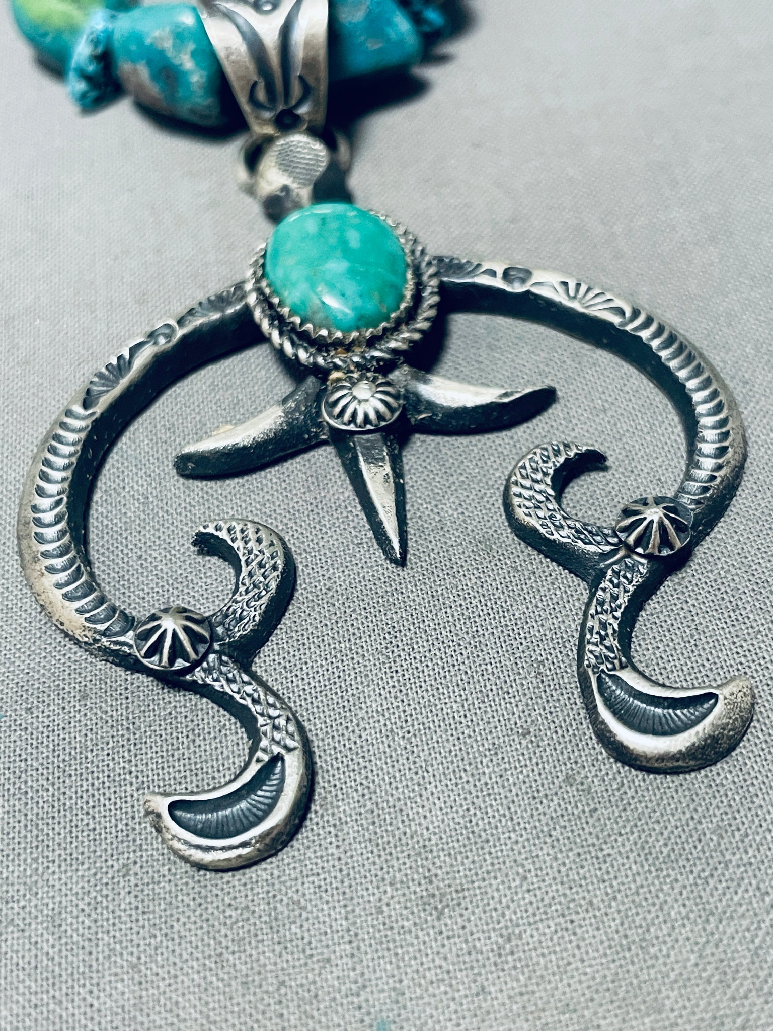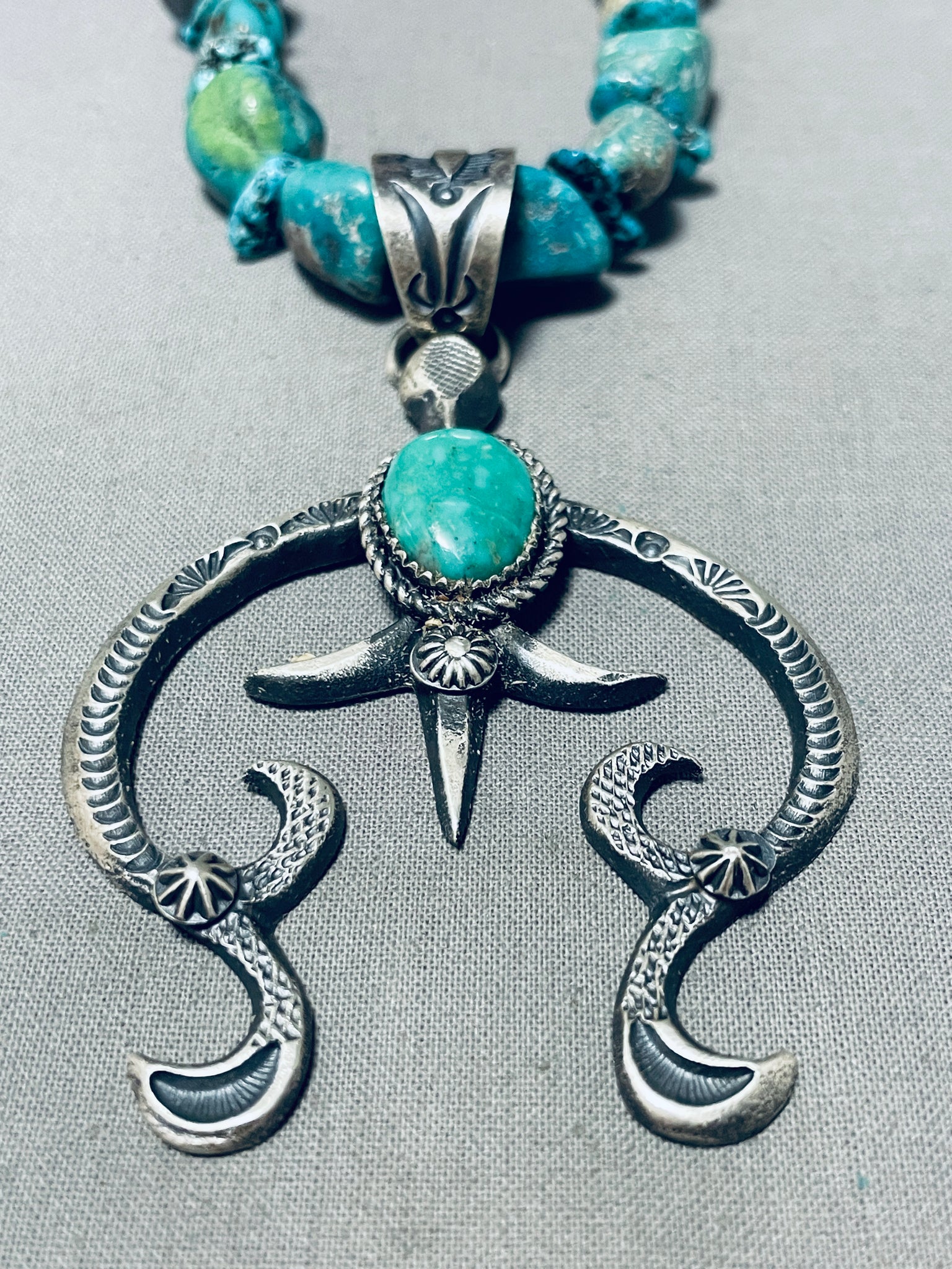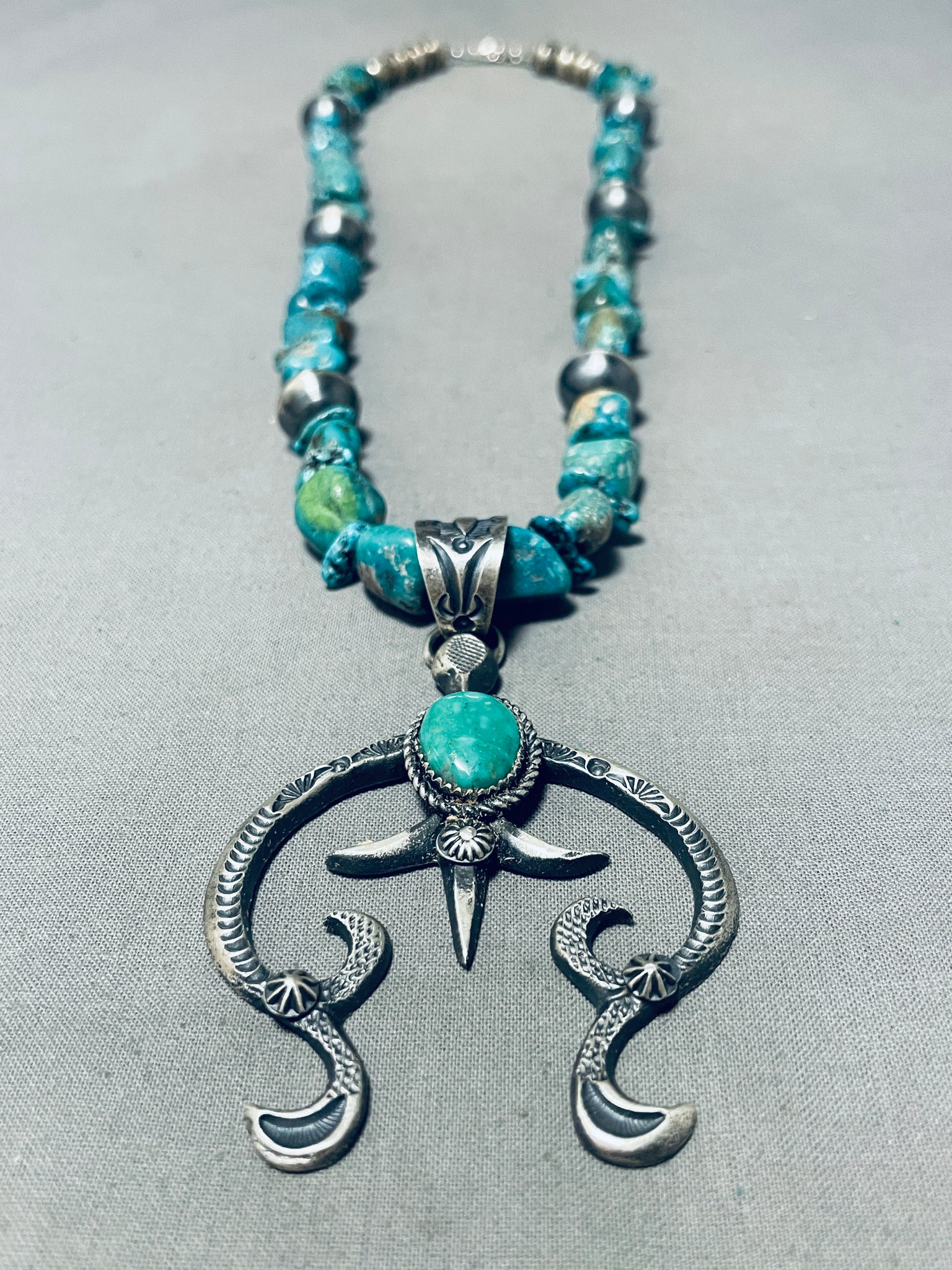 One Of The Best Native American Navajo Old Kingman Turquoise Sterling Silver Necklace