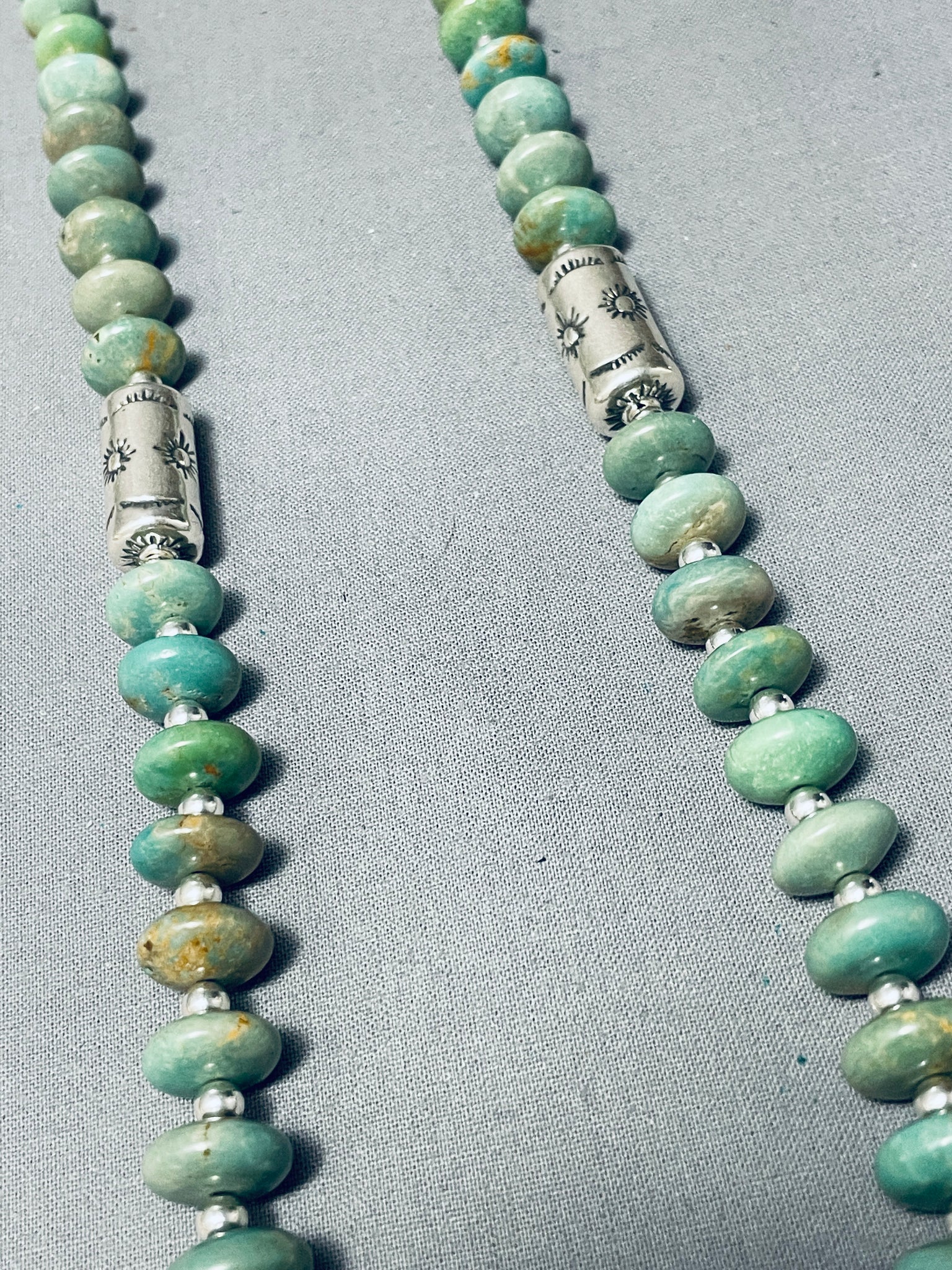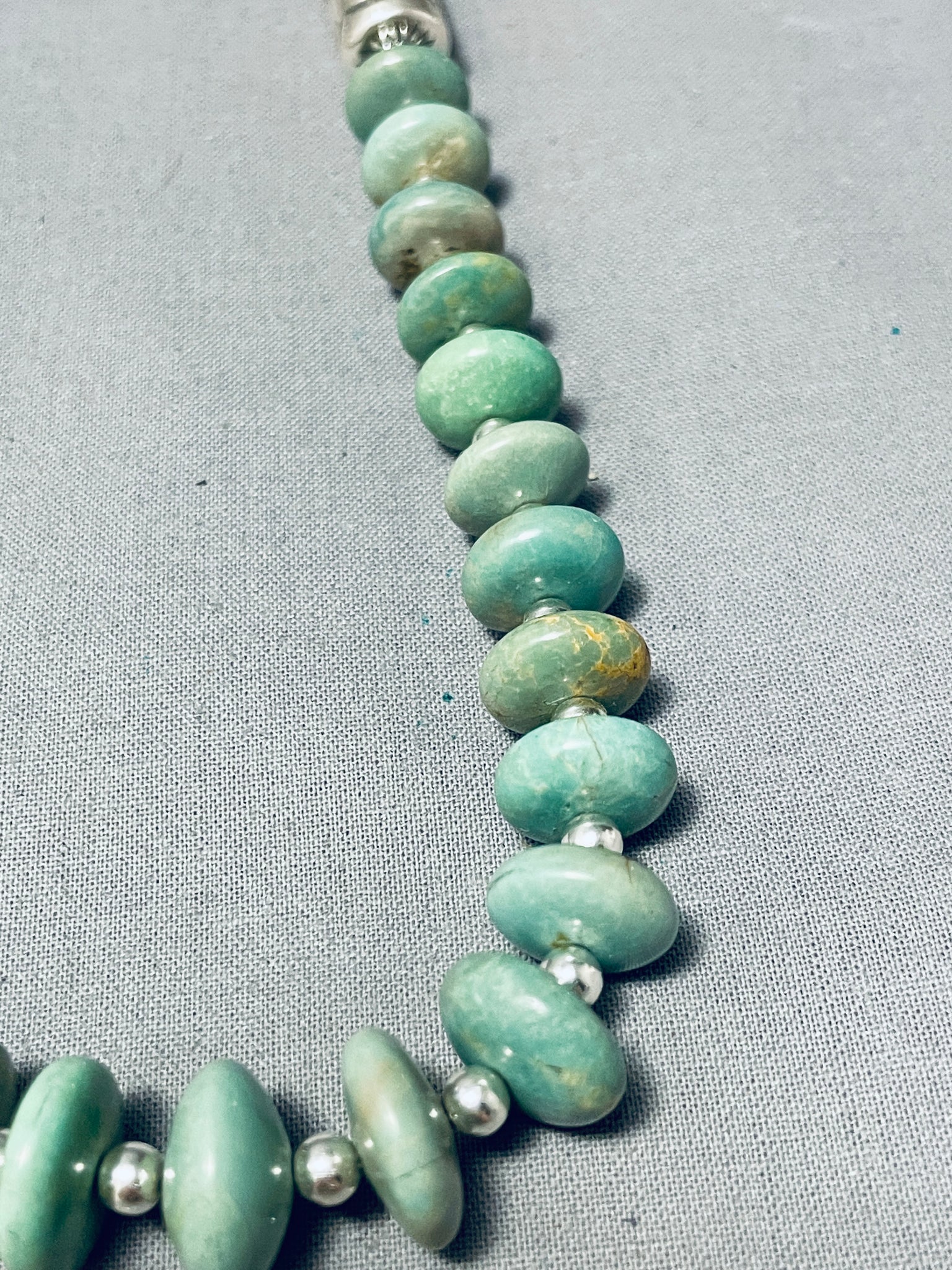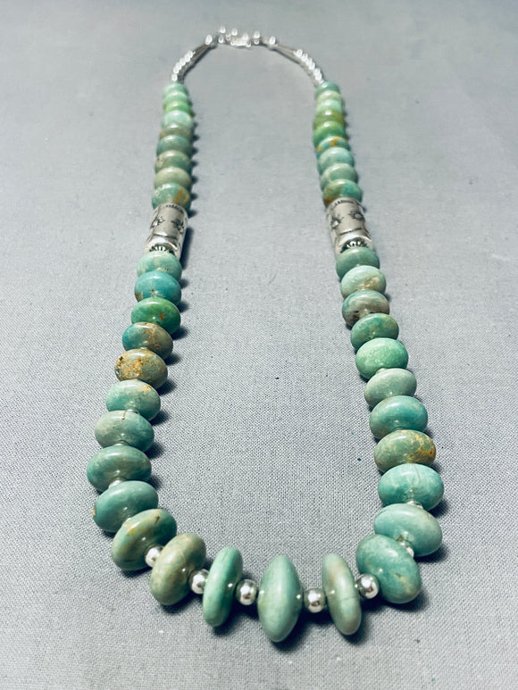 One Of The Best Navajo Green Turquoise Sterling Silver Tubule Necklace