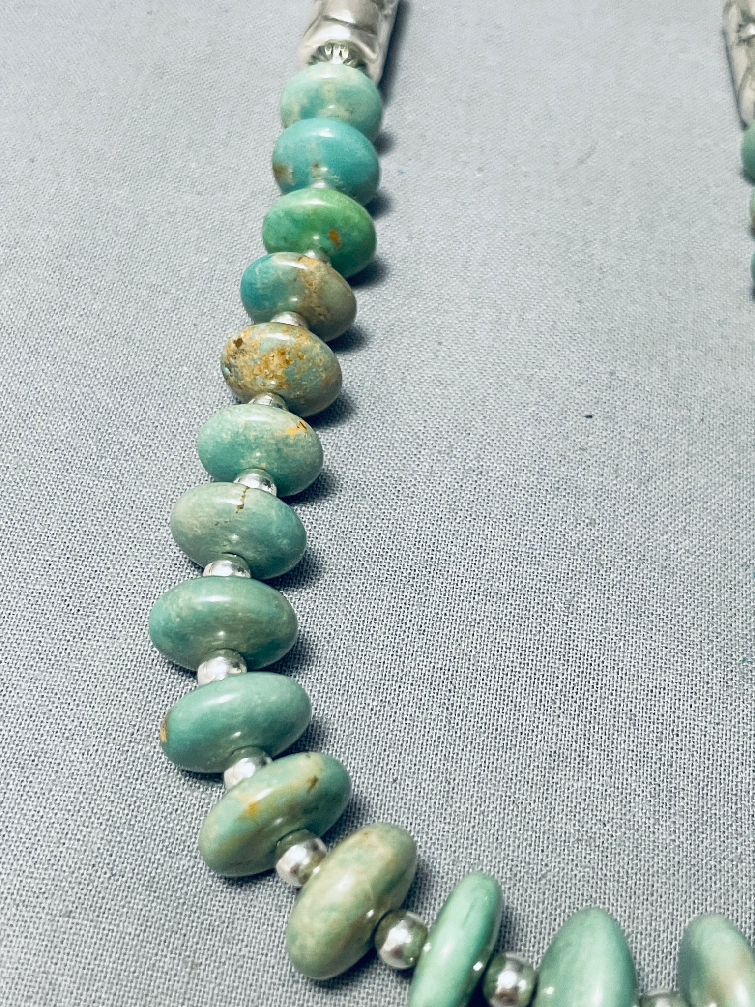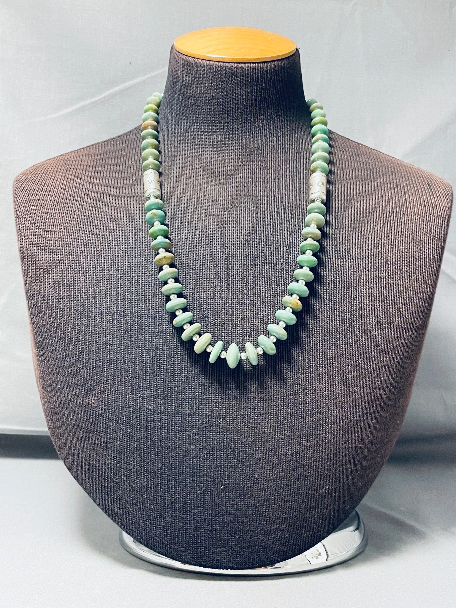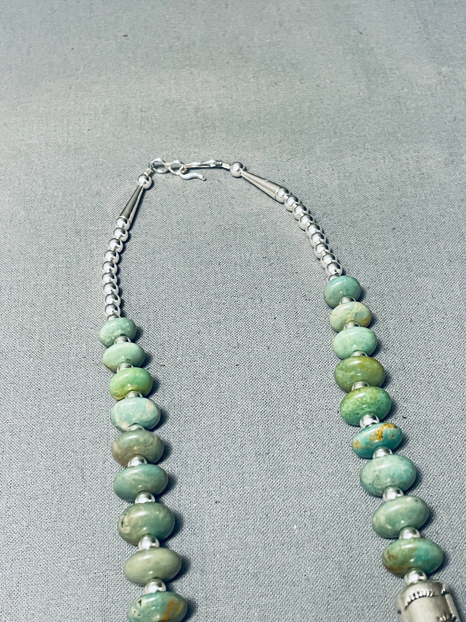 One Of The Best Navajo Green Turquoise Sterling Silver Tubule Necklace