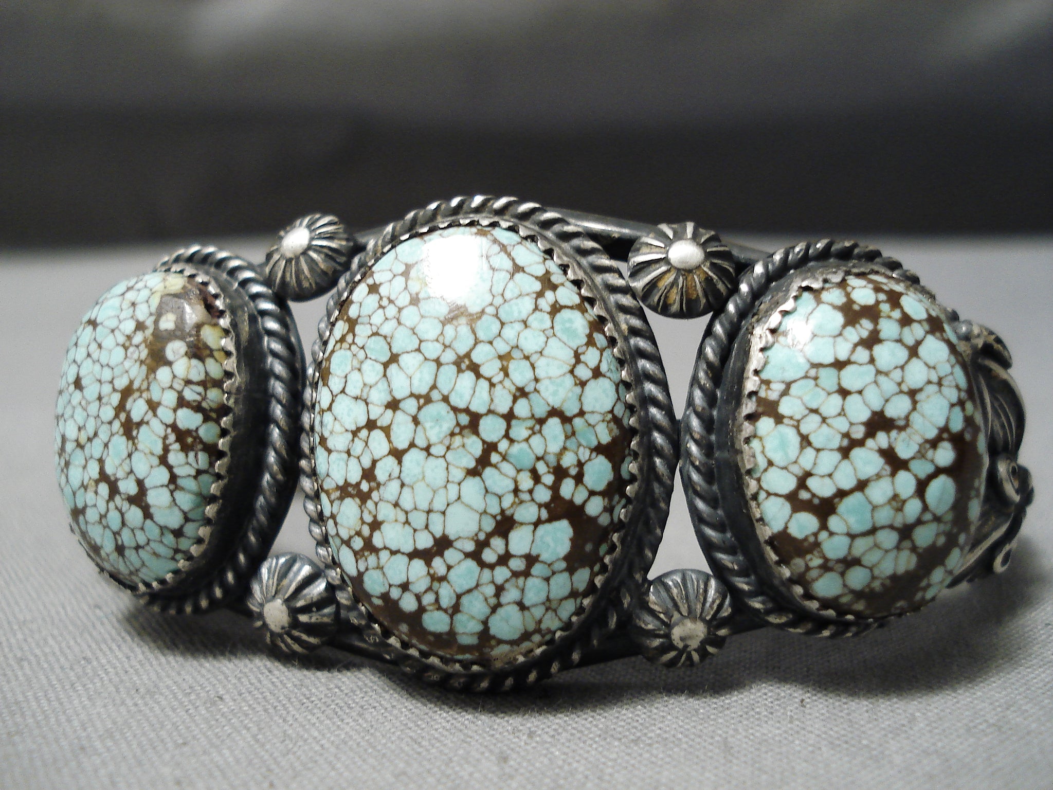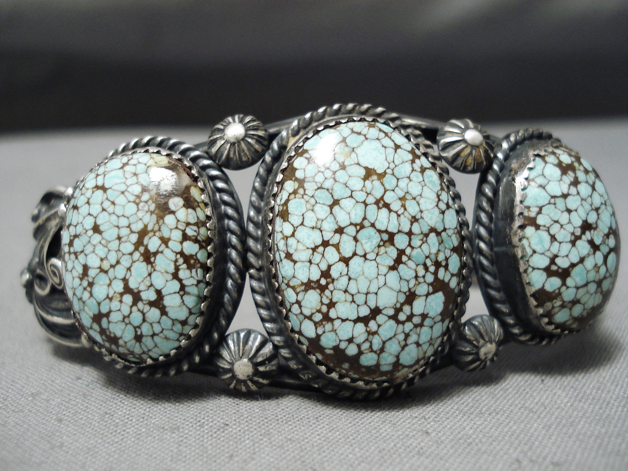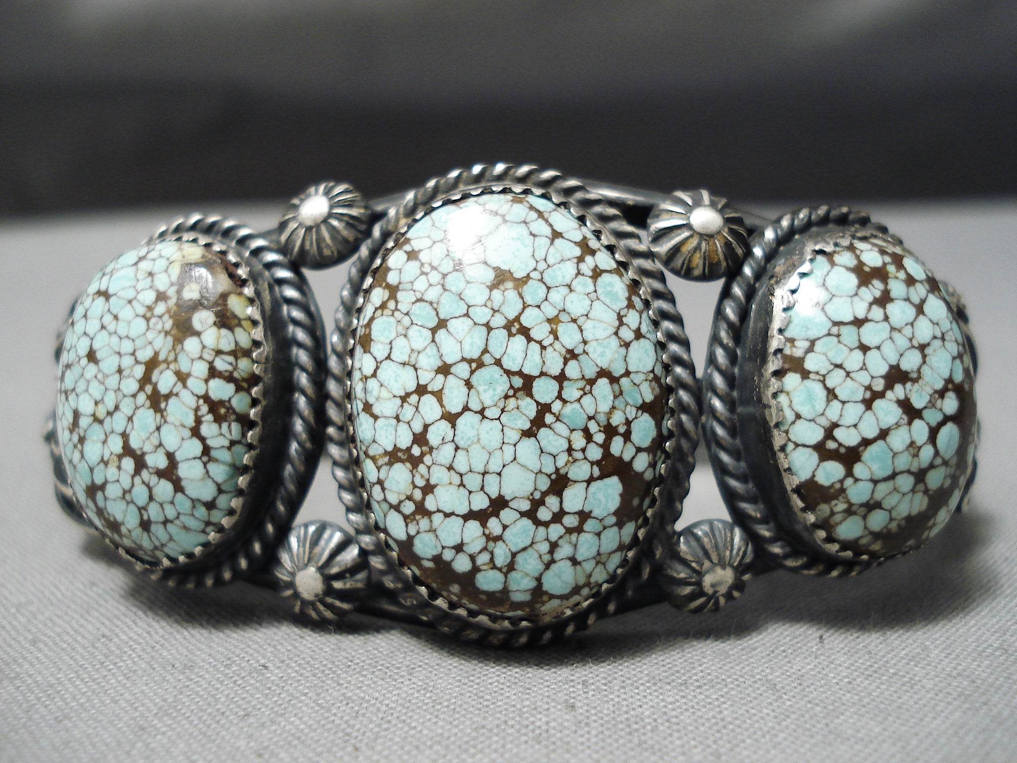 One Of The Best Vintage Native American Navajo #8 Turquoise Sterling Silver Bracelet Old