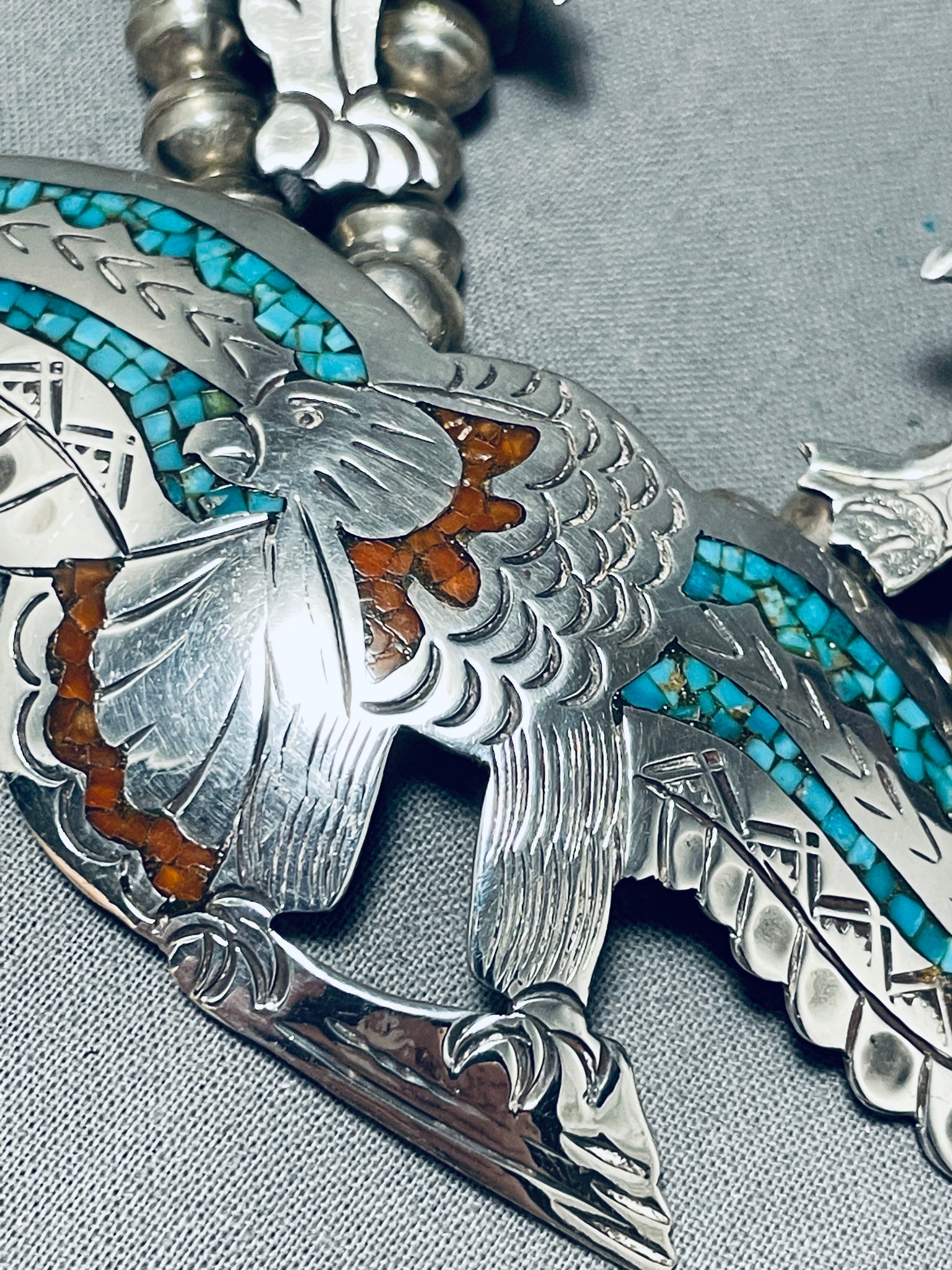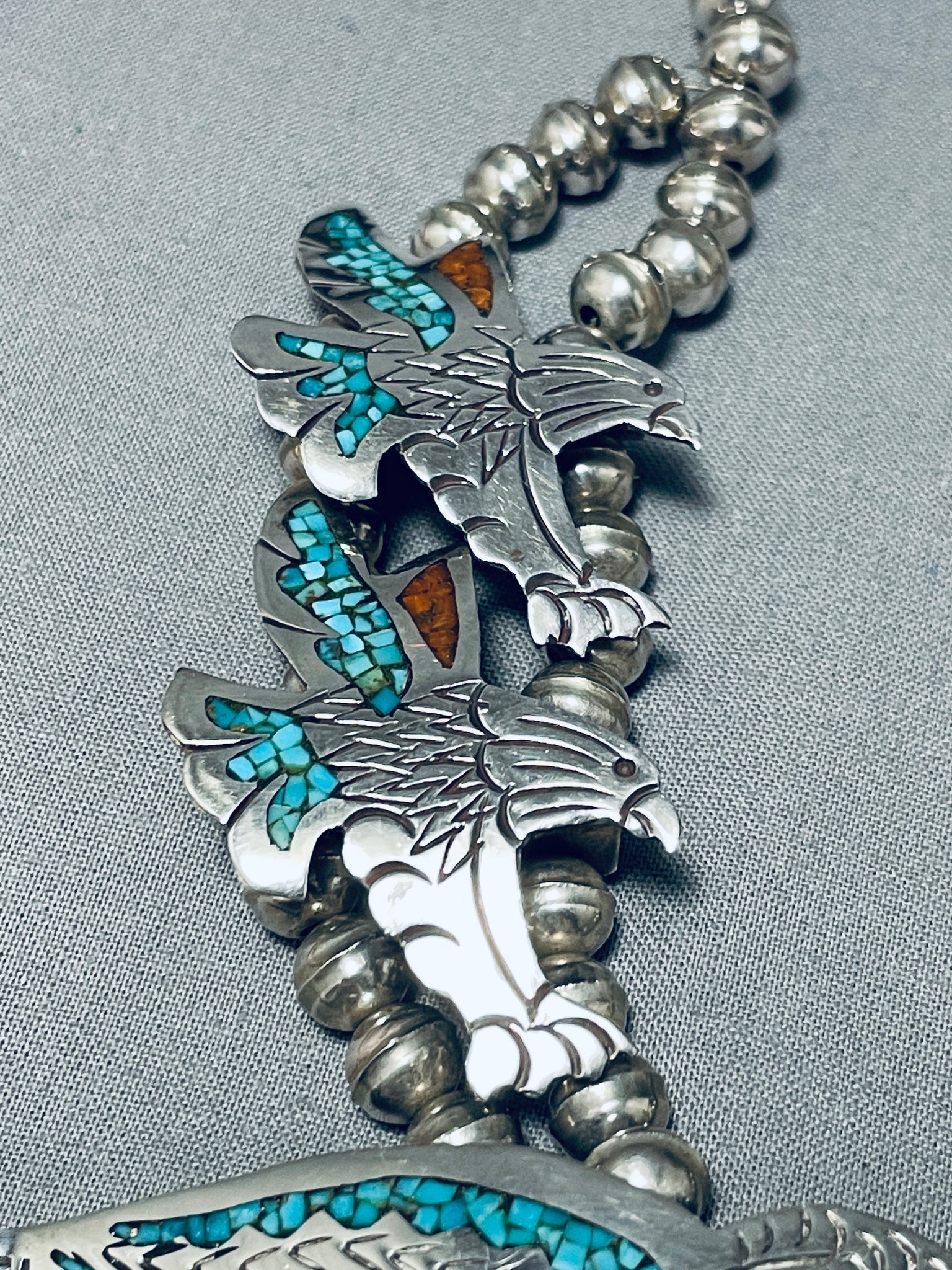 One Of The Best Vintage Native American Navajo Choker Turquoise Inlay Sterling Silver Necklace