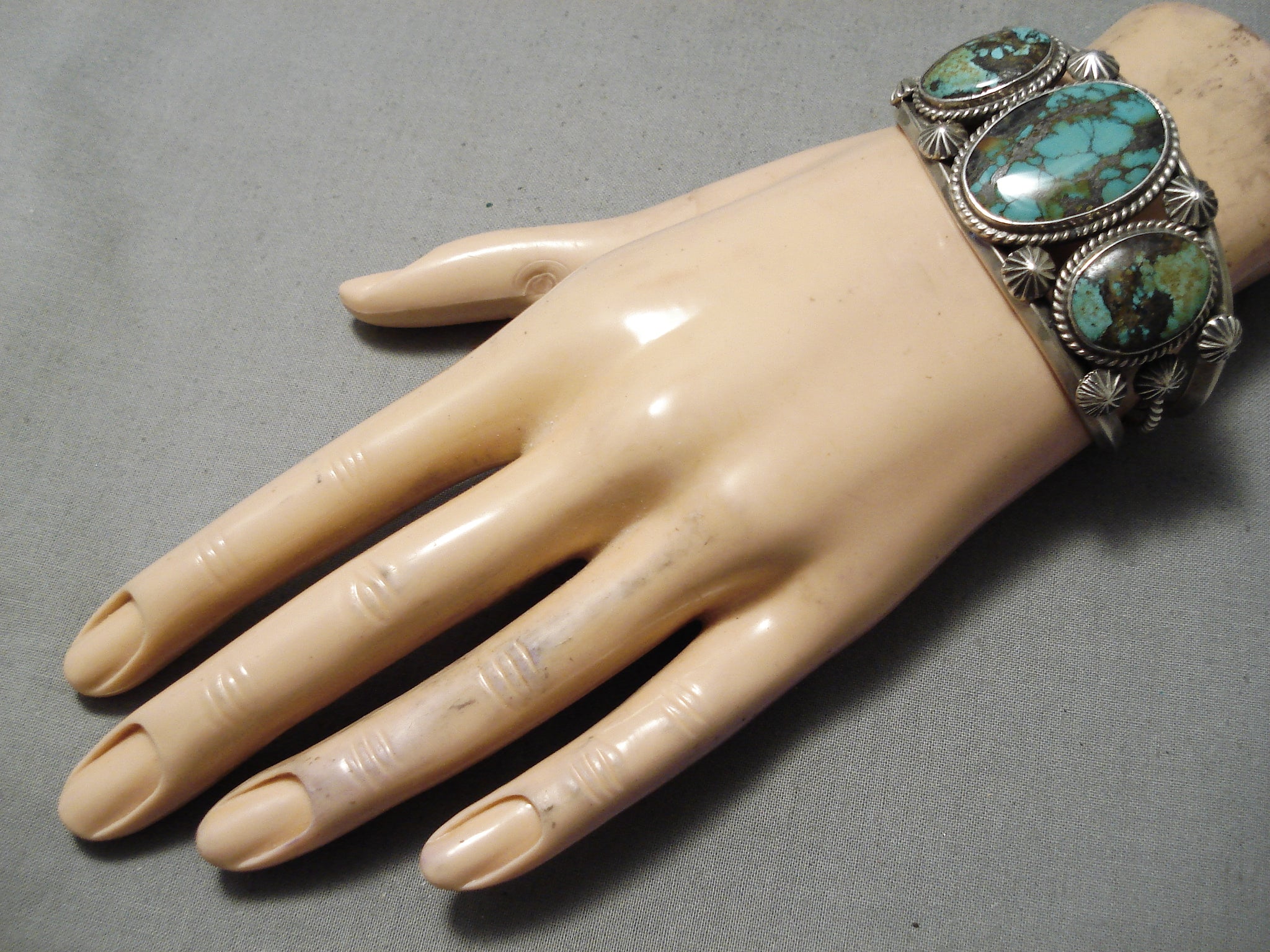 One Of The Best Vintage Native American Navajo Damale Turquoise Sterling Silver Bracelet Old