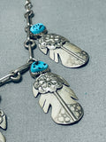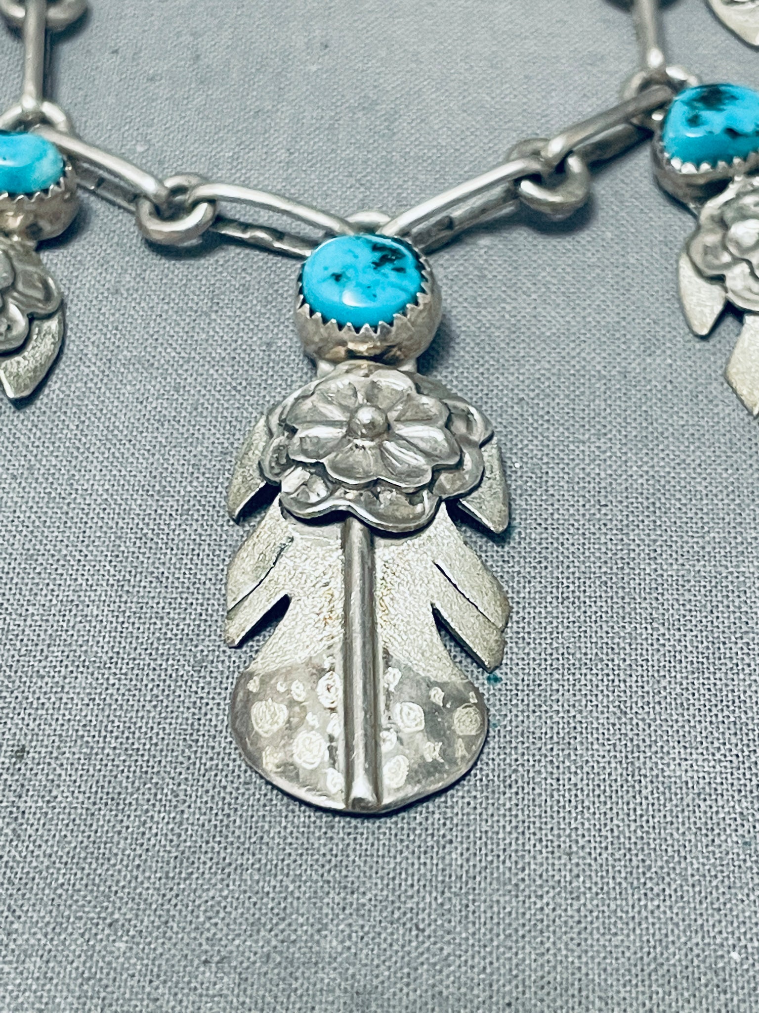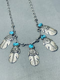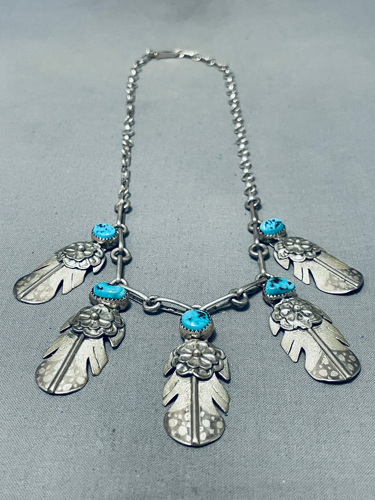 One Of The Best Vintage Native American Navajo Feather Sterling Silver Turquoise Necklace