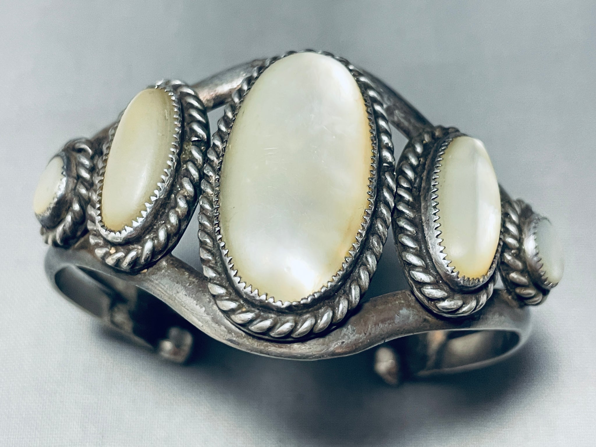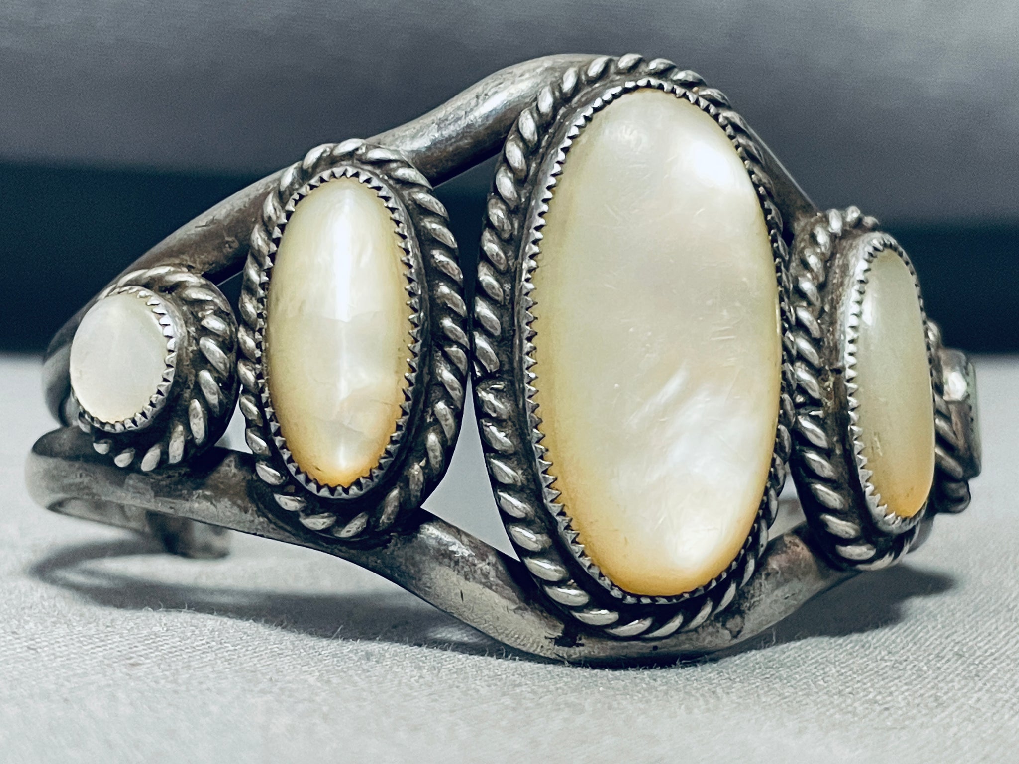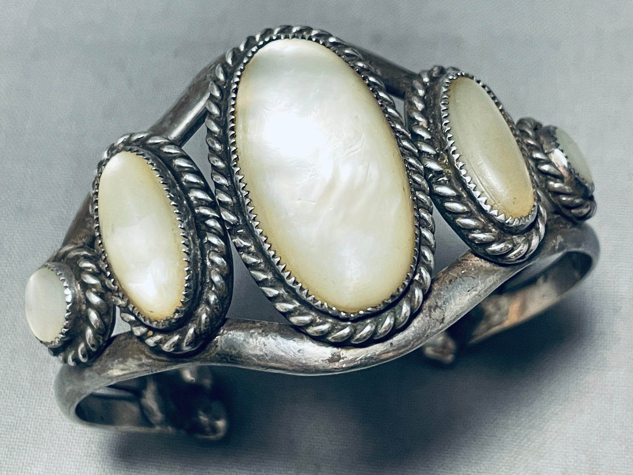 One Of The Best Vintage Native American Navajo Graduating Pearl Sterling Silver Bracelet