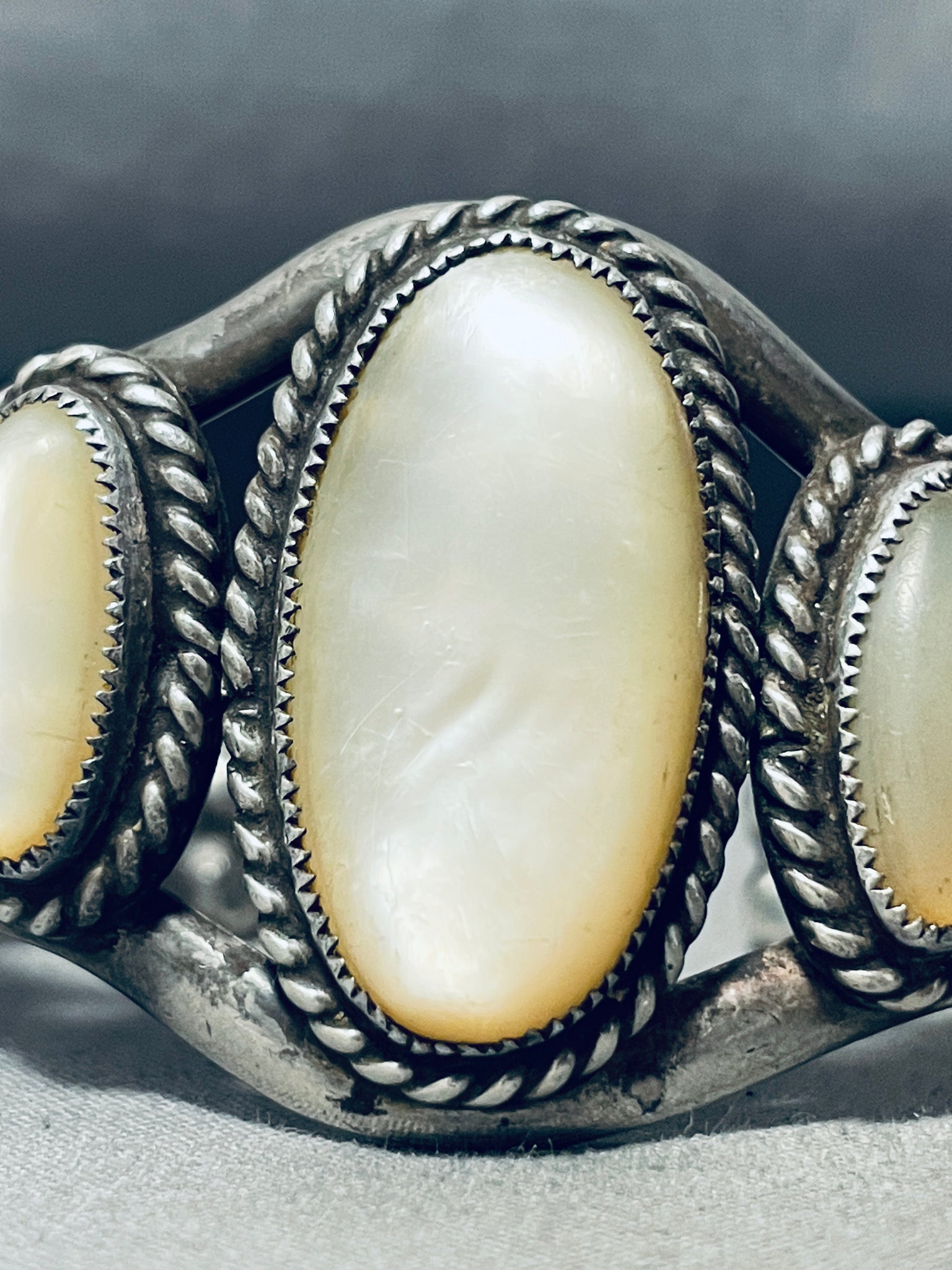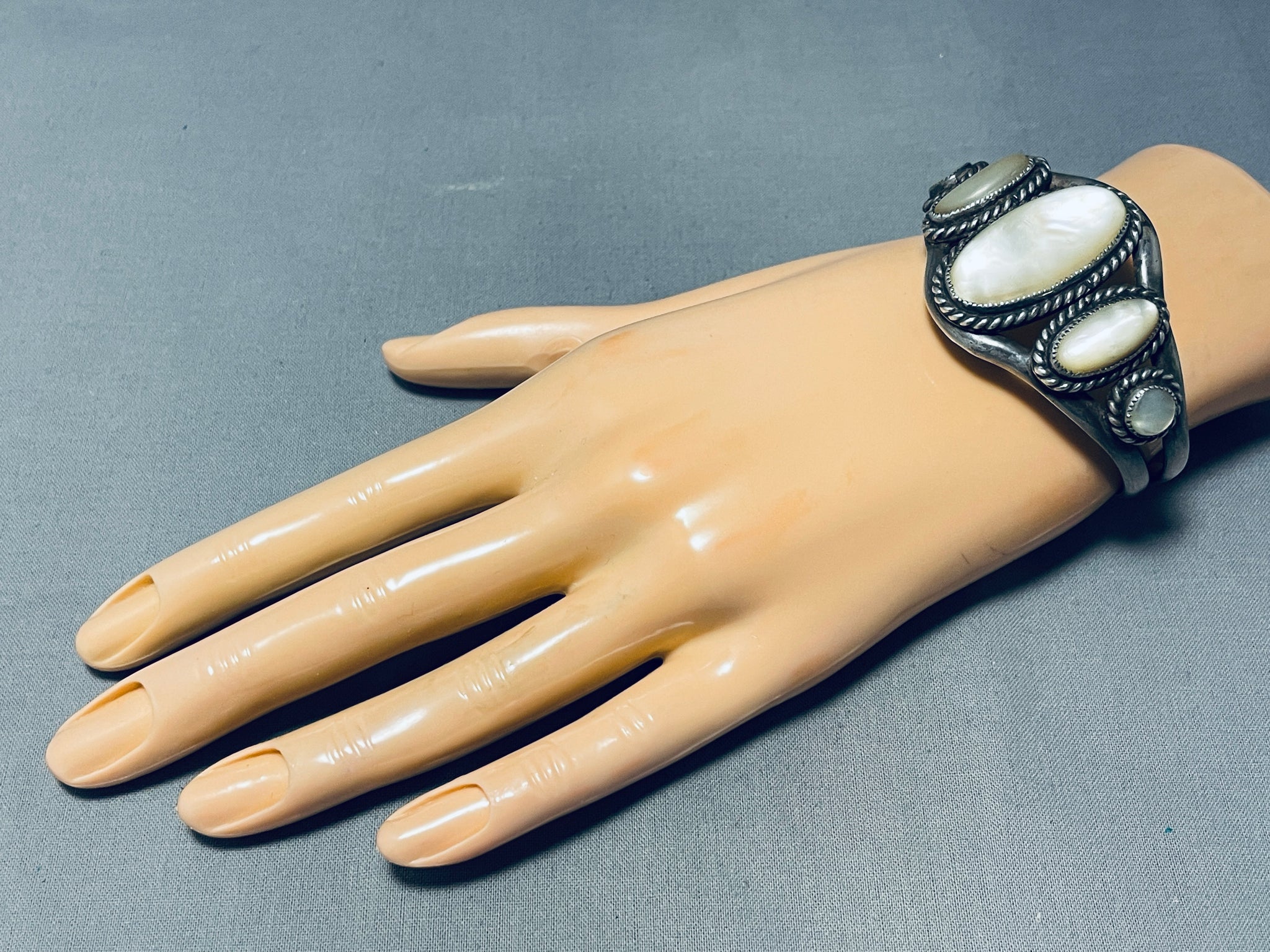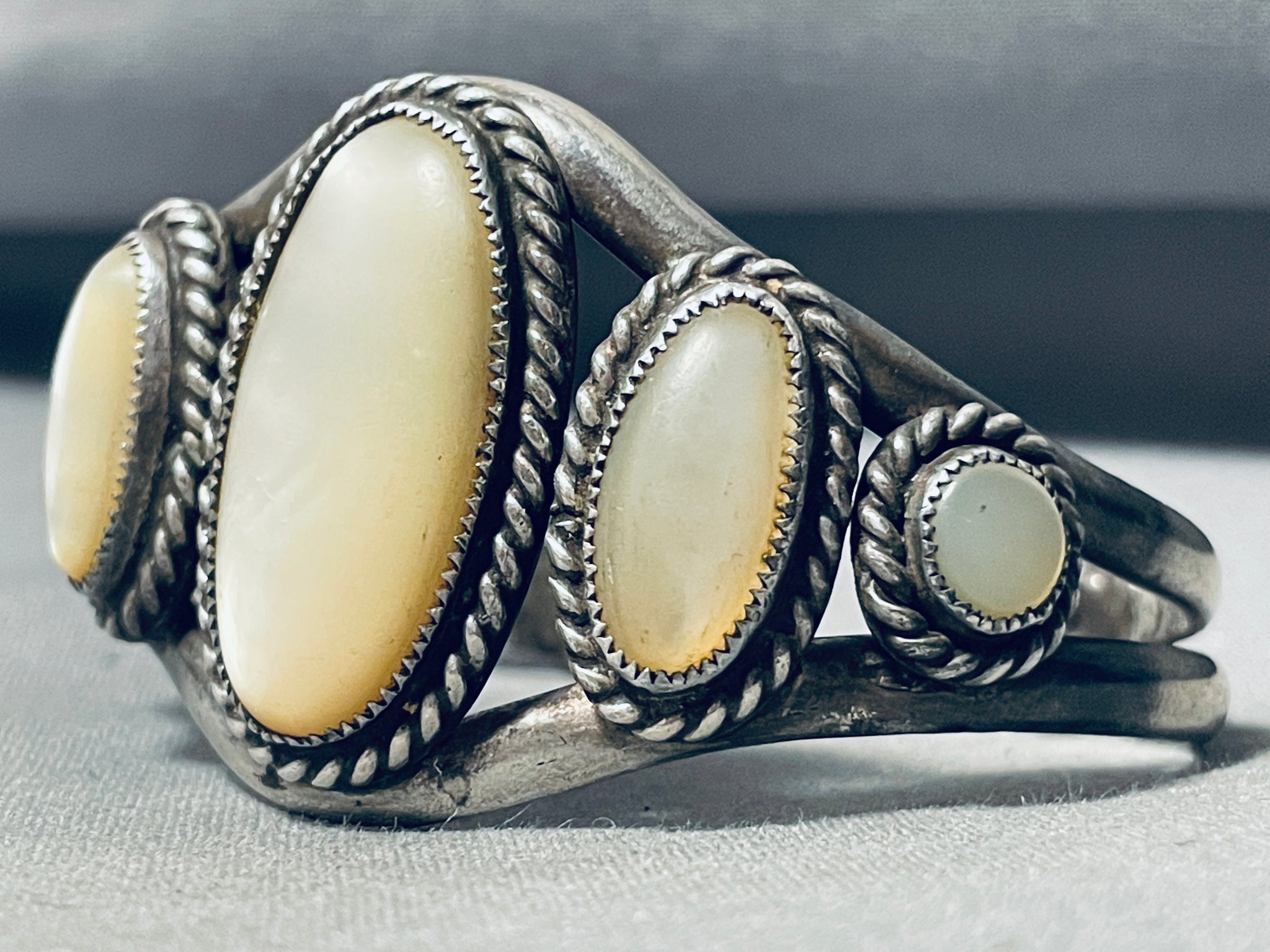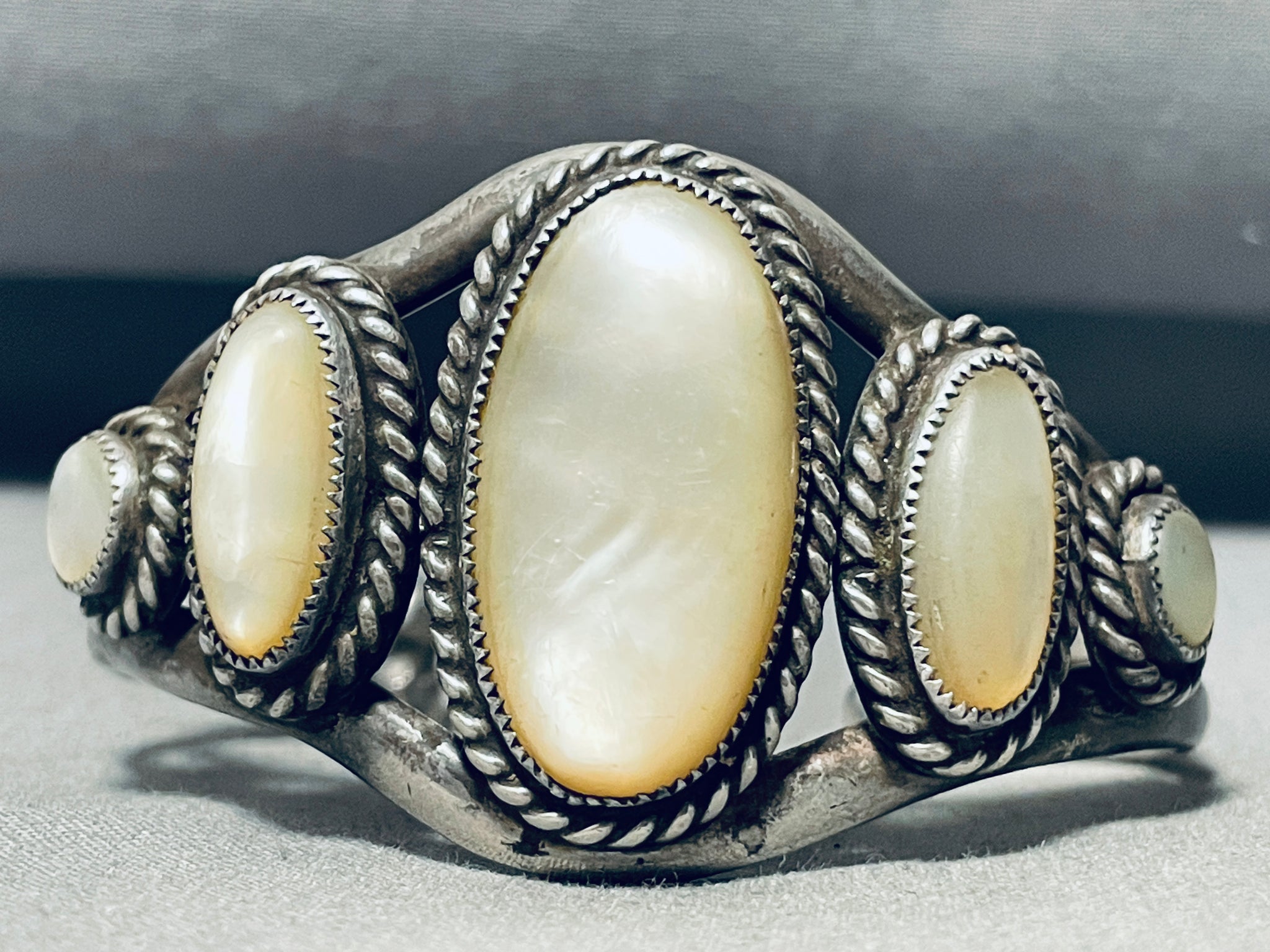 One Of The Best Vintage Native American Navajo Graduating Pearl Sterling Silver Bracelet