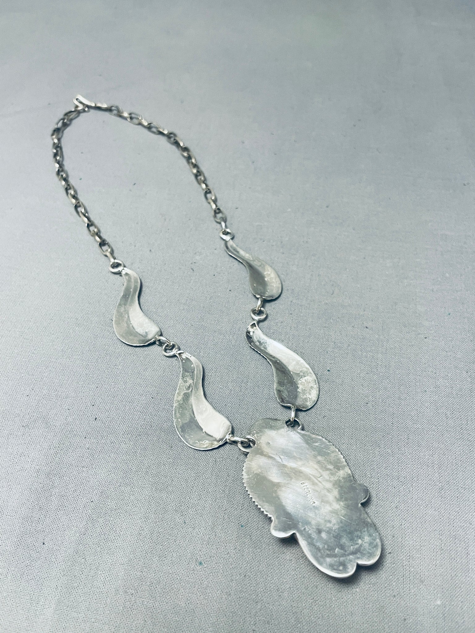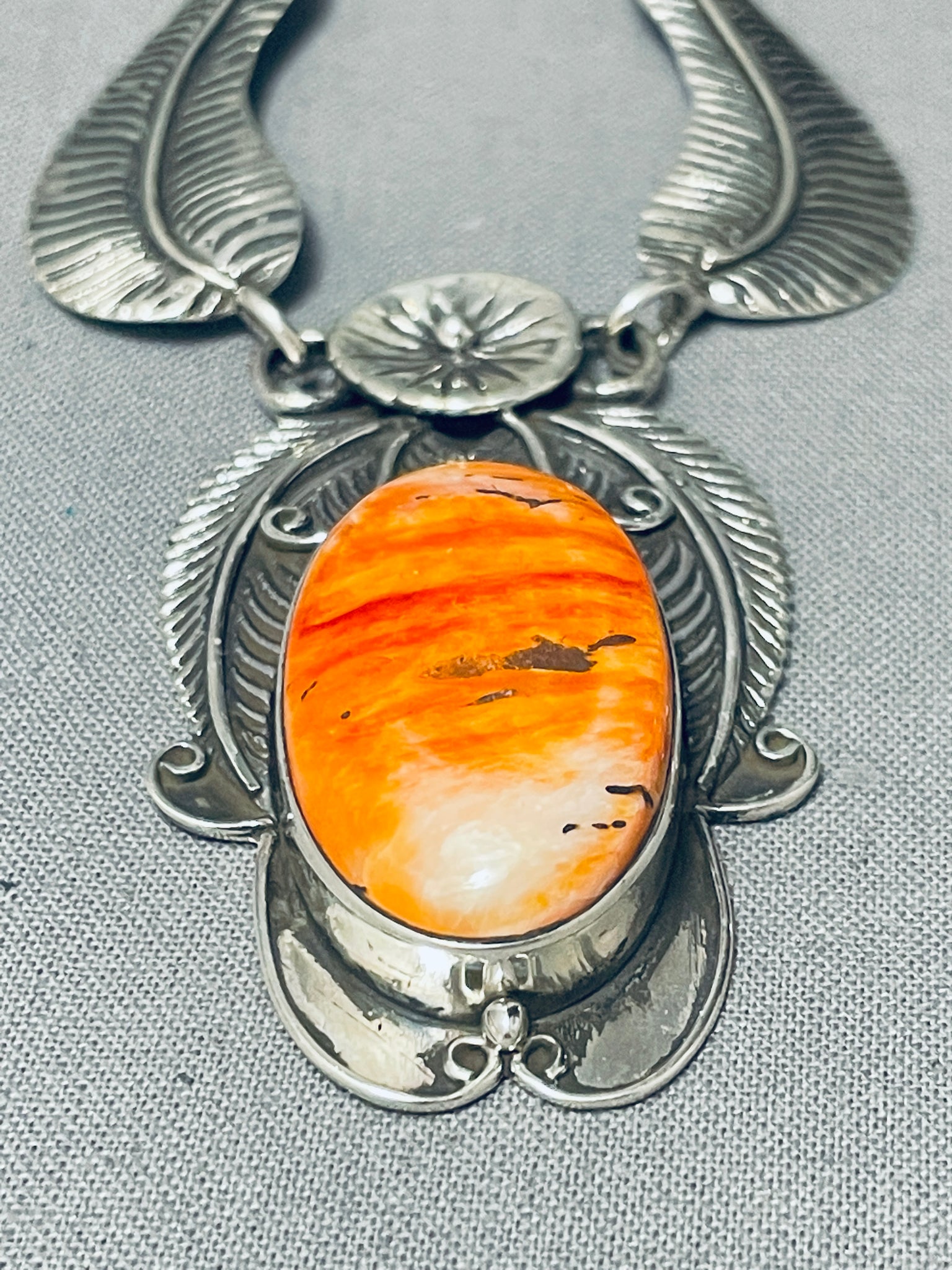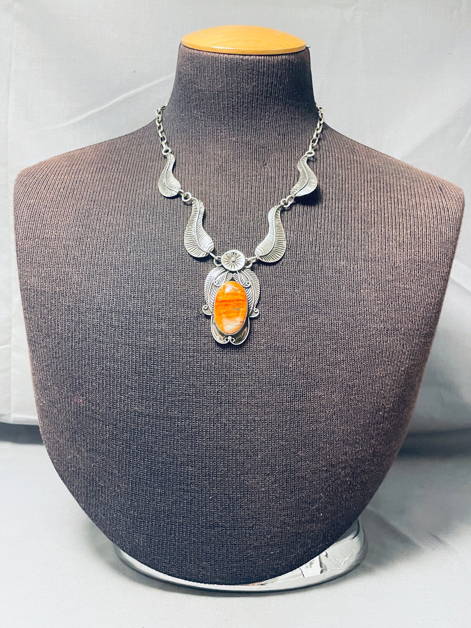 One Of The Best Vintage Native American Navajo Spiny Oyster Sterling Silver Leaf Necklace