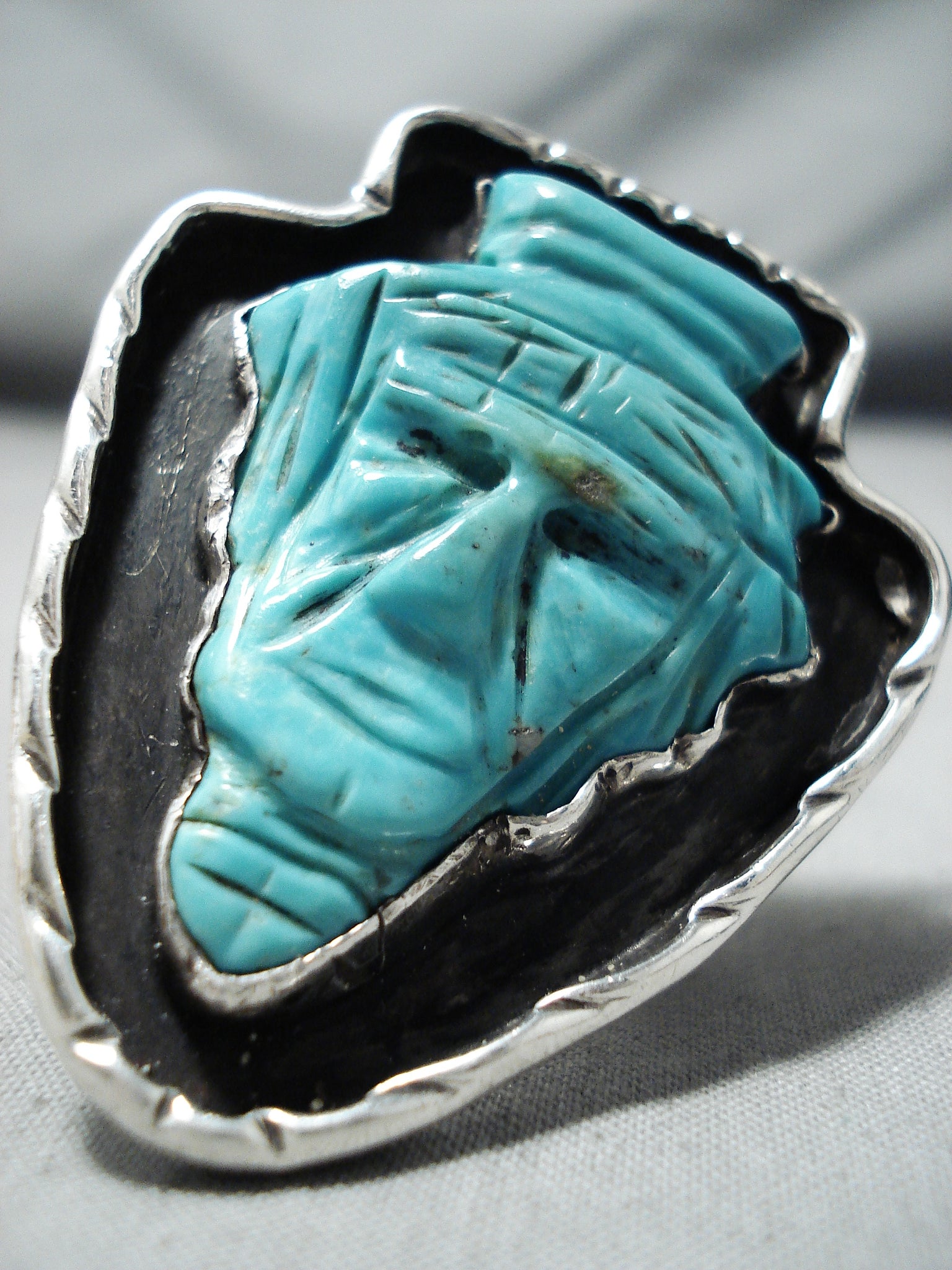 One Of The Best Vintage Native American Navajo Turquoise Indian Head Sterling Silver Ring