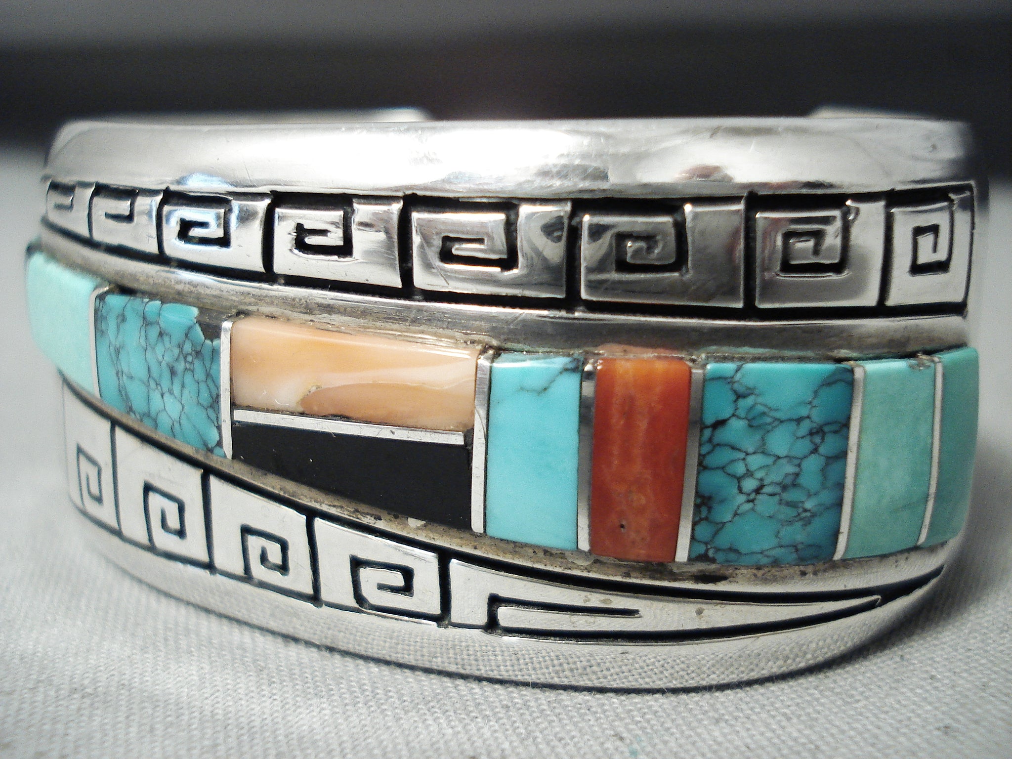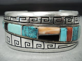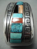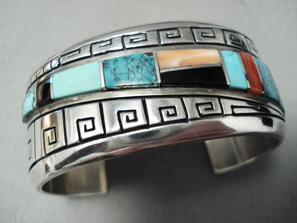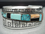One Of The Best Vintage Native American Navajo Turquoise Inlay Sterling Silver Bracelet