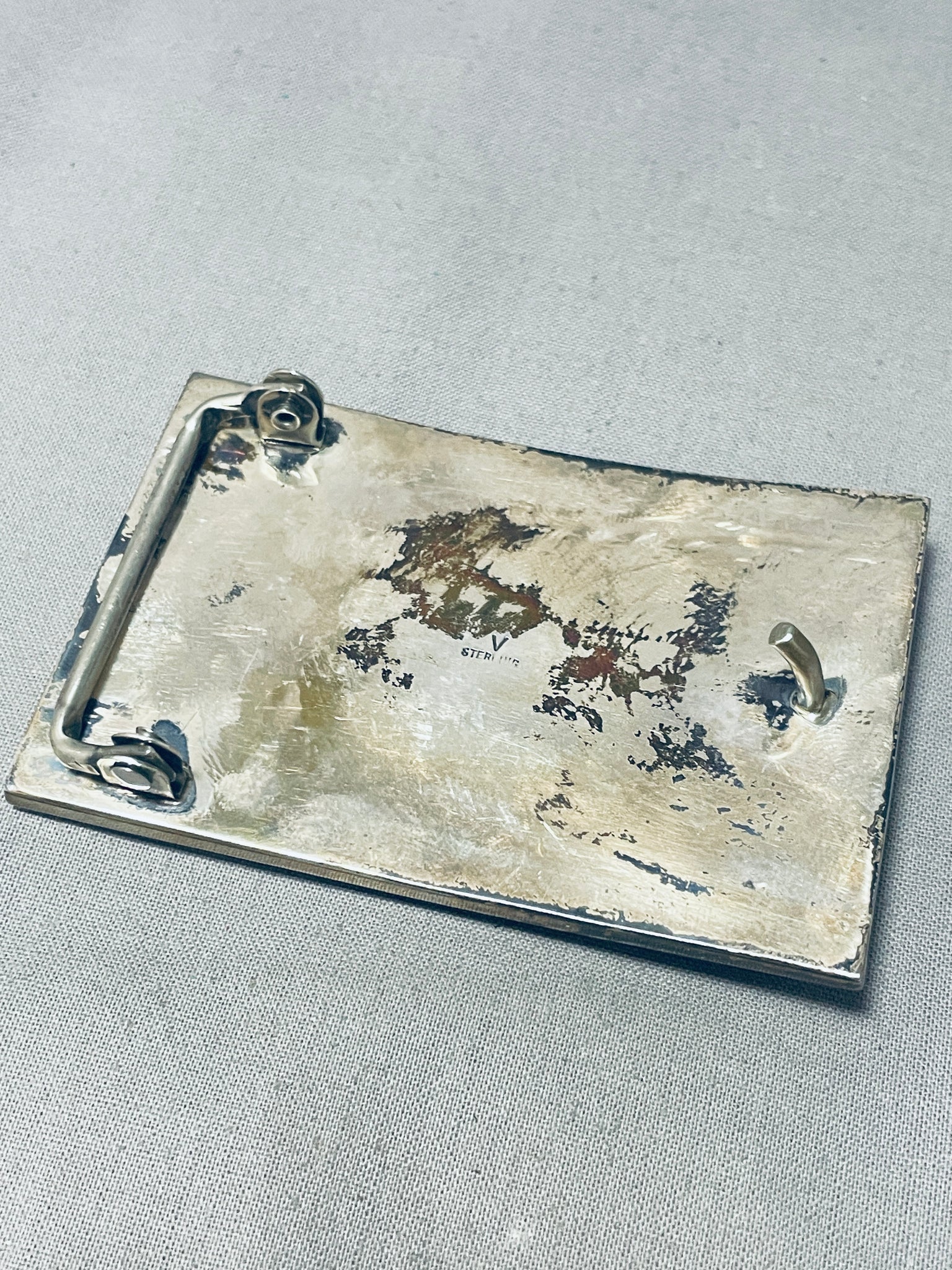 One Of The Best Vintage Native American Navajo Turquoise Inlay Sterling Silver Buckle