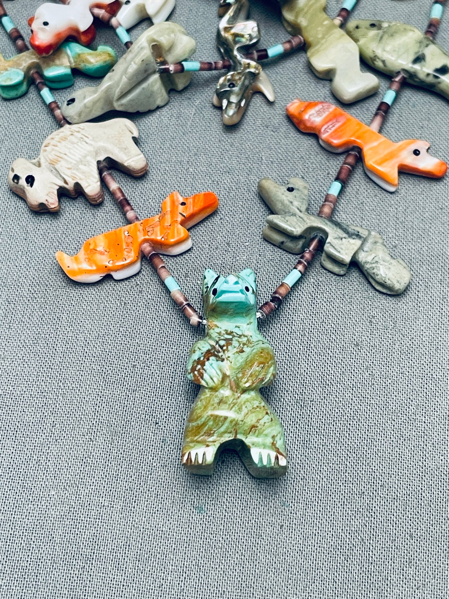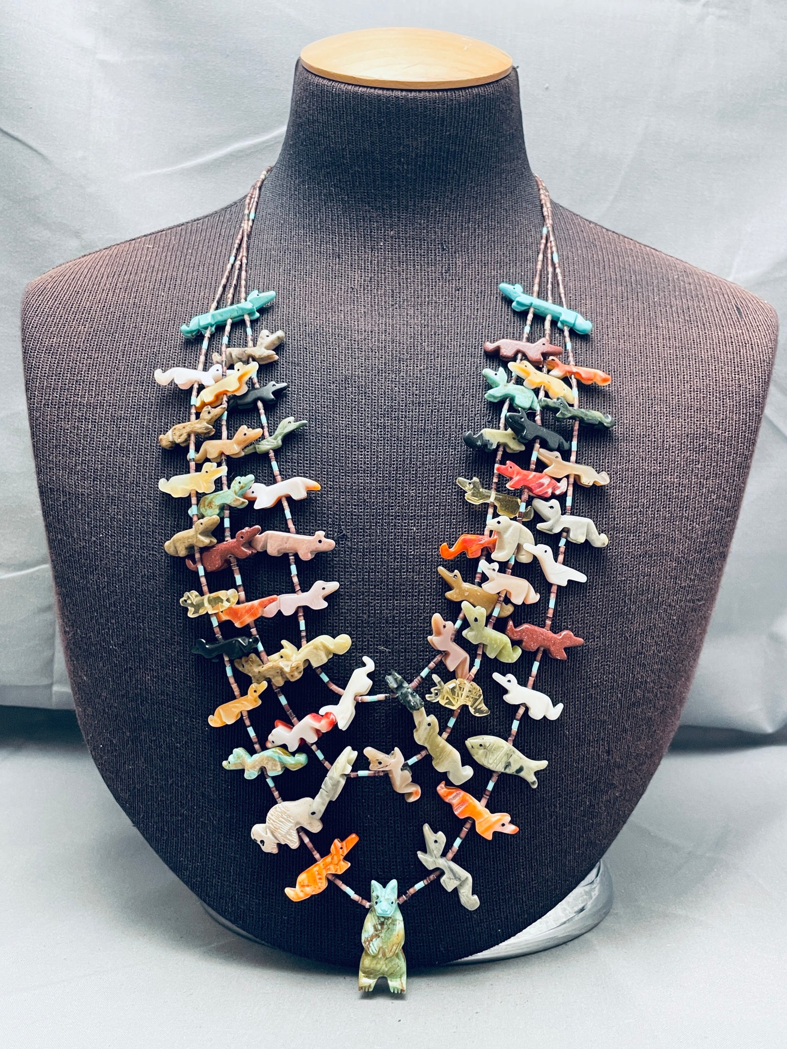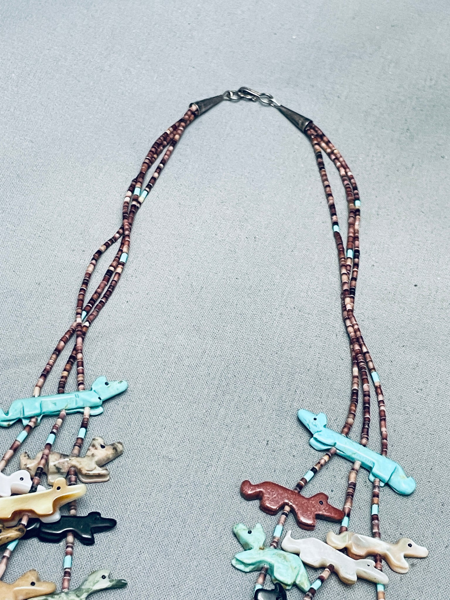 One Of The Best Vintage Santo Domingo Turquoise Fetish Sterling Silver Necklace