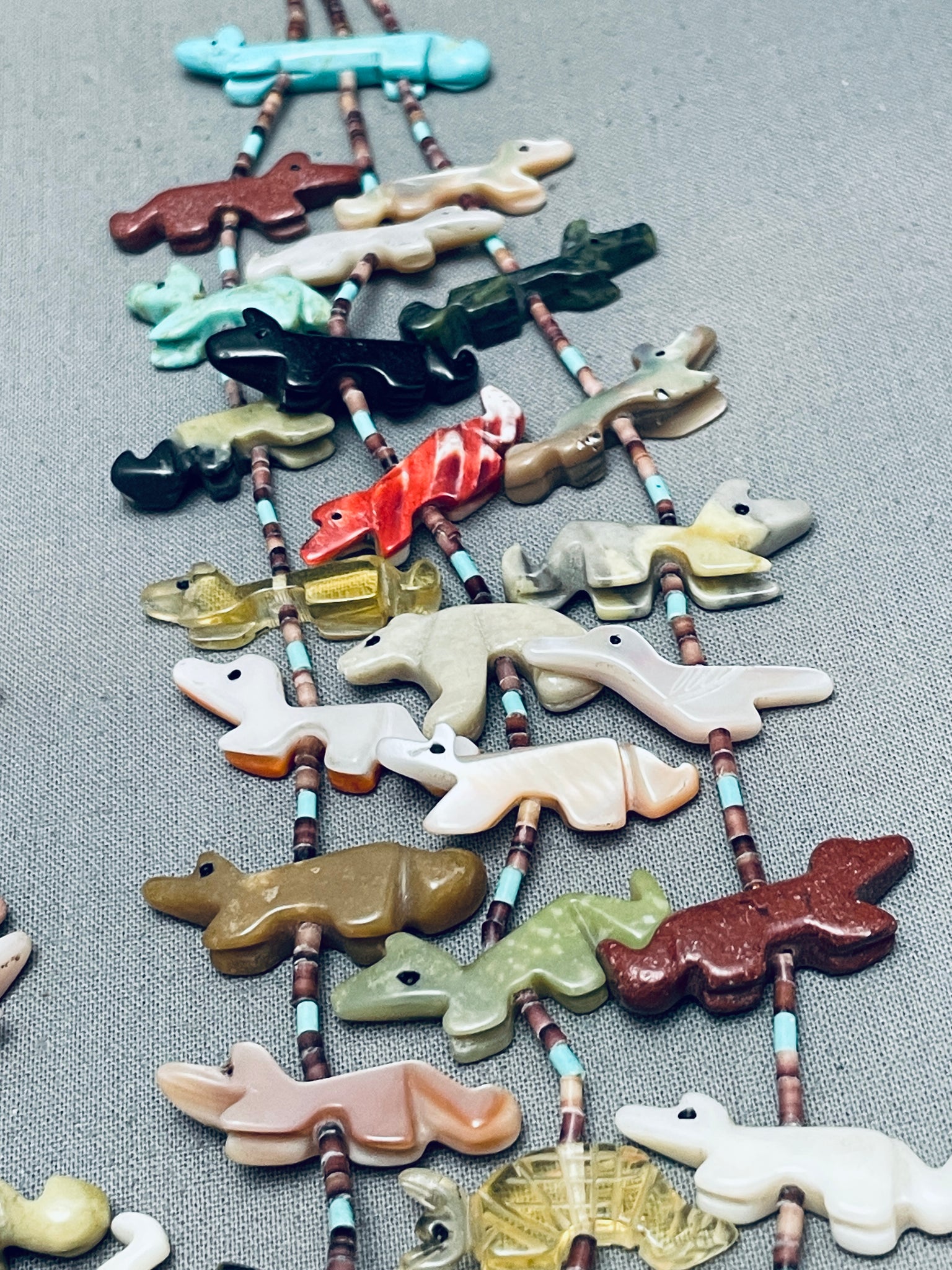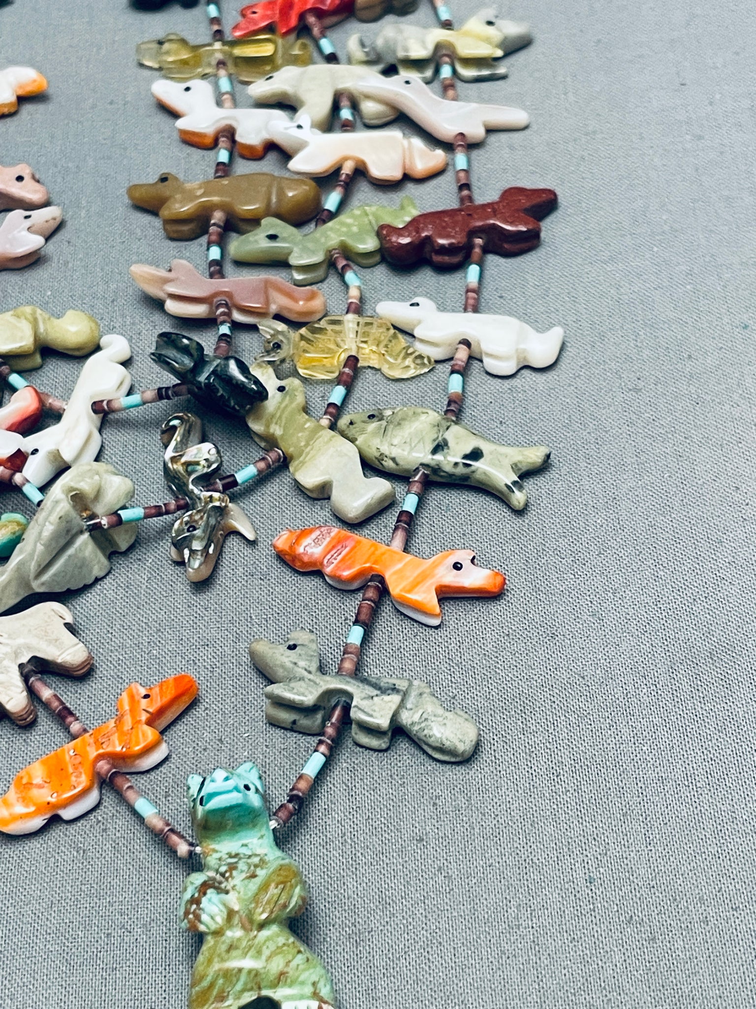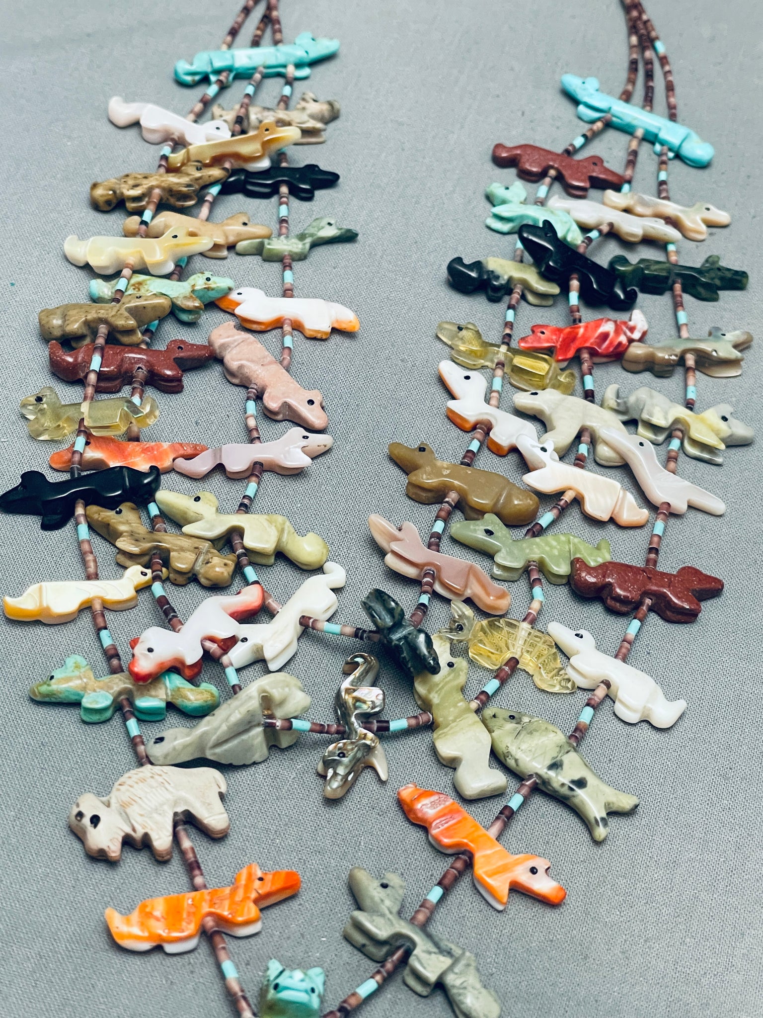 One Of The Best Vintage Santo Domingo Turquoise Fetish Sterling Silver Necklace