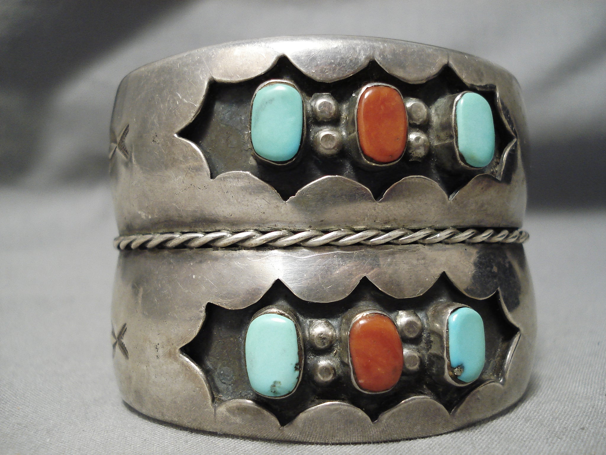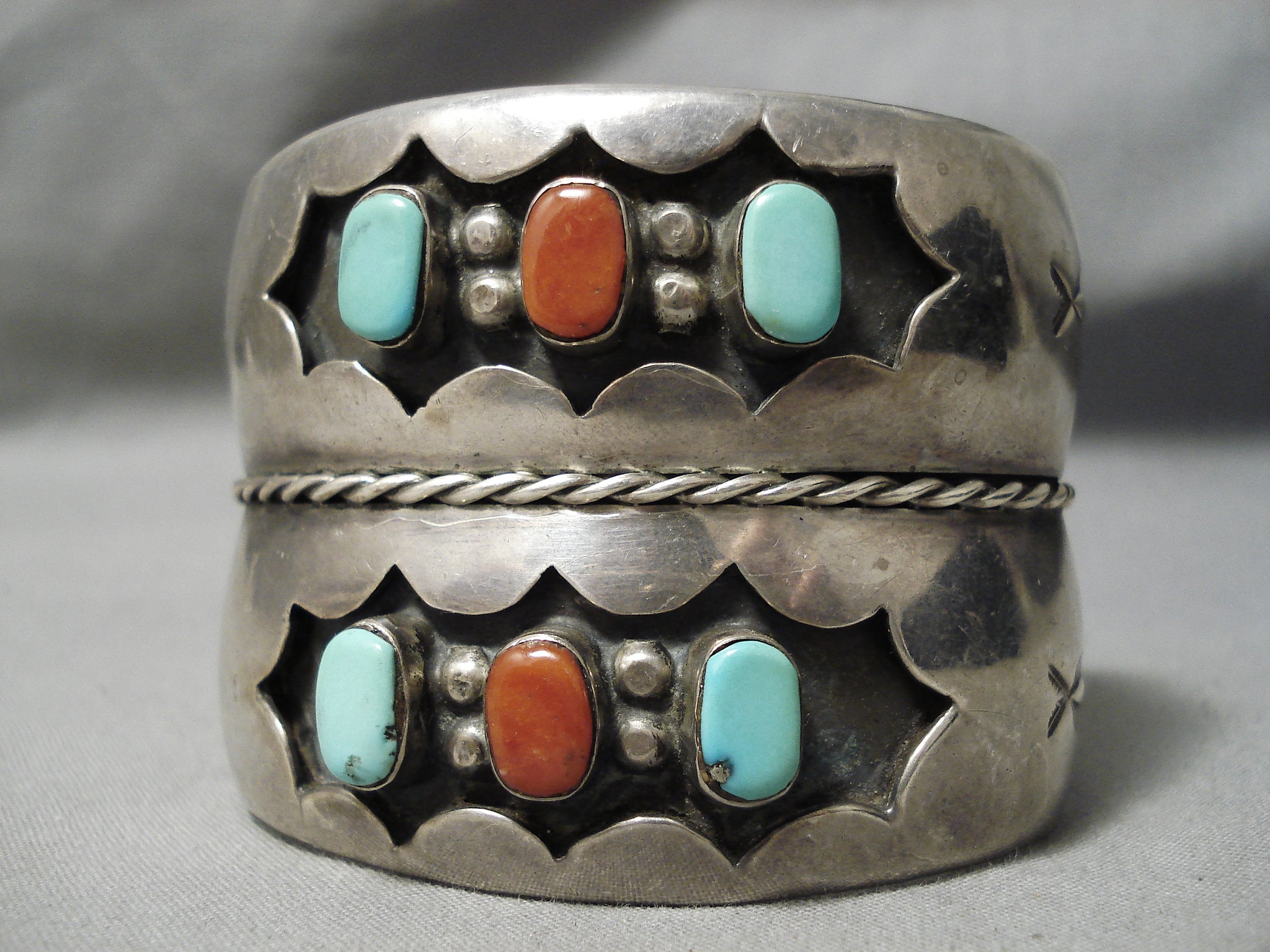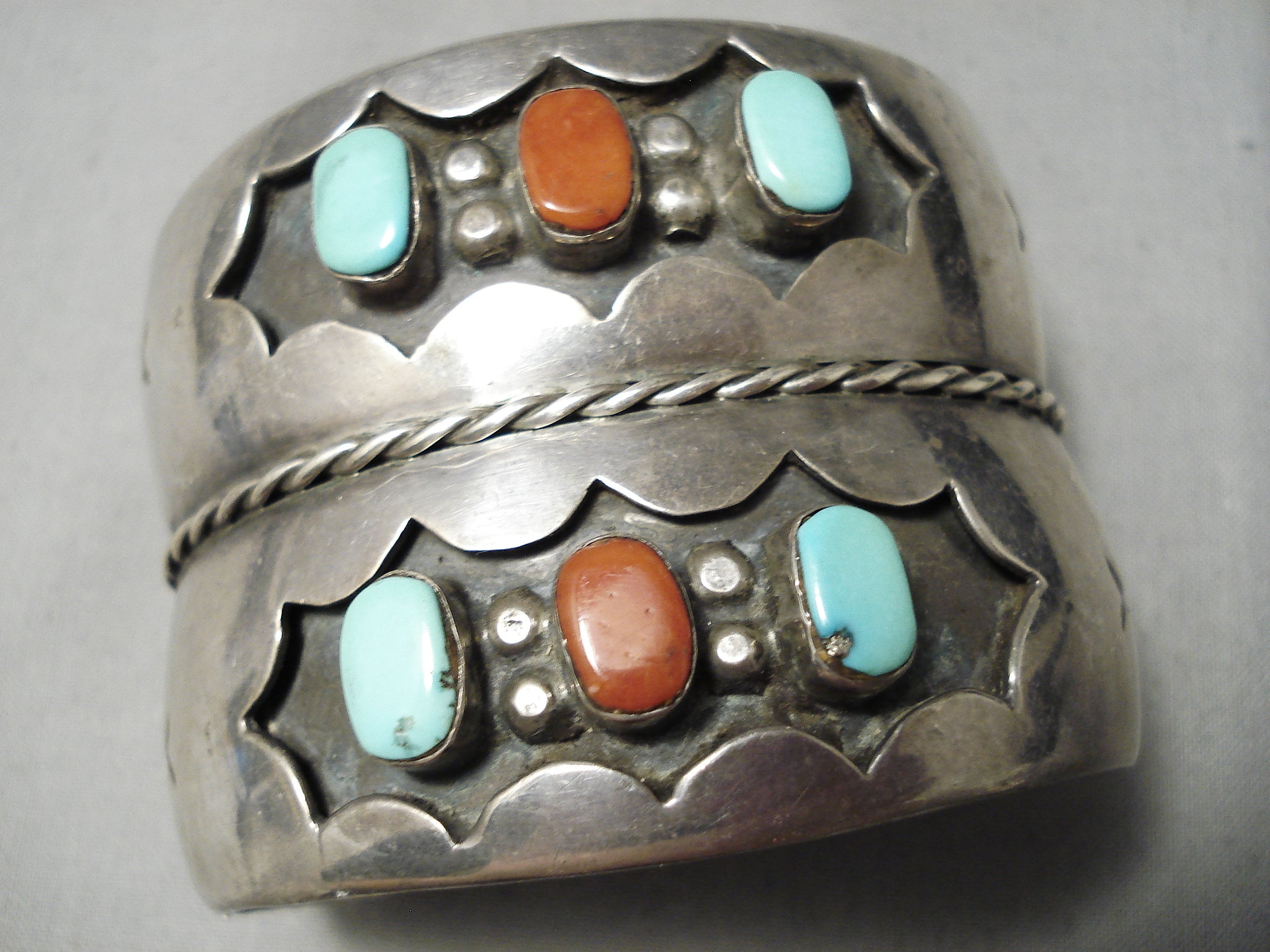 One Of The Biggest Best Vintage Native American Navajo Sterling Silver Shadowbox Bracelet
