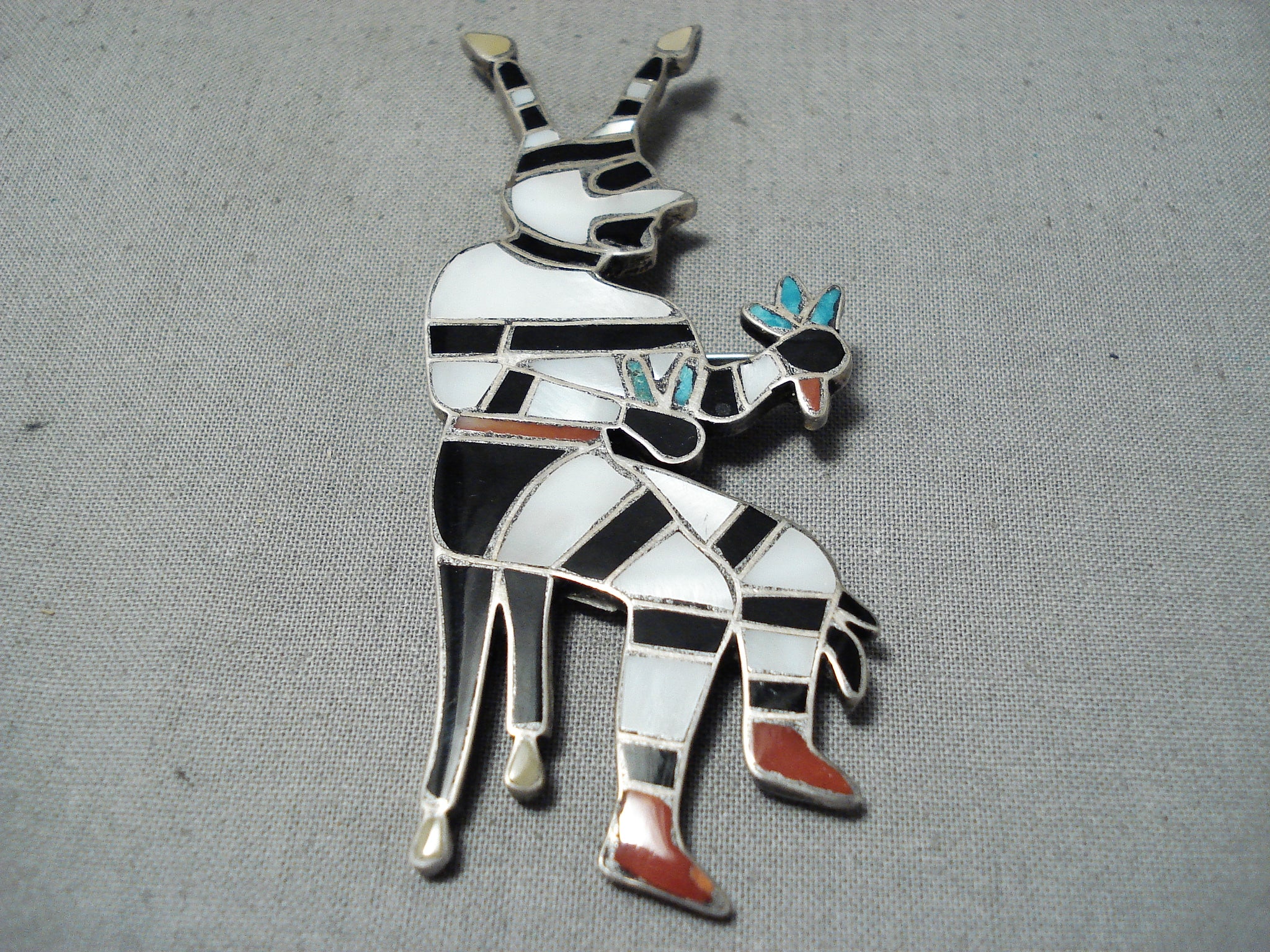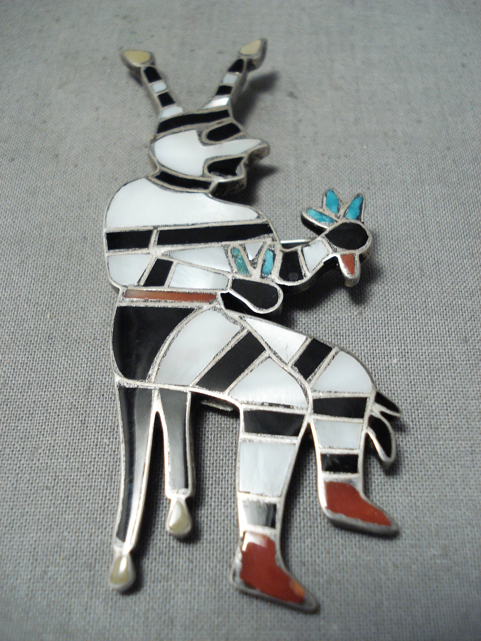 One Of The Biggest Best Vintage Native American Zuni Clown Turquoise Sterling Silver Pin
