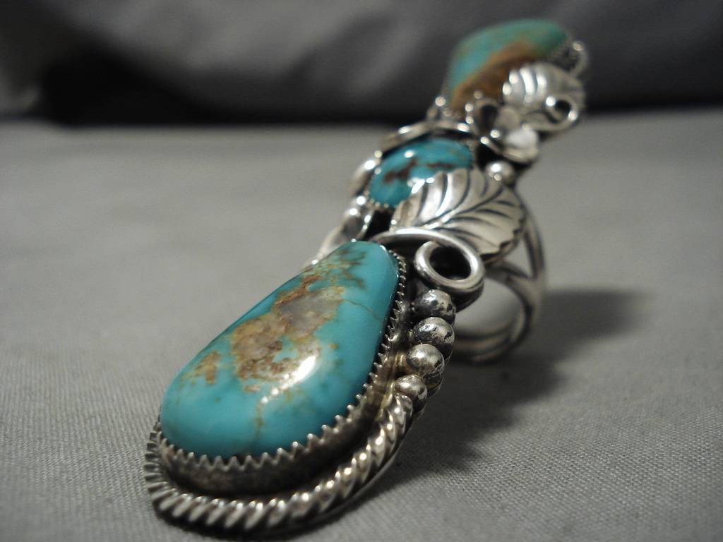One Of The Biggest Ever Native American Navajo Turquoise Sterling Silver Ring- 43 Grams!!