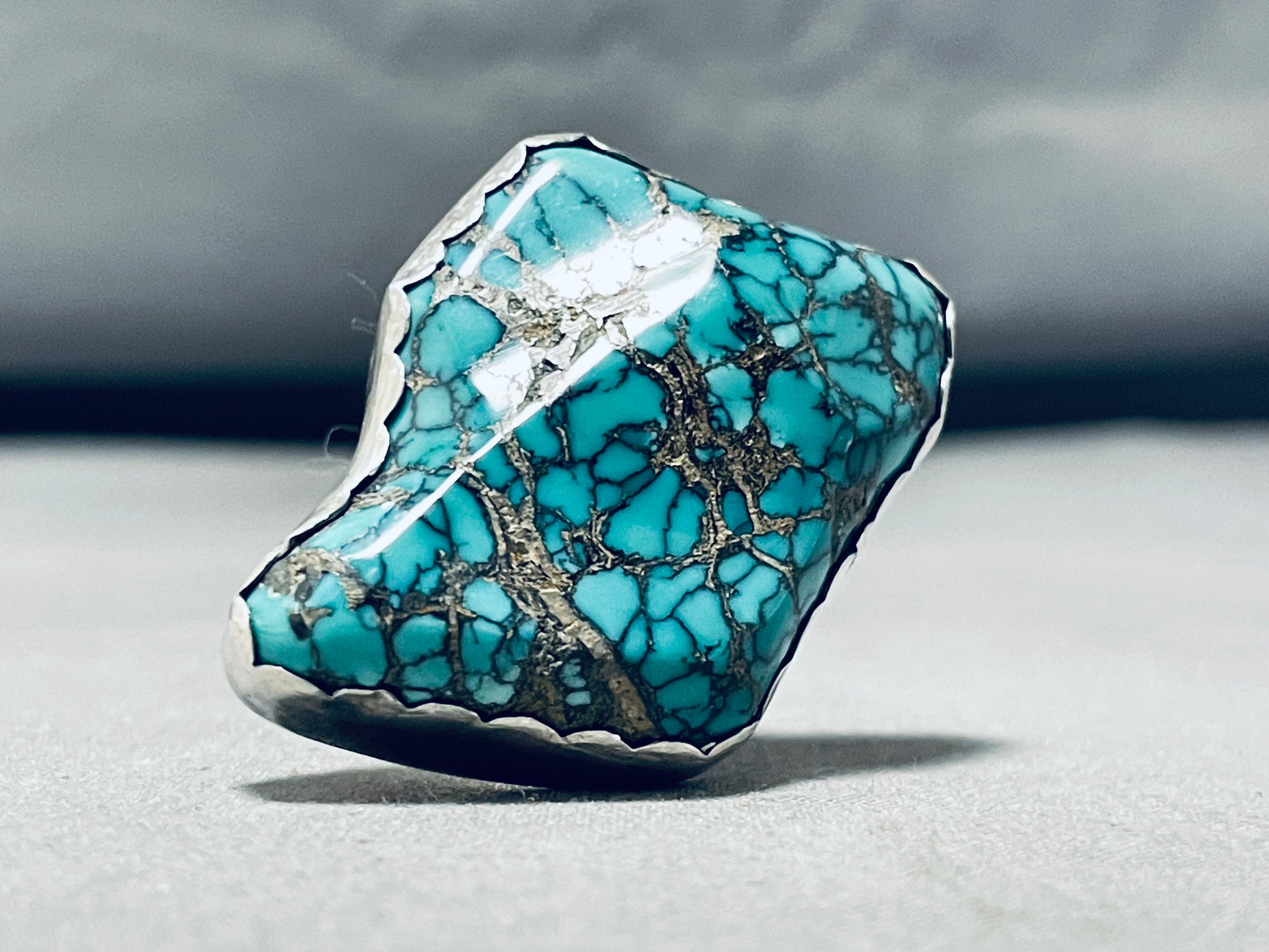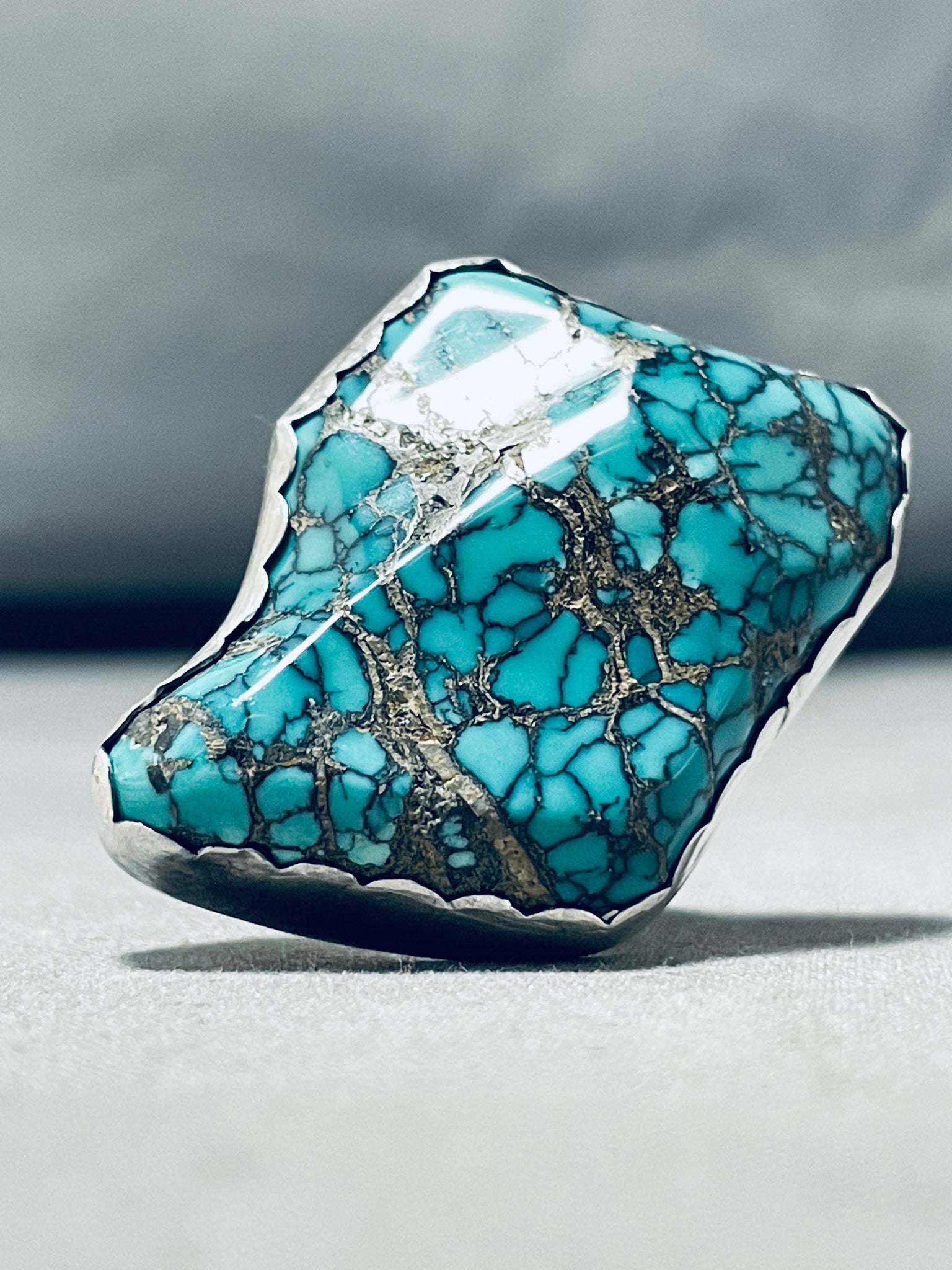 One Of The Craziest Vintage Native American Navajo Spiderweb Turquoise Sterling Silver Ring