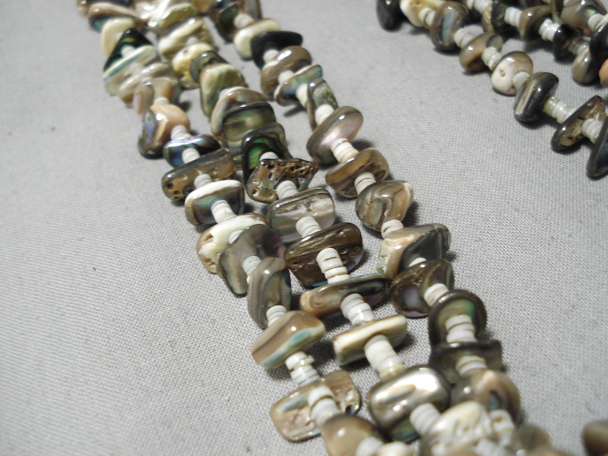 One Of The Finerst Vintage Native American Navajo Abalone Shell Sterling Silver Necklace Old
