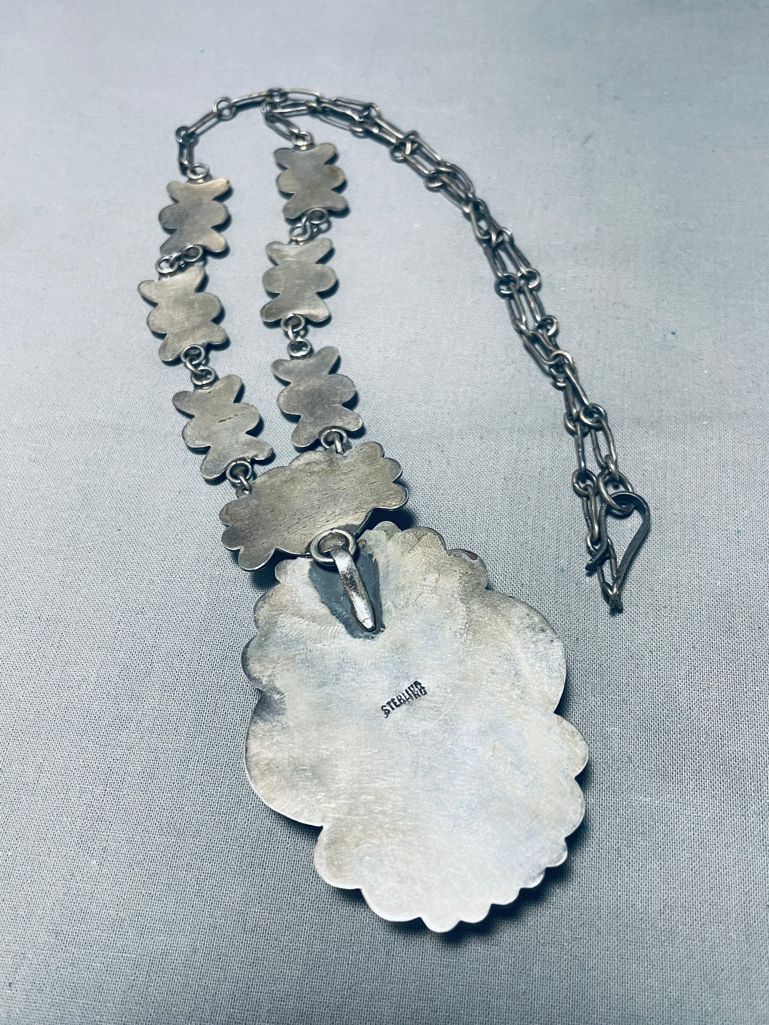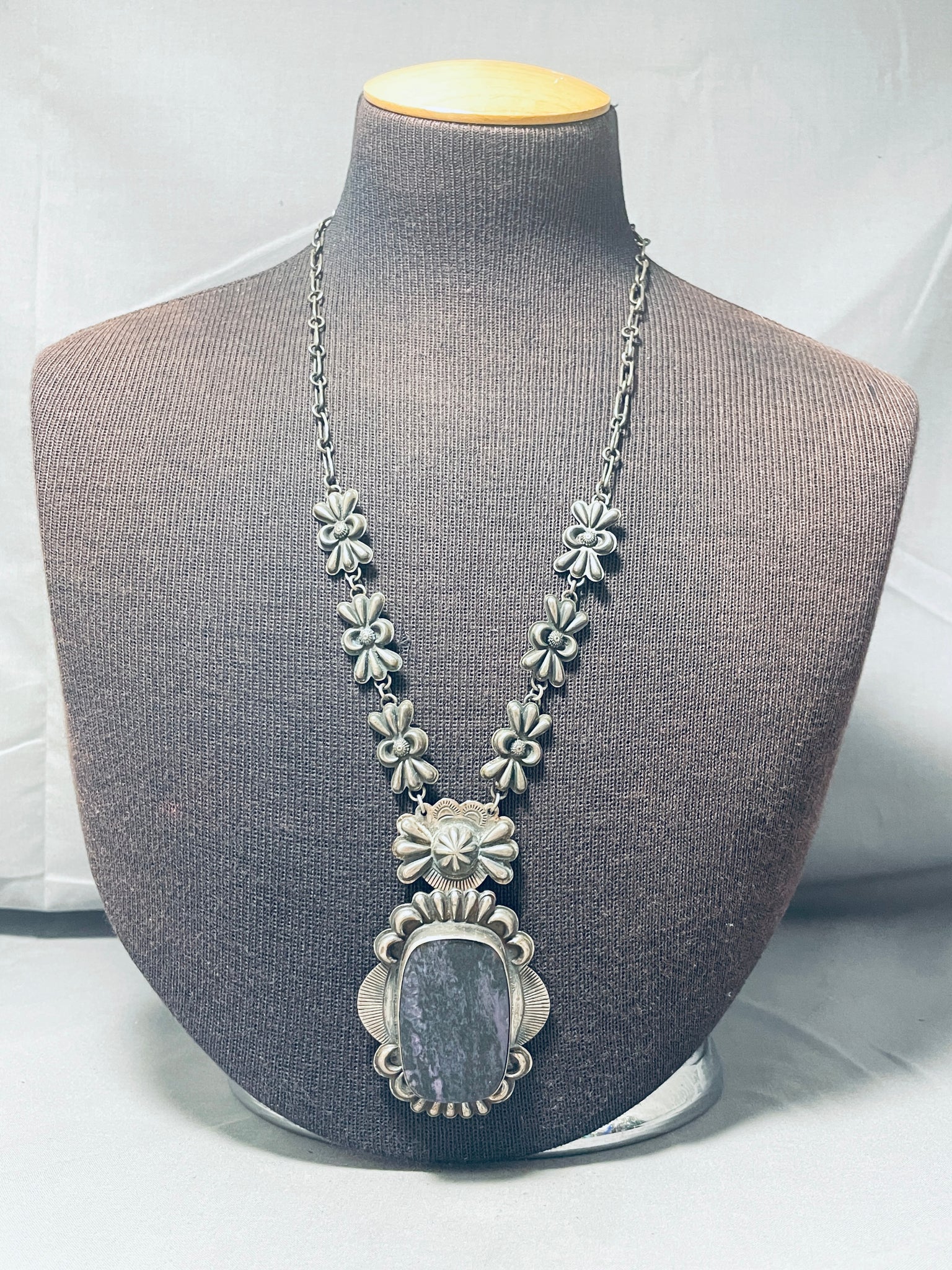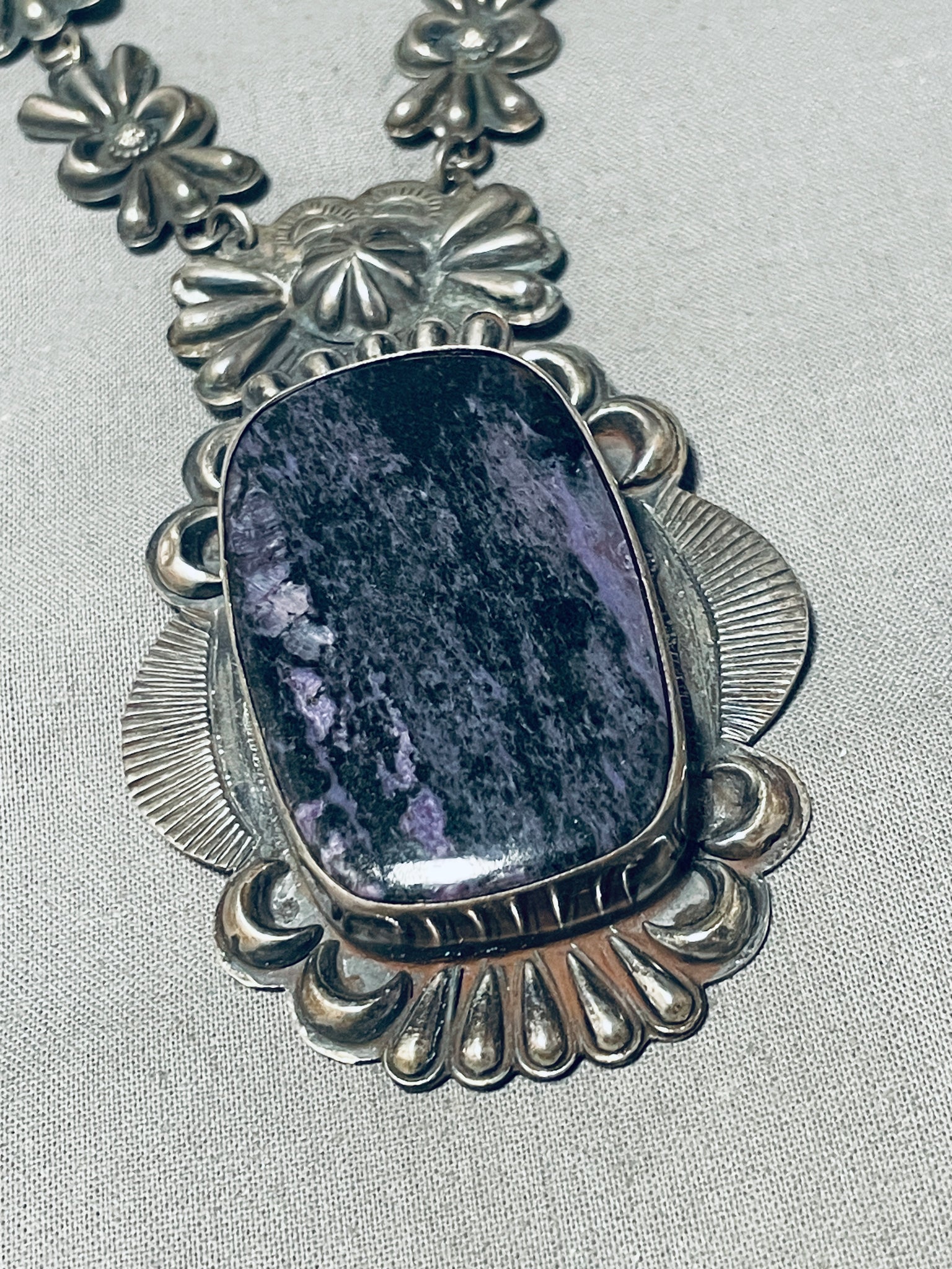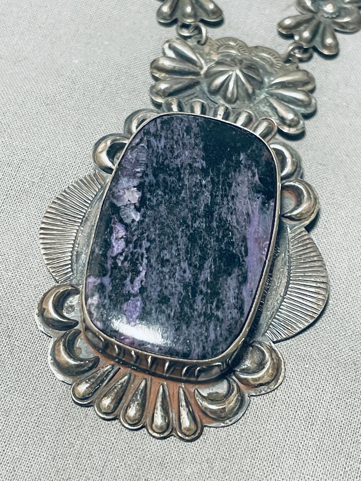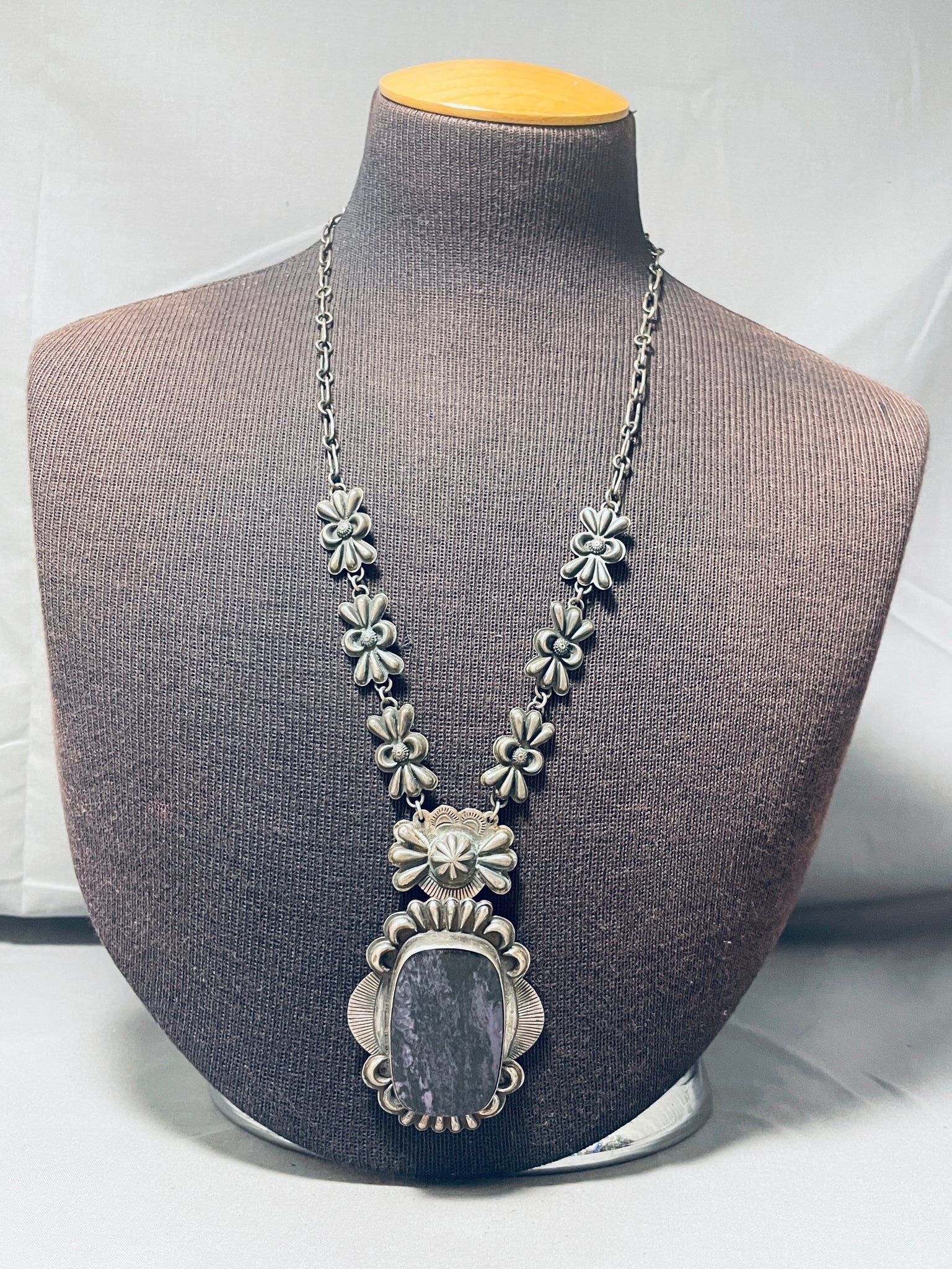 One Of The Finest Vintage Native American Navajo Sugulite Sterling Silver Necklace