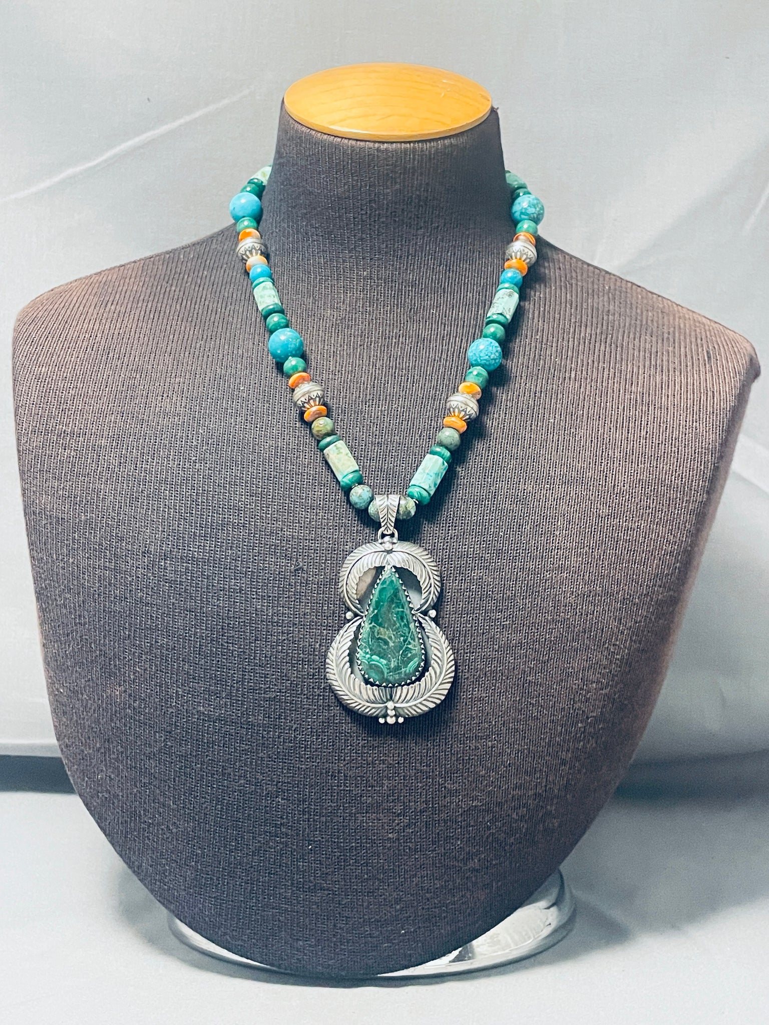 One Of The Finest Vintage Sterling Silver Chrysocholla Necklace