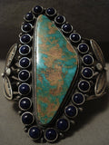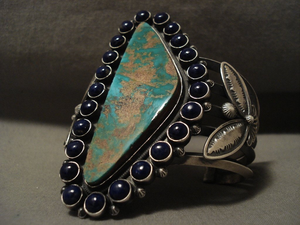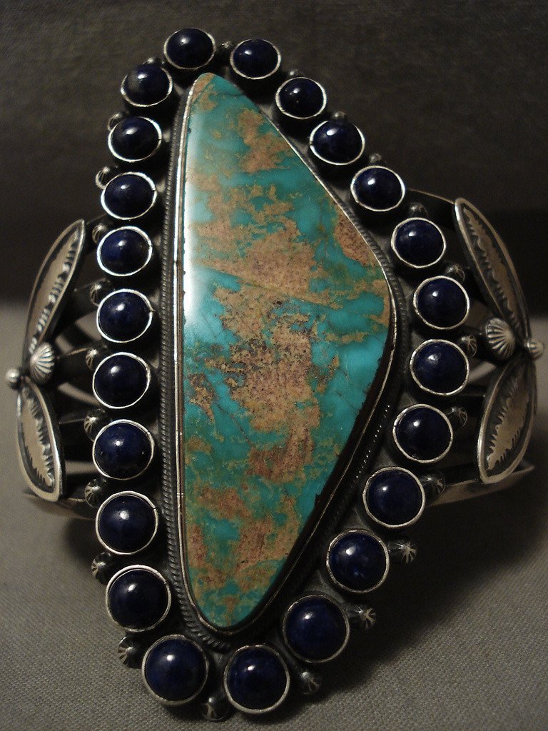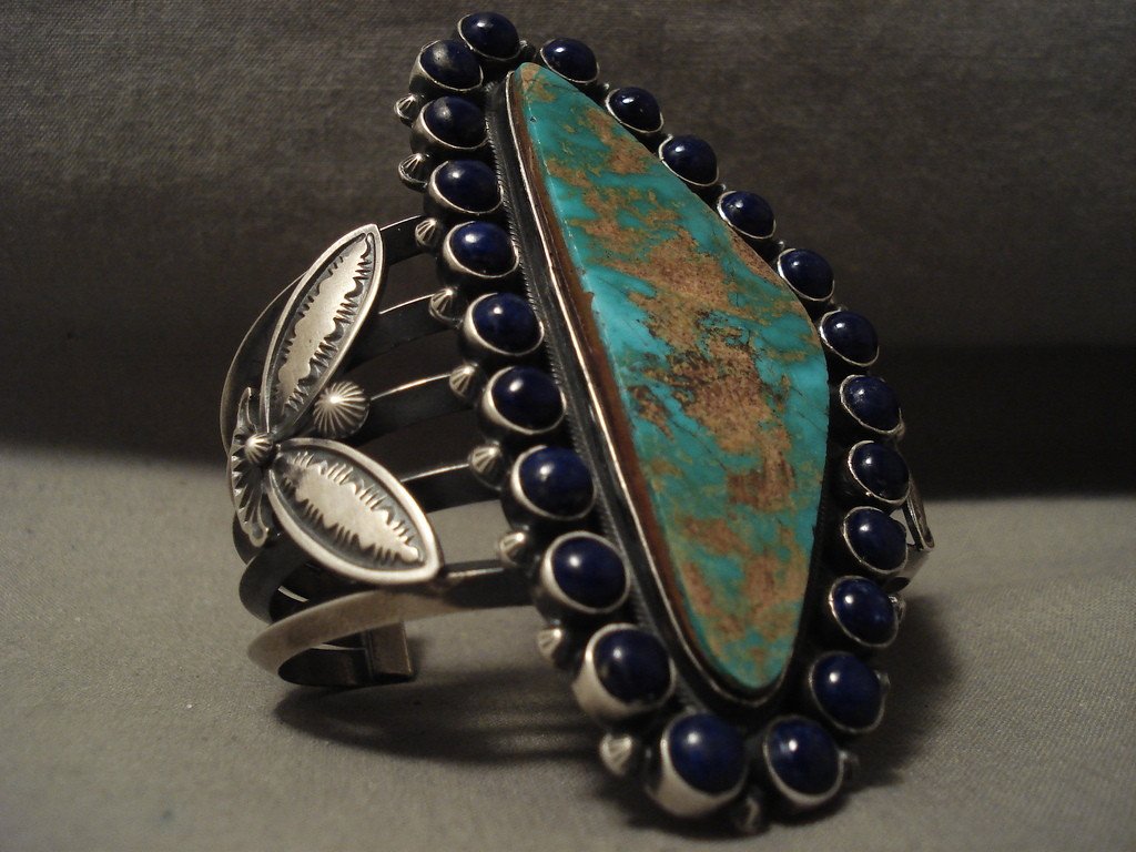 One Of The Largest Navajo Royston Turquoise Lapis Native American Jewelry Silver Bracelet