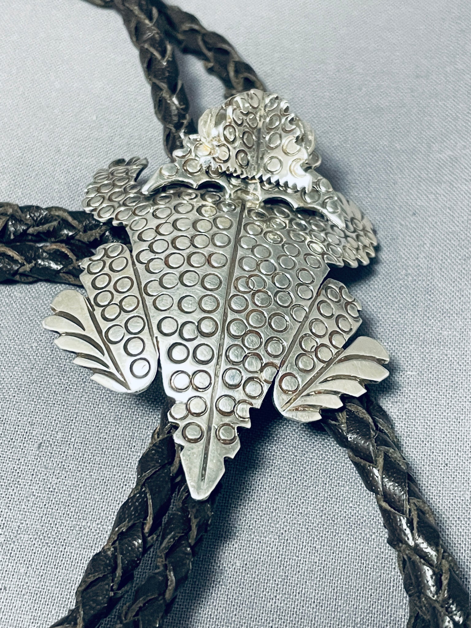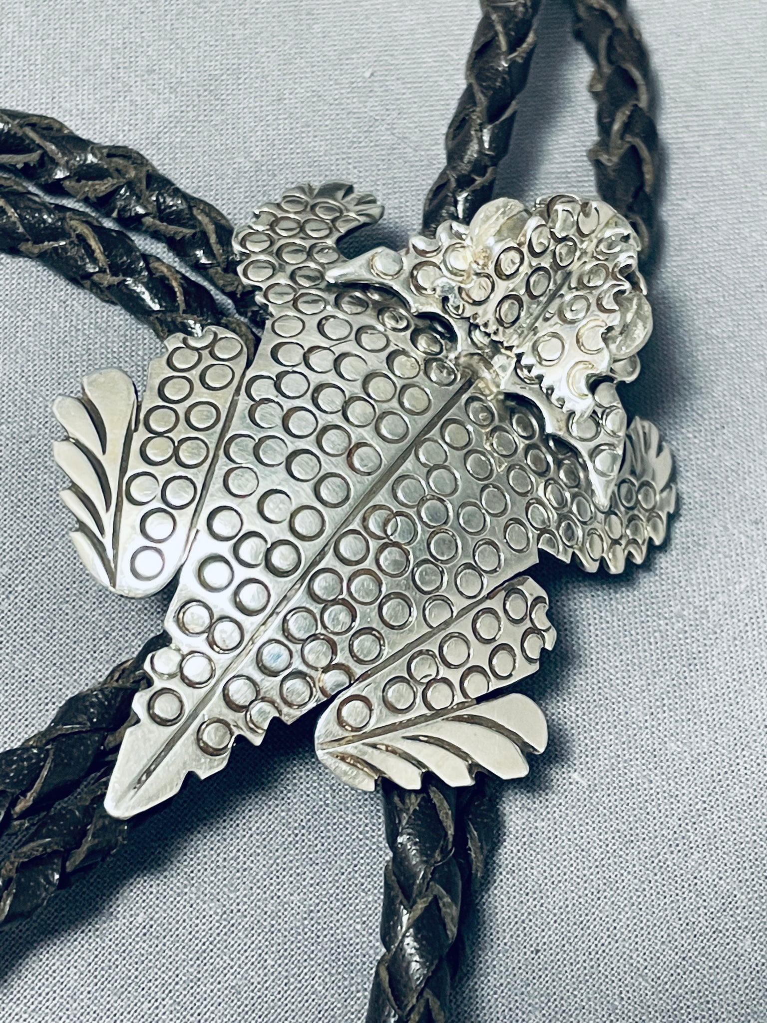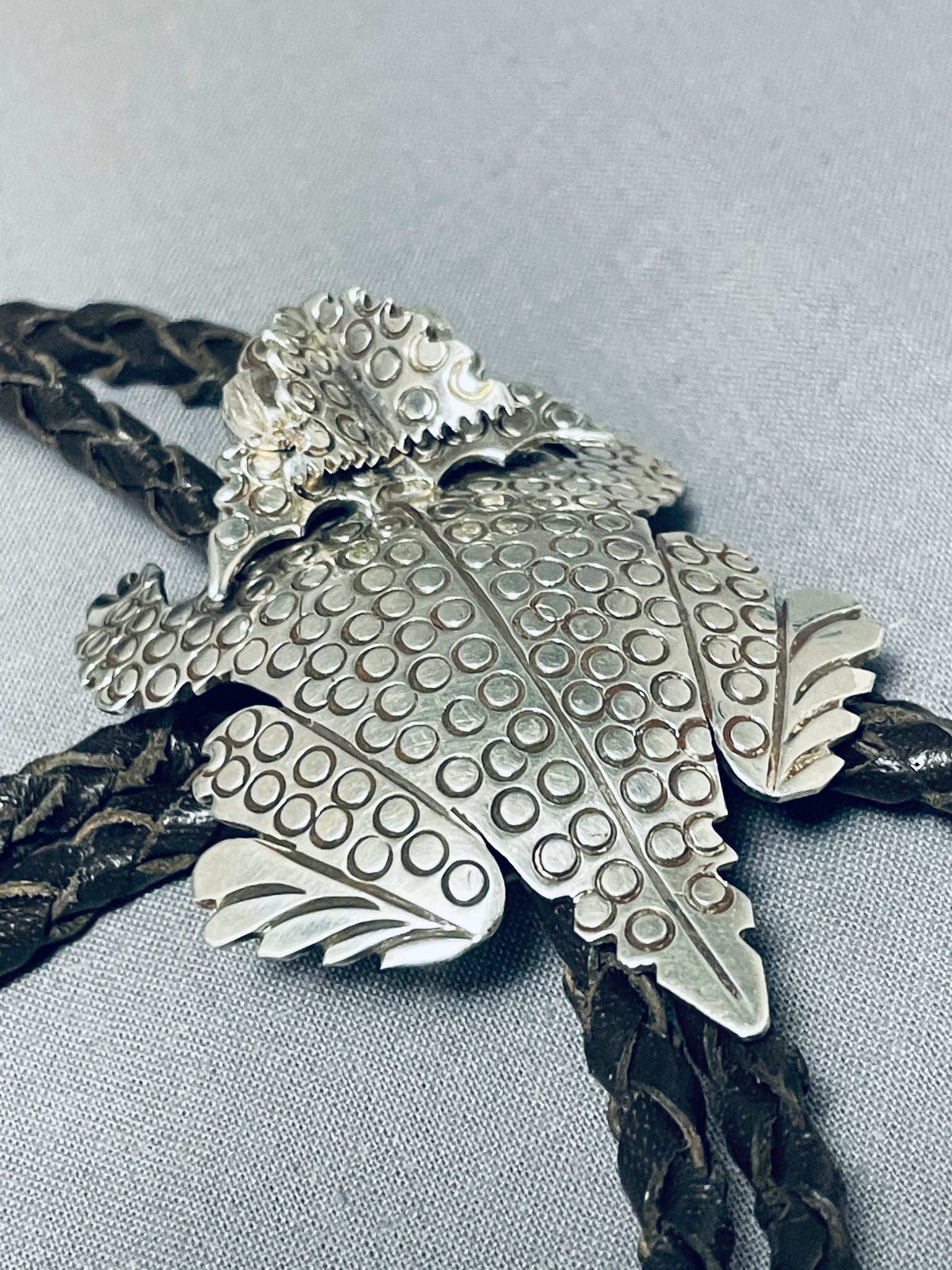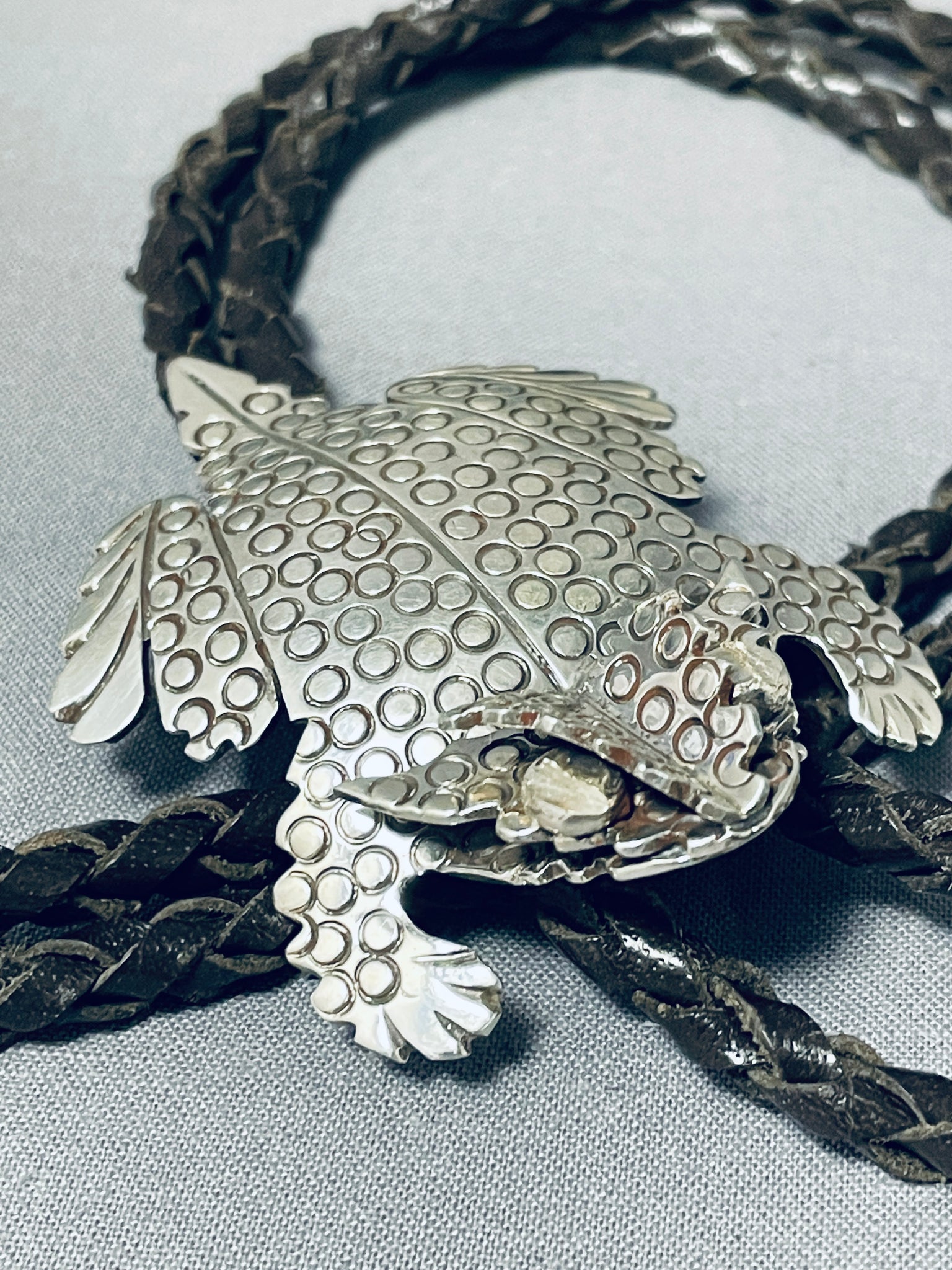 One Of The Most Detailed Native American Navajo Toad Sterling Silver Bolo Tie