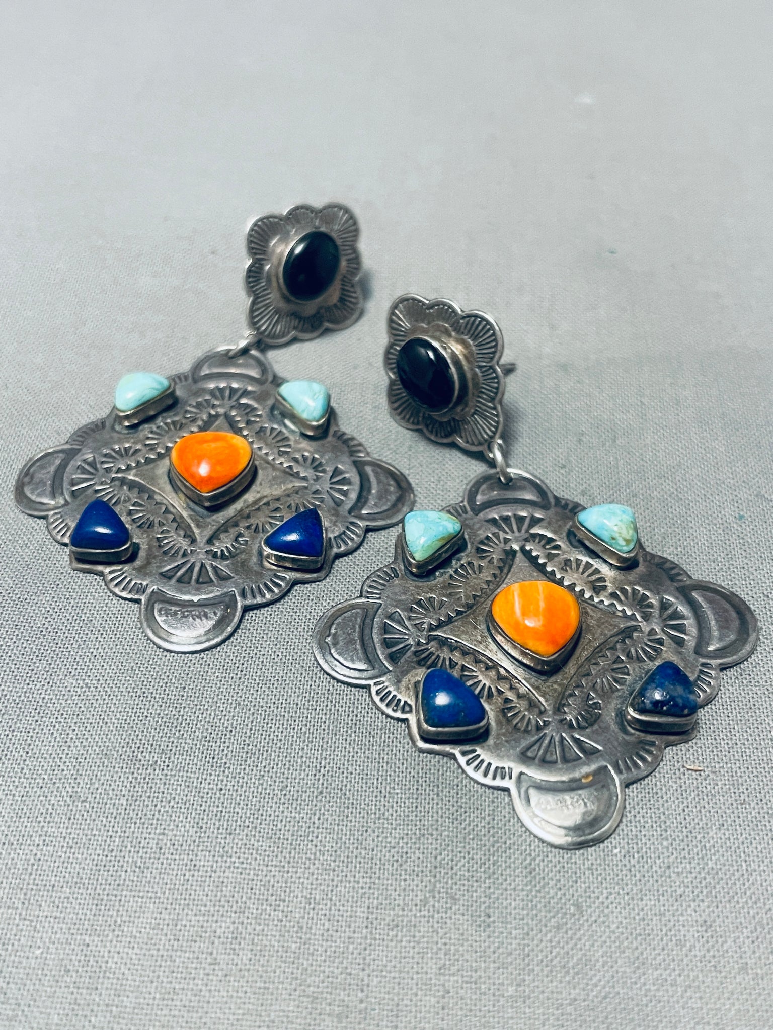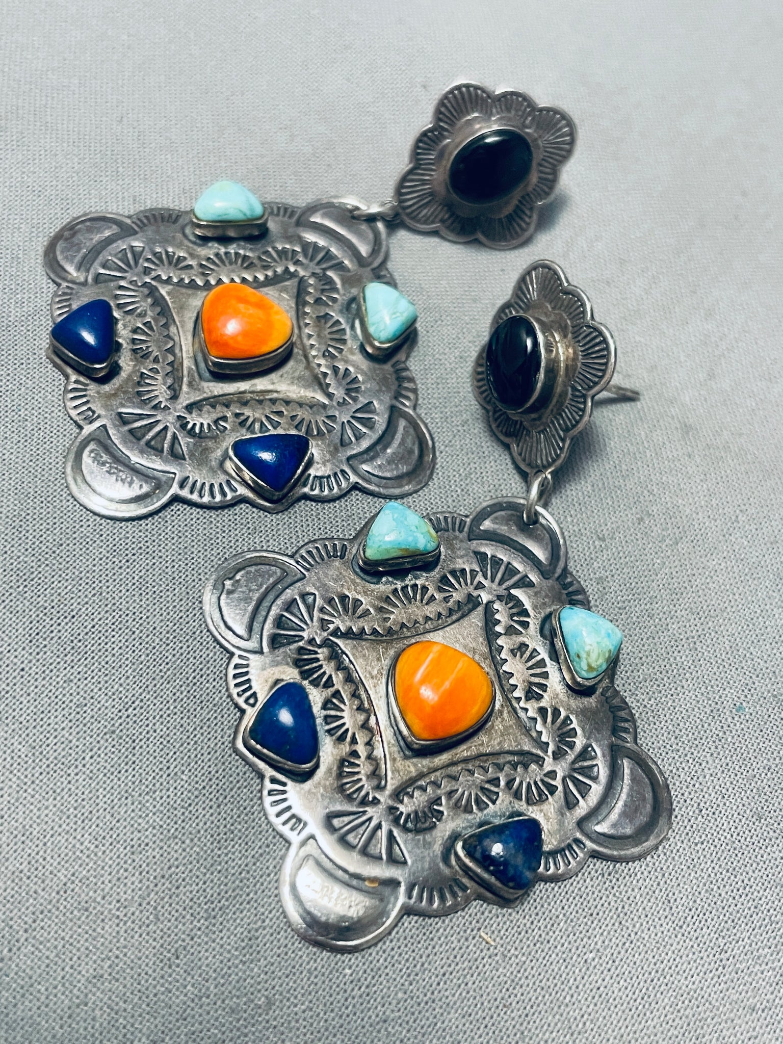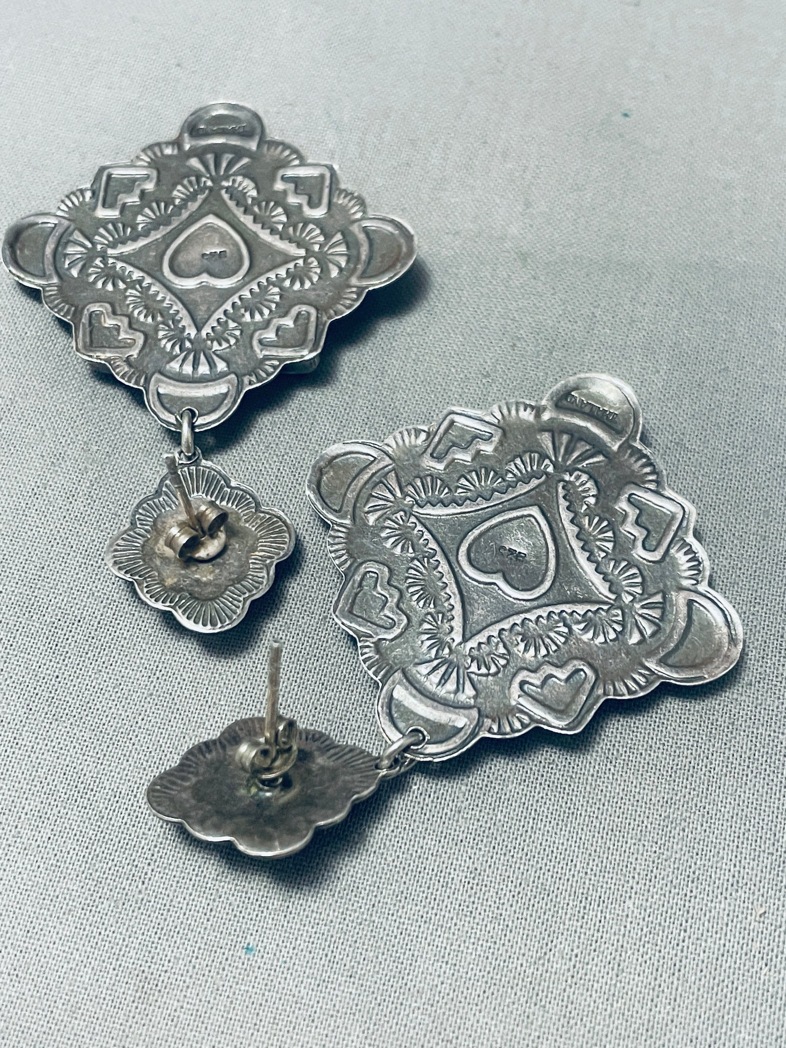 One Of The Most Detailed Vintage Turquoise Sterling Silver Earrings