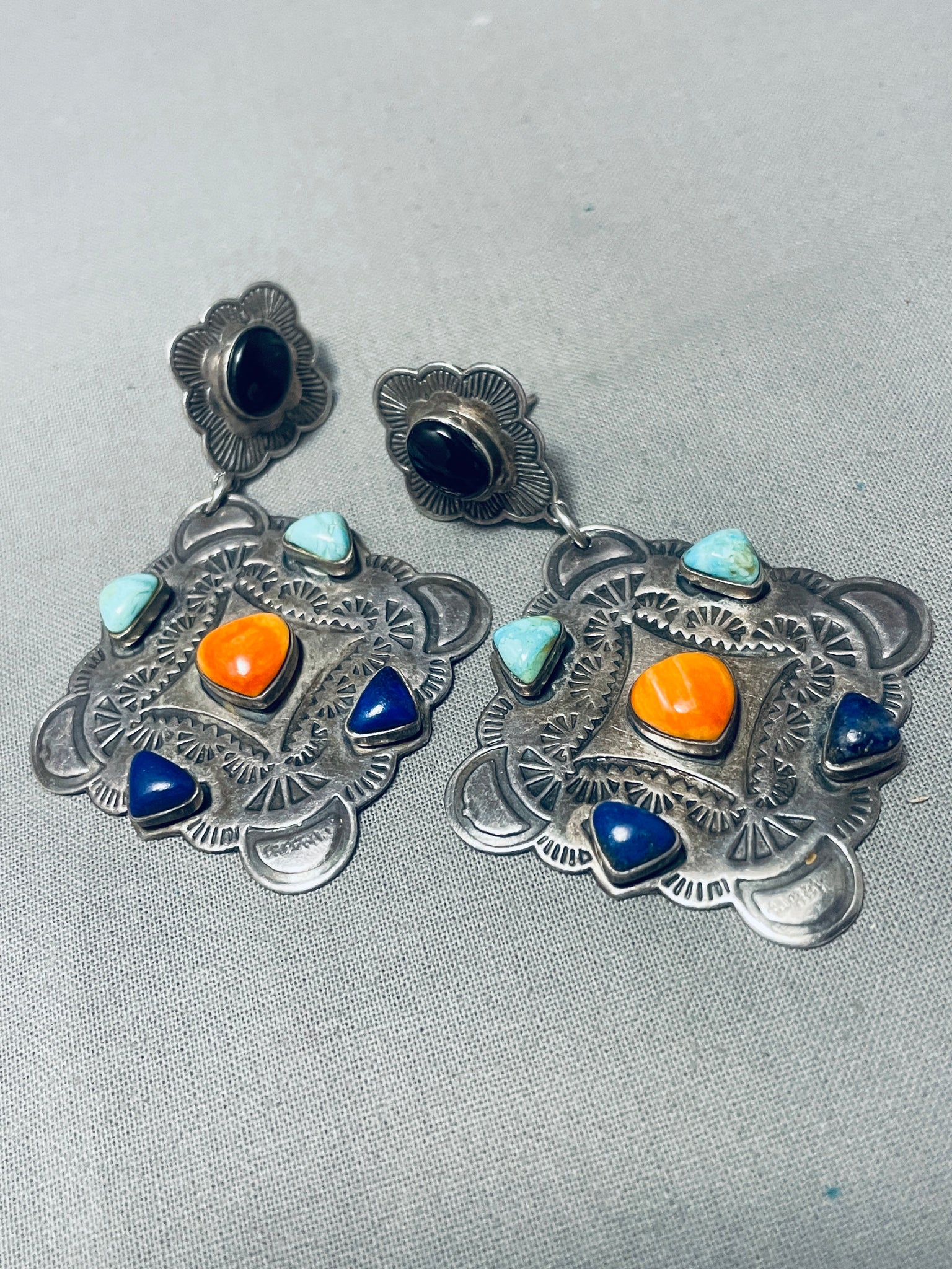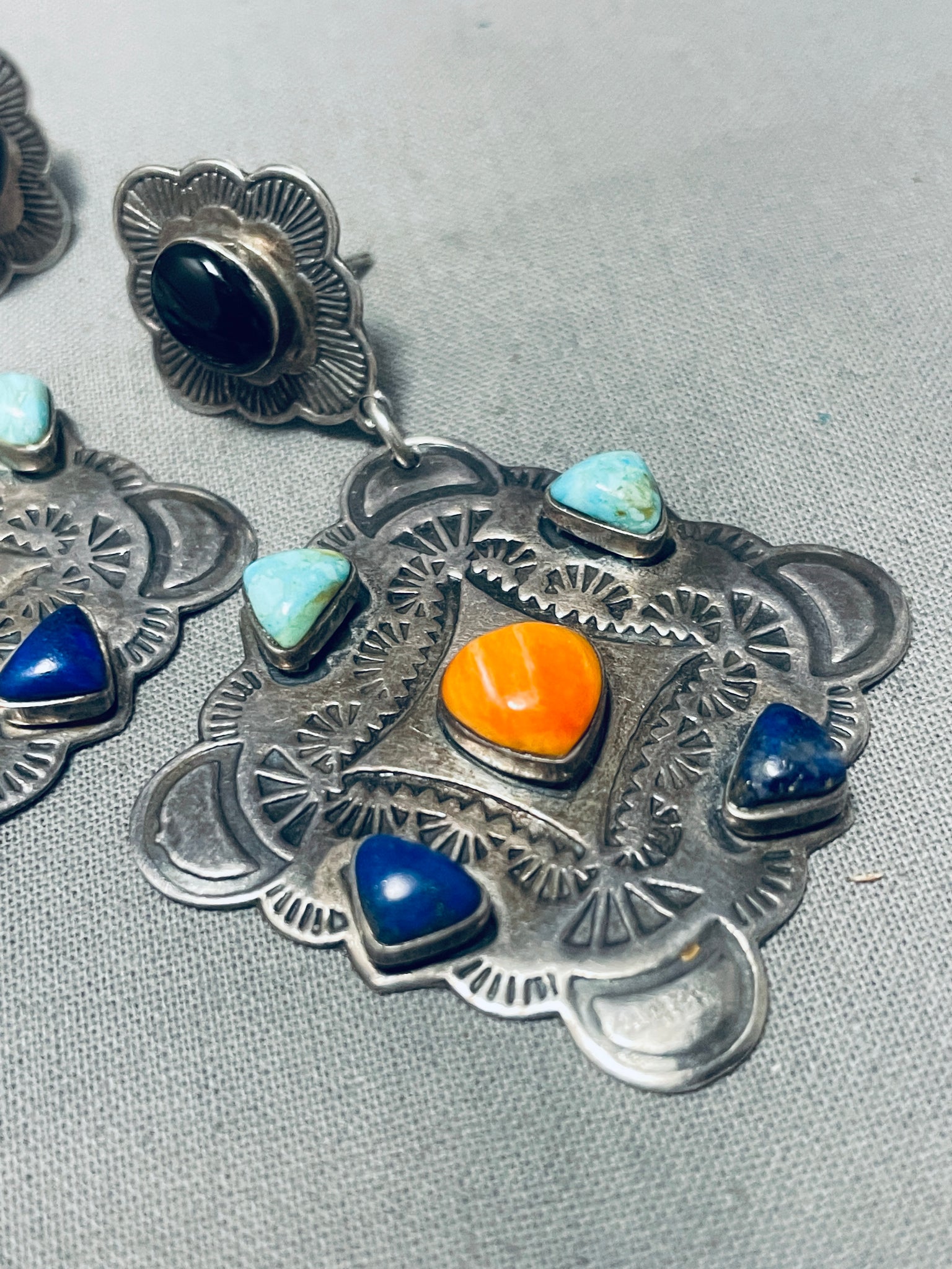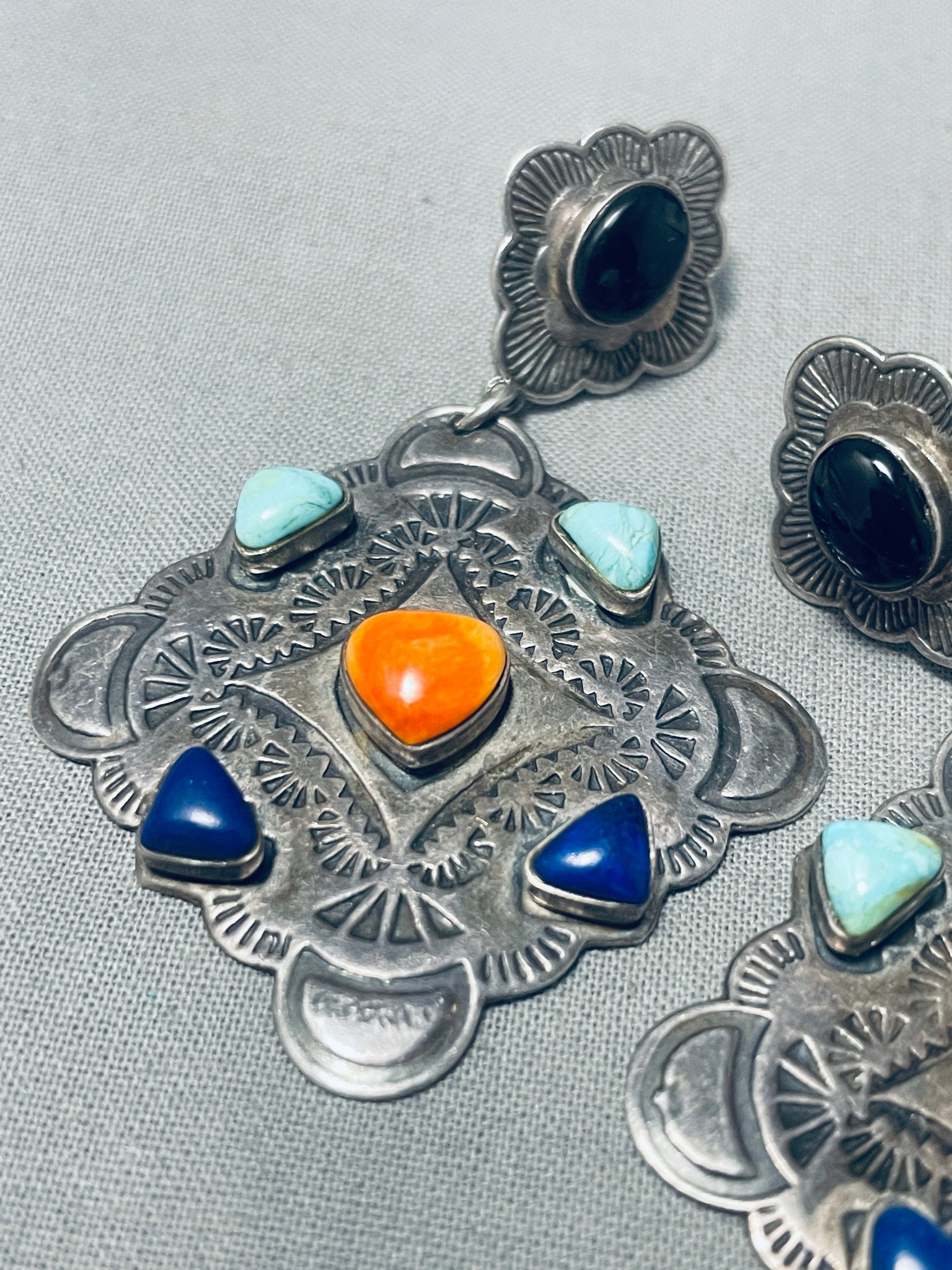 One Of The Most Detailed Vintage Turquoise Sterling Silver Earrings