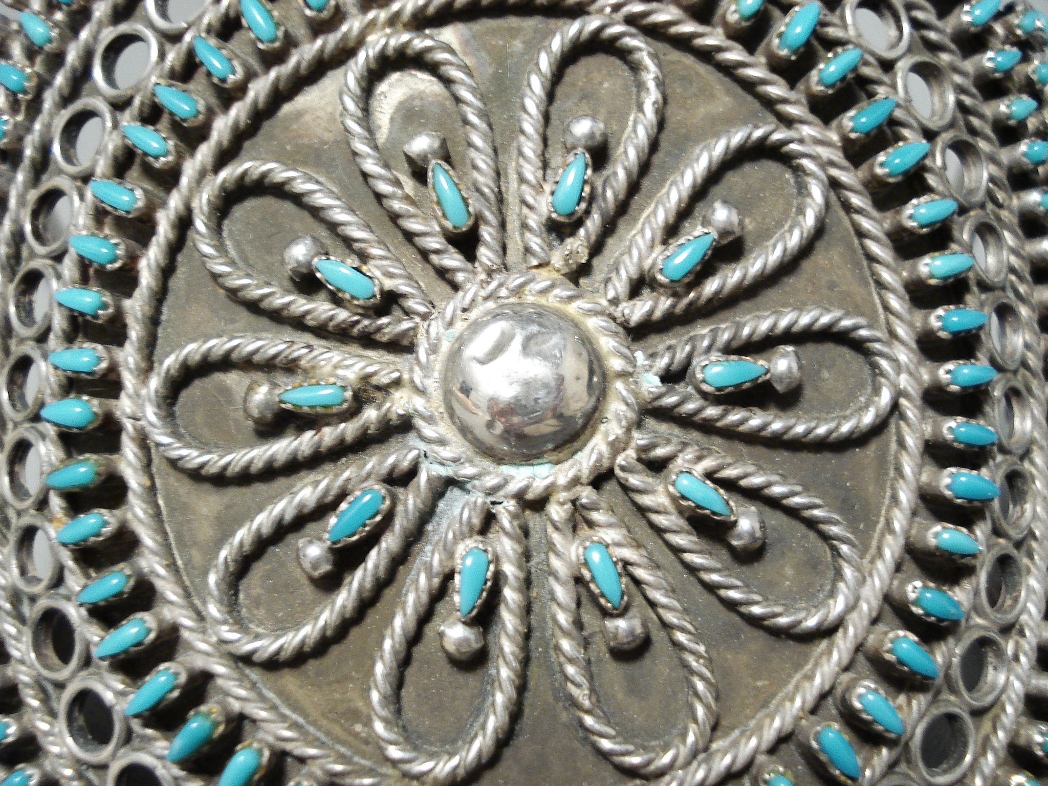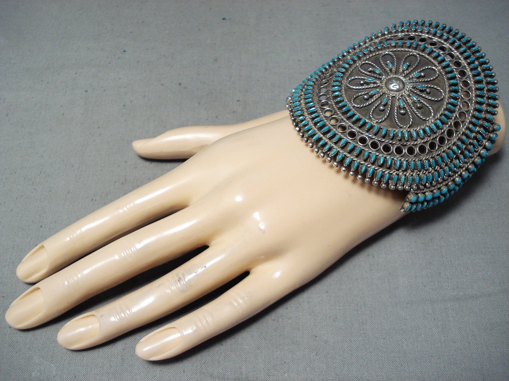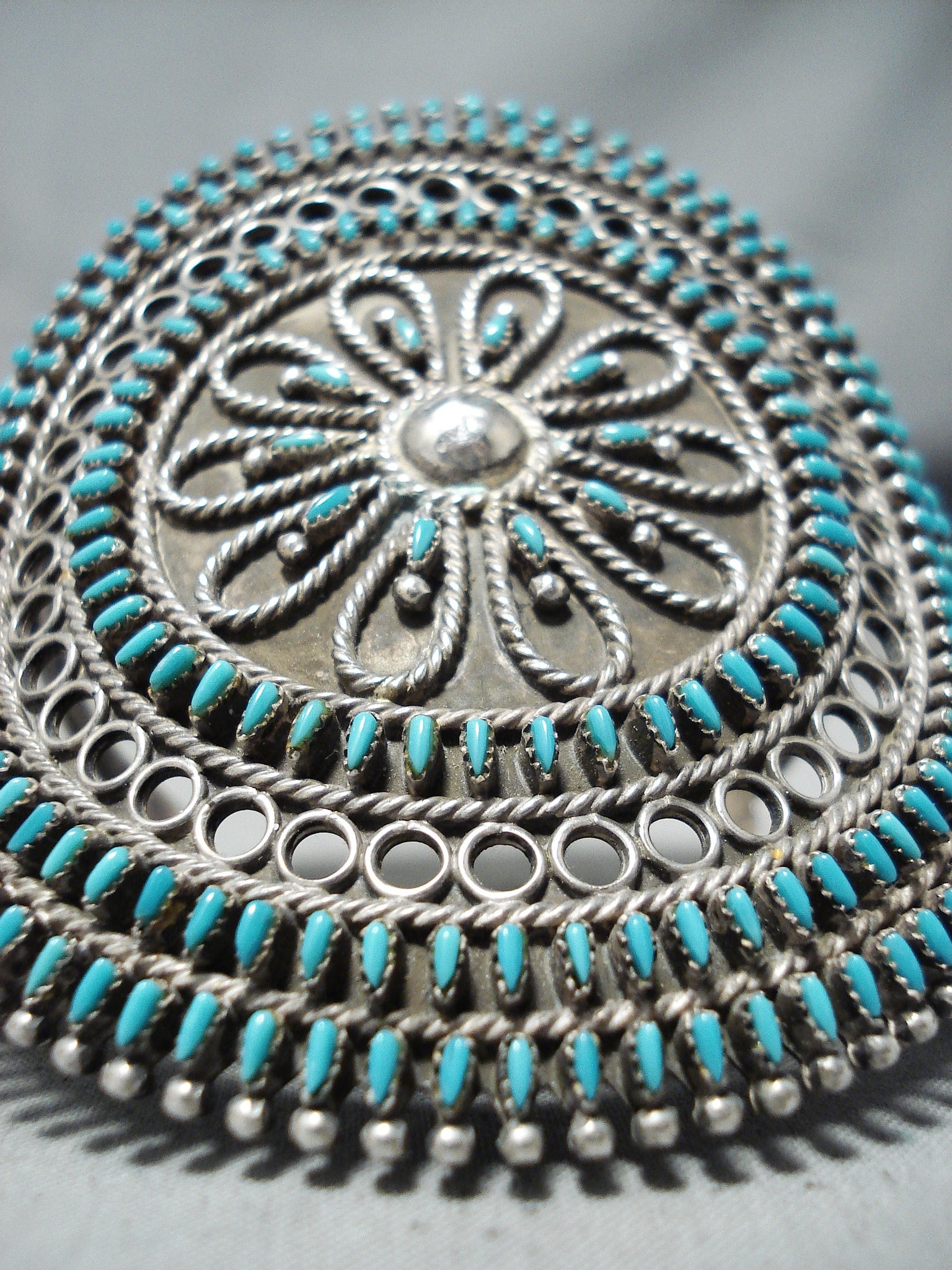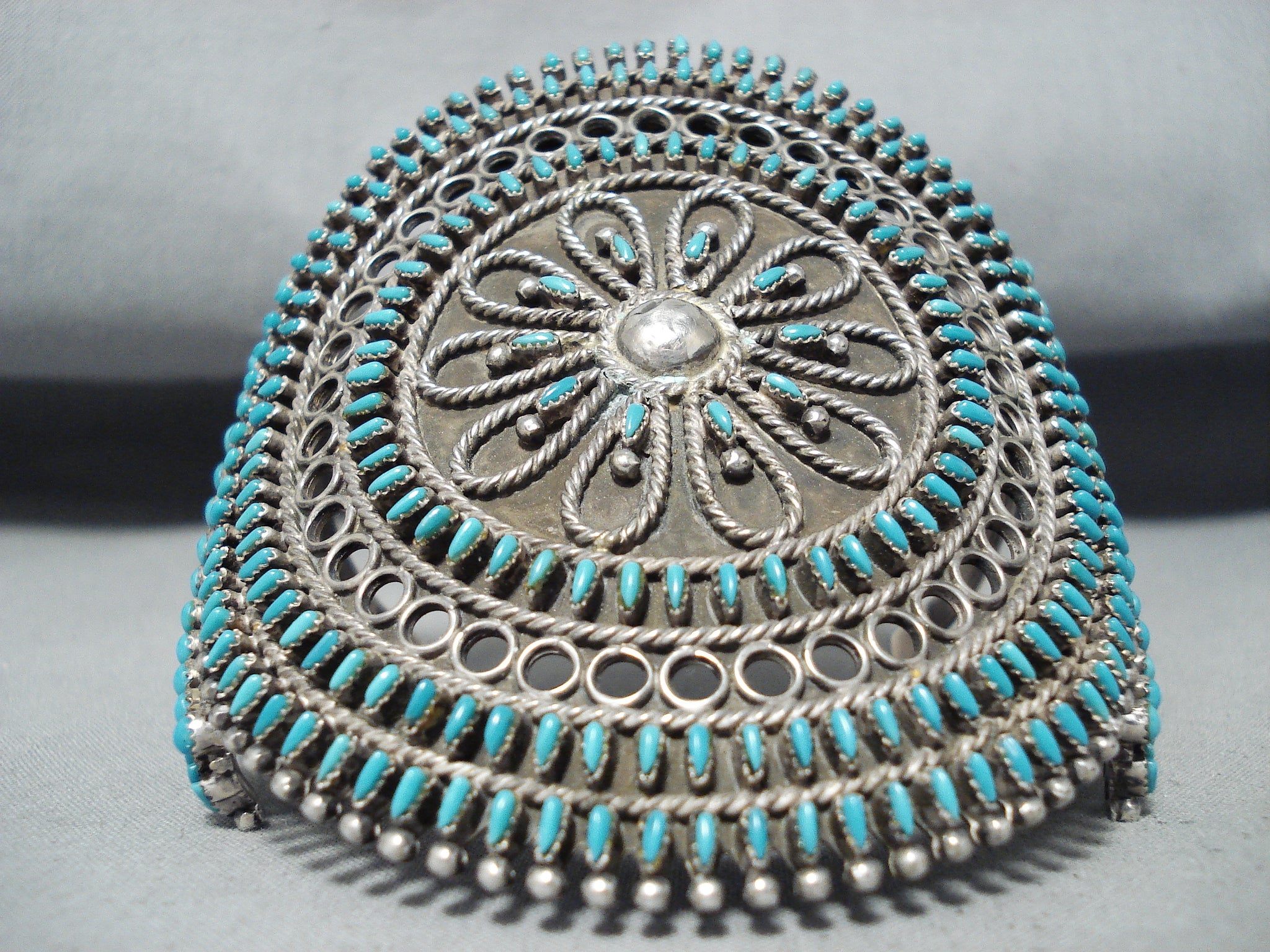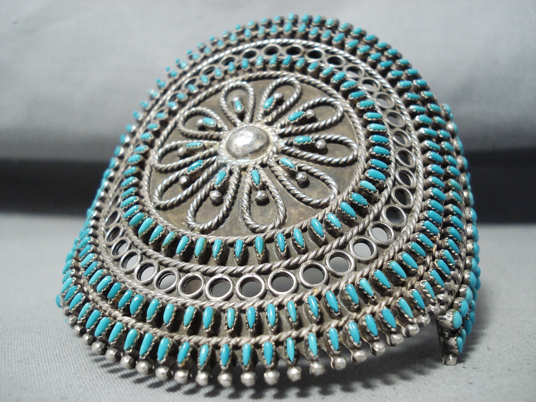 One Of The Most Intricate Ever Vintage Native American Zuni Turquoise Sterling Silver Bracelet