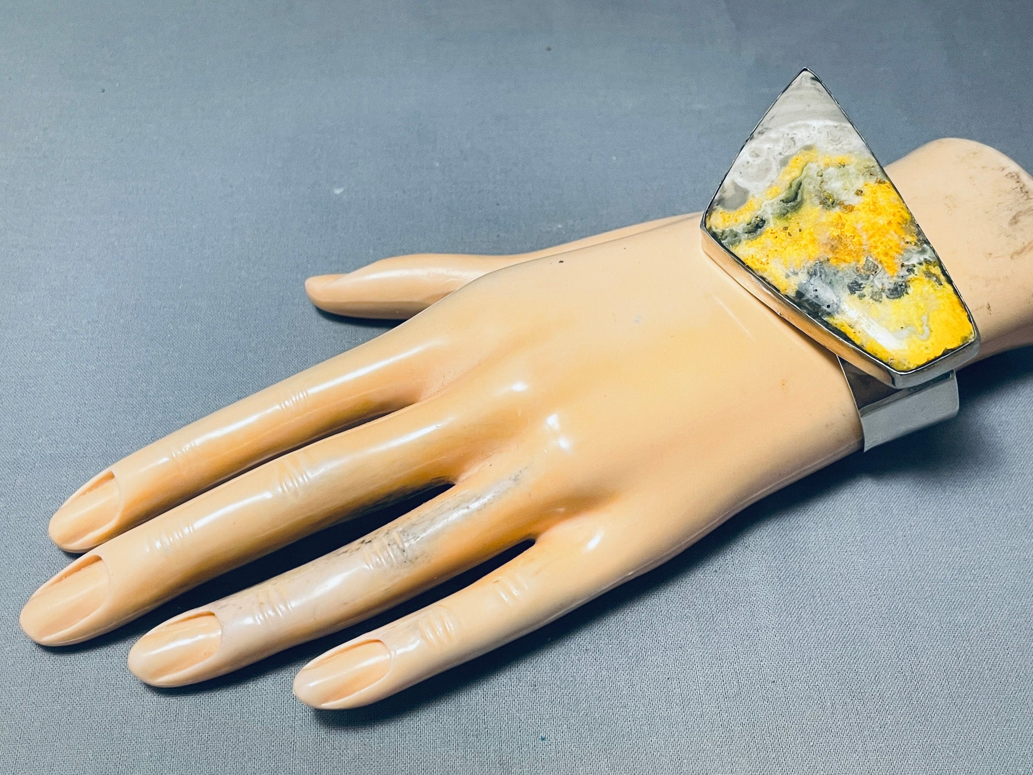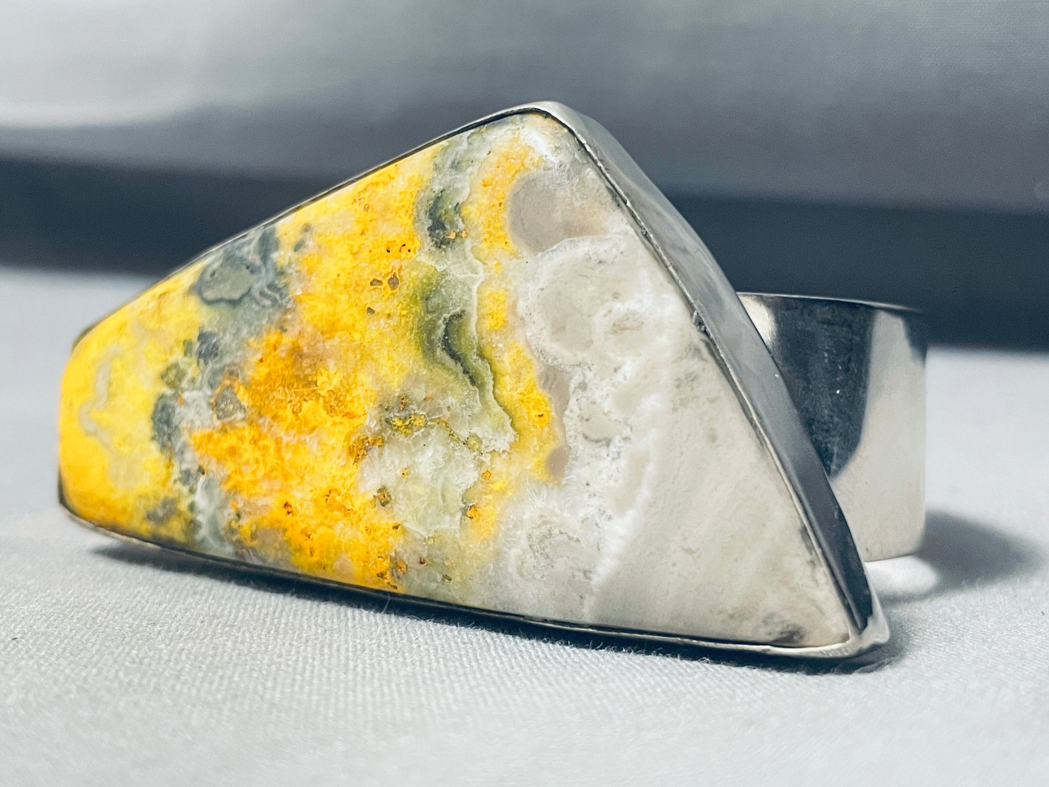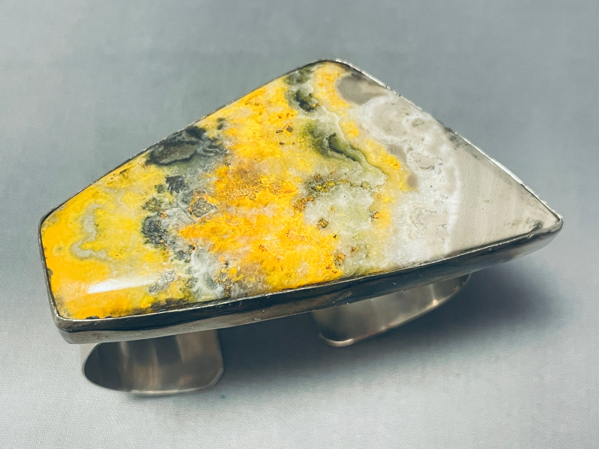 One Of The Most Unique Ever Native American Navajo Honeybee Jasper Sterling Silver Bracelet
