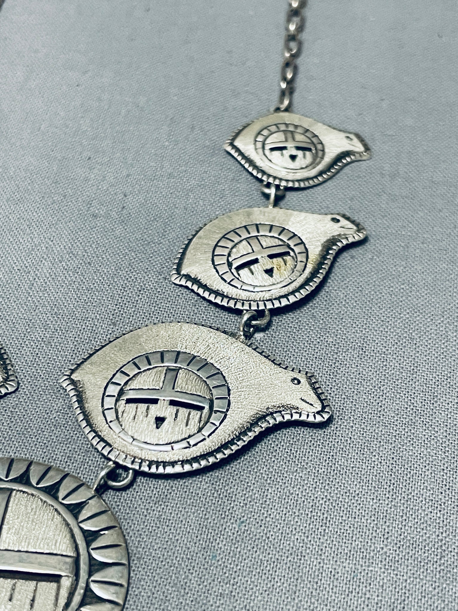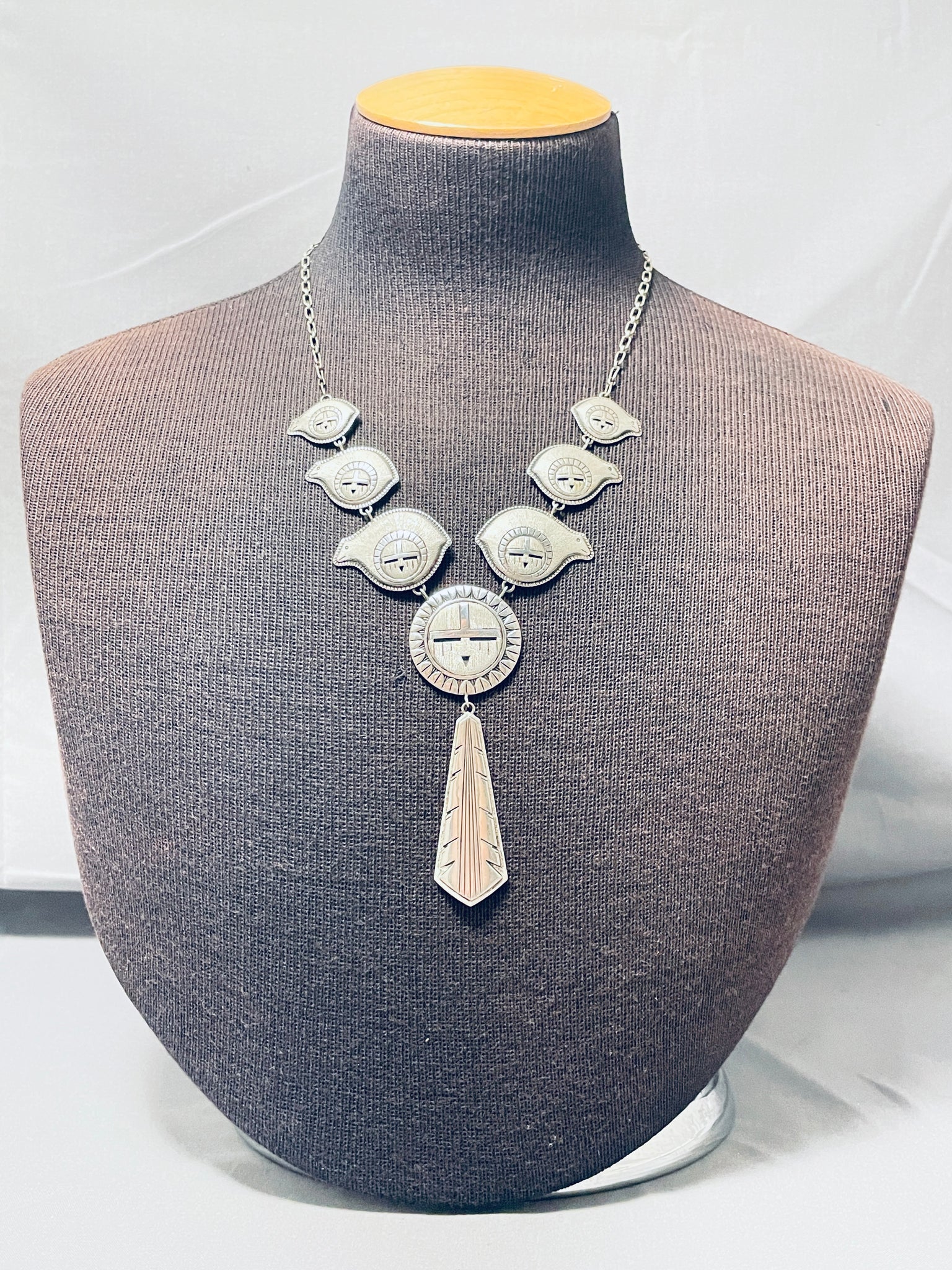 One Of The Most Unique Vintage Native American Navajo Sterling Silver Necklace
