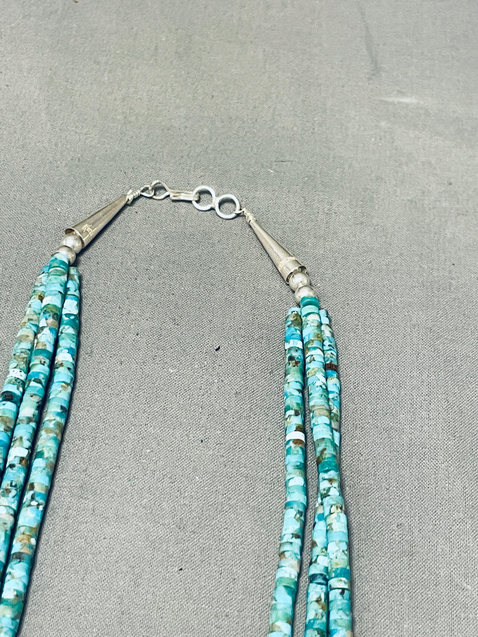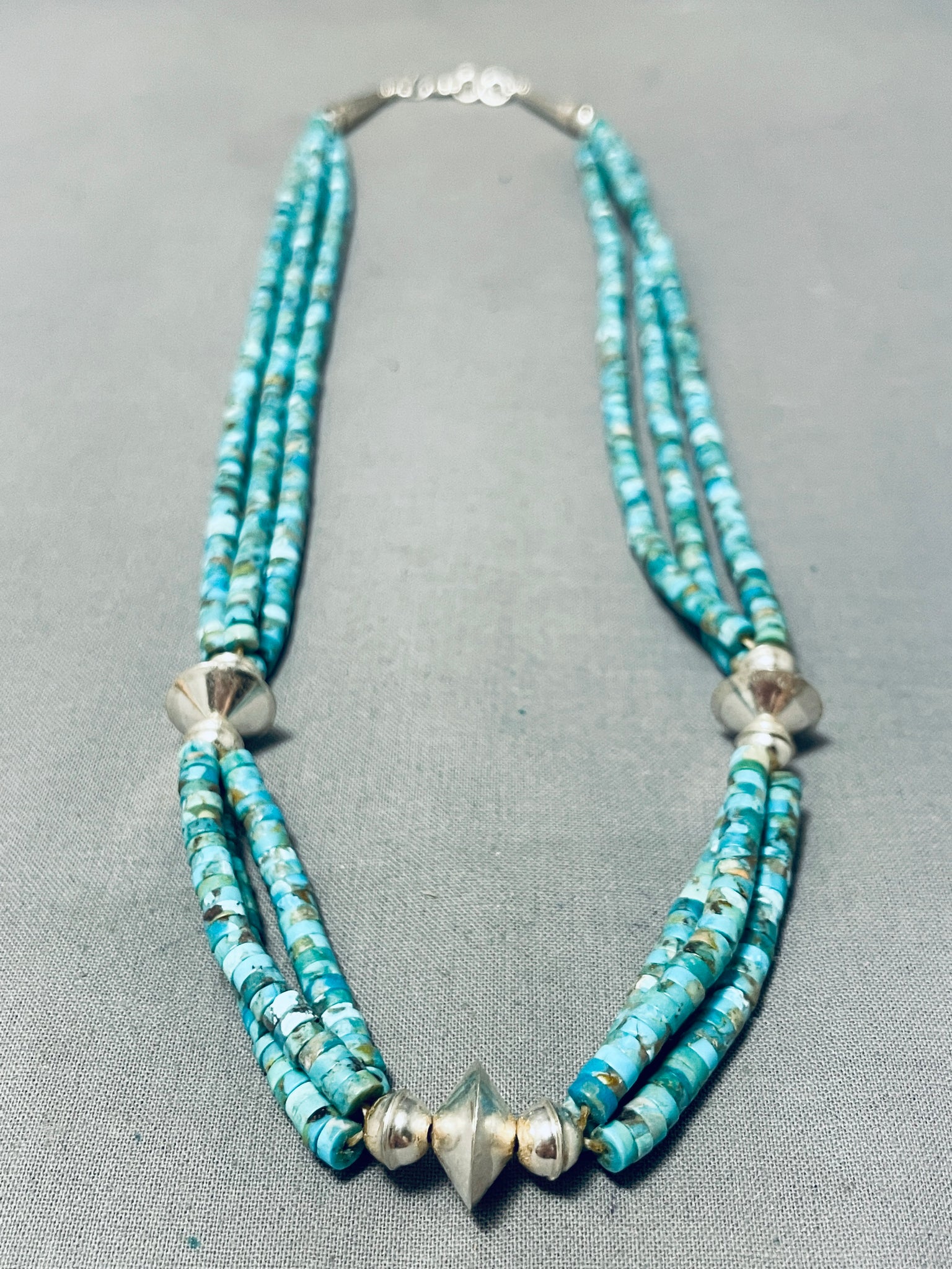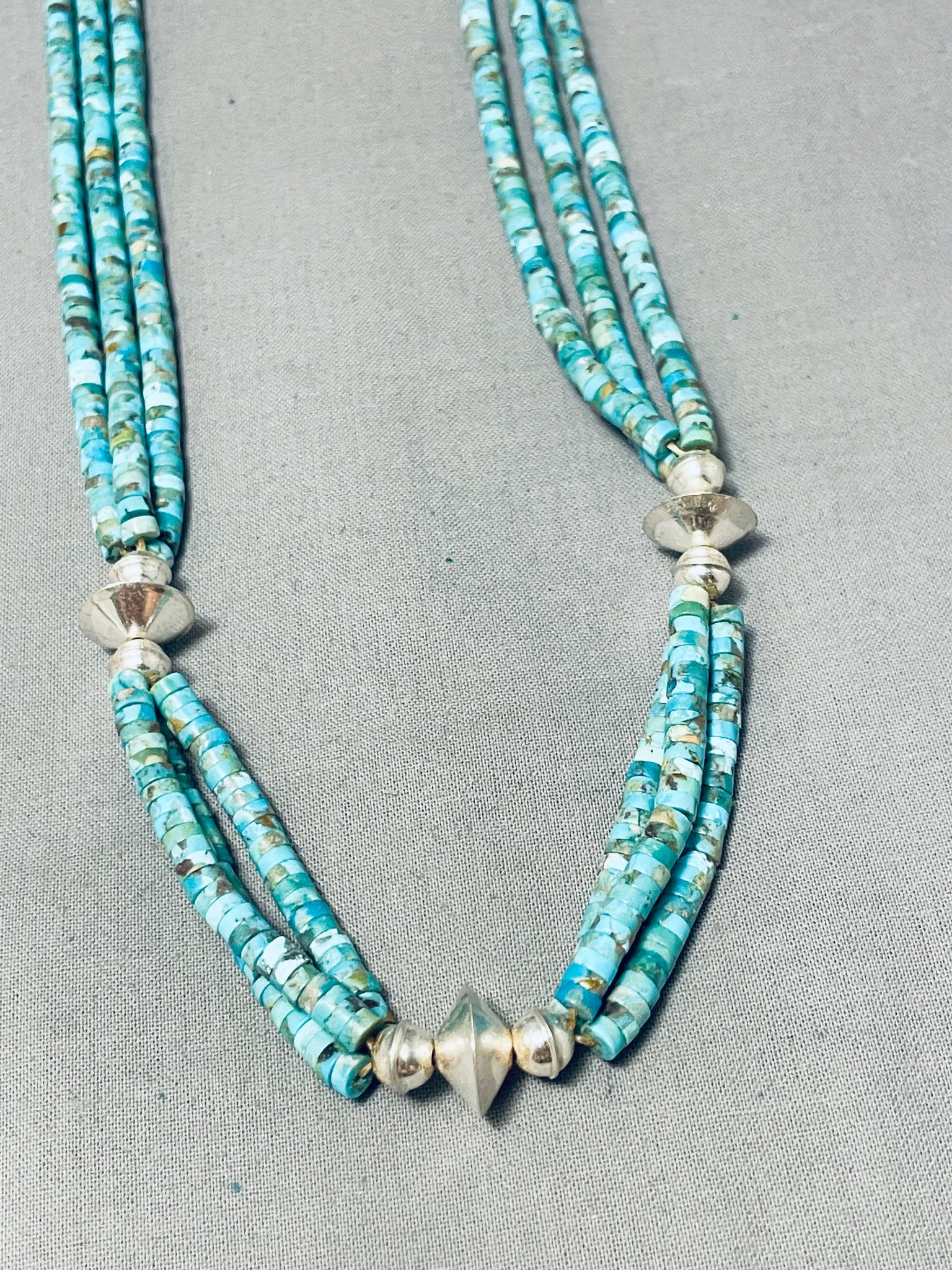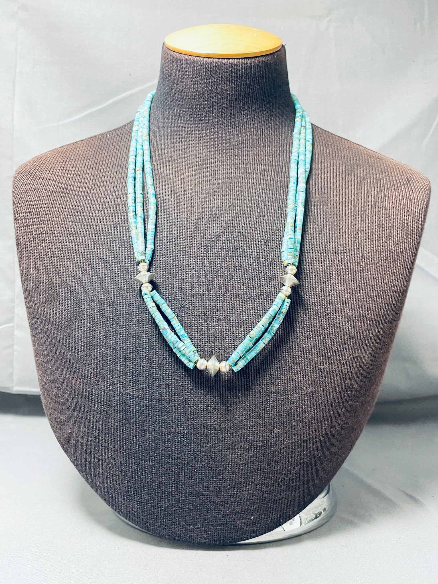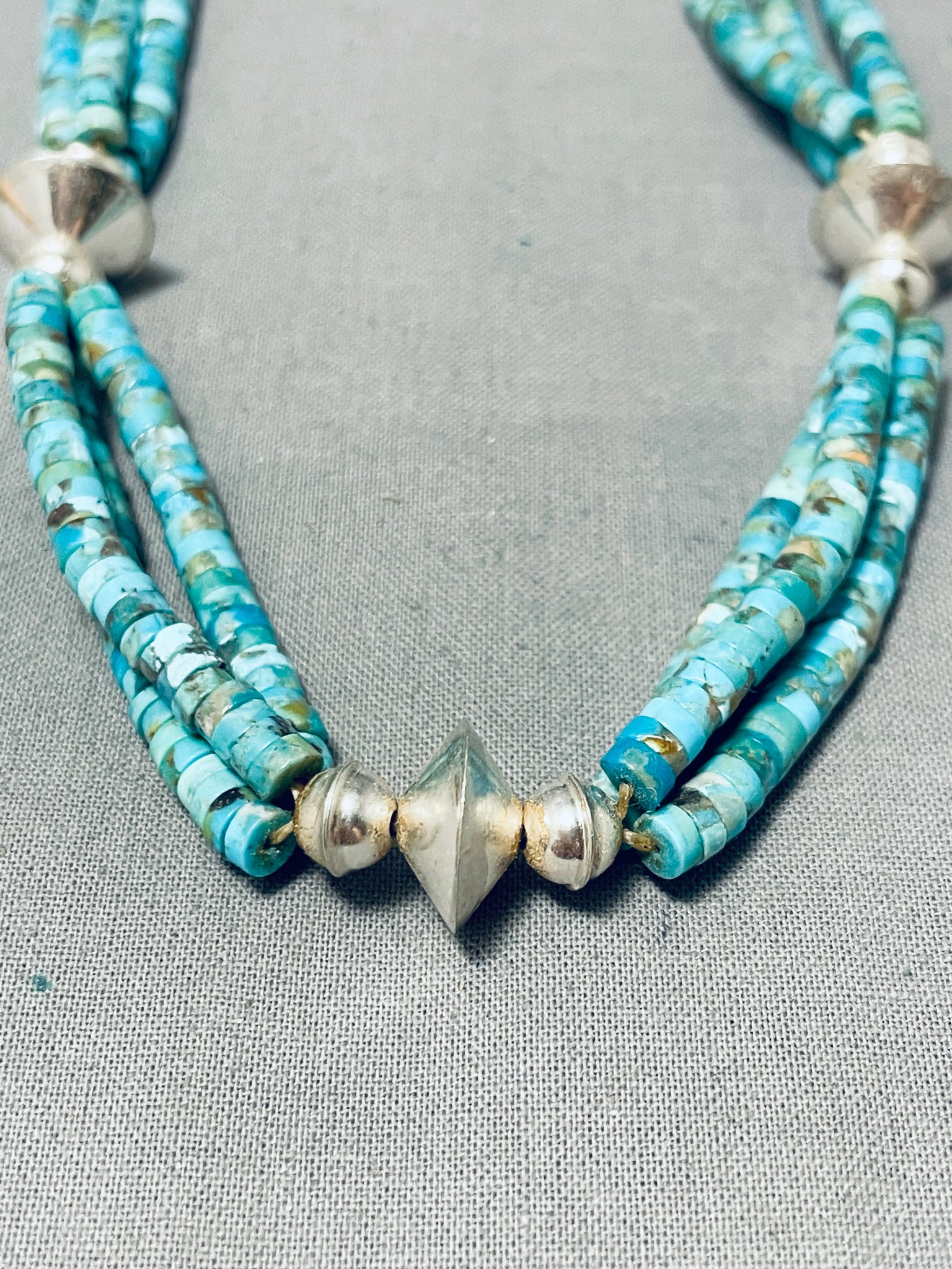One Of The Most Unique Vintage Santo Domingo Turquoise Sterling Silver Necklace