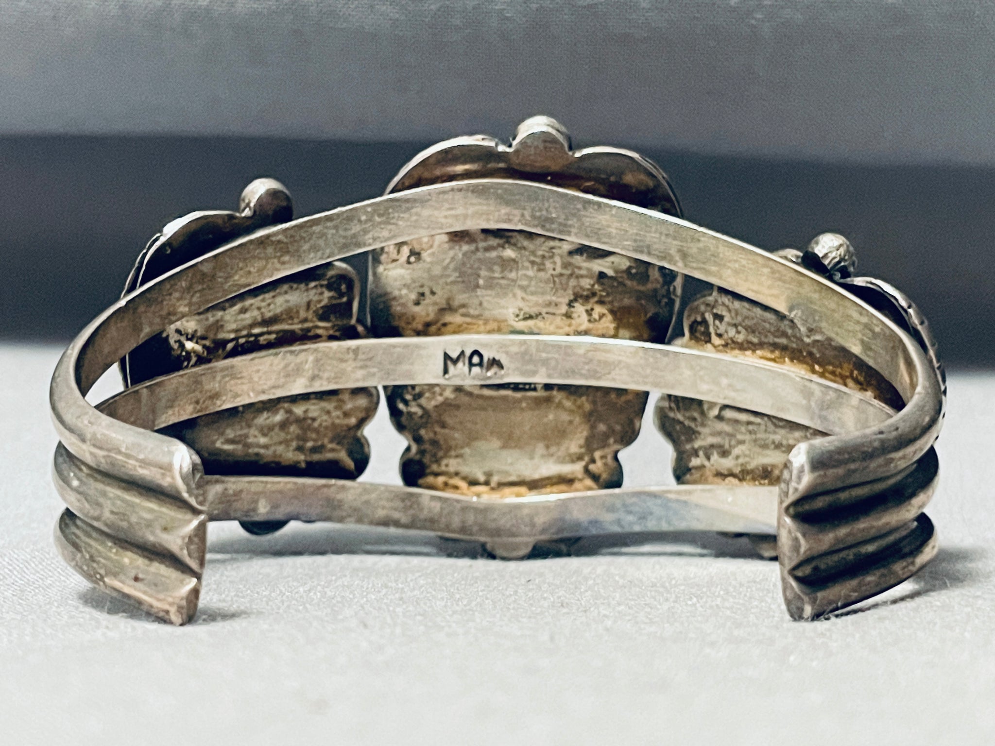 Optimum Vintage Native American Navajo #8 Turquoise Sterling Silver Leaf Bracelet Cuff