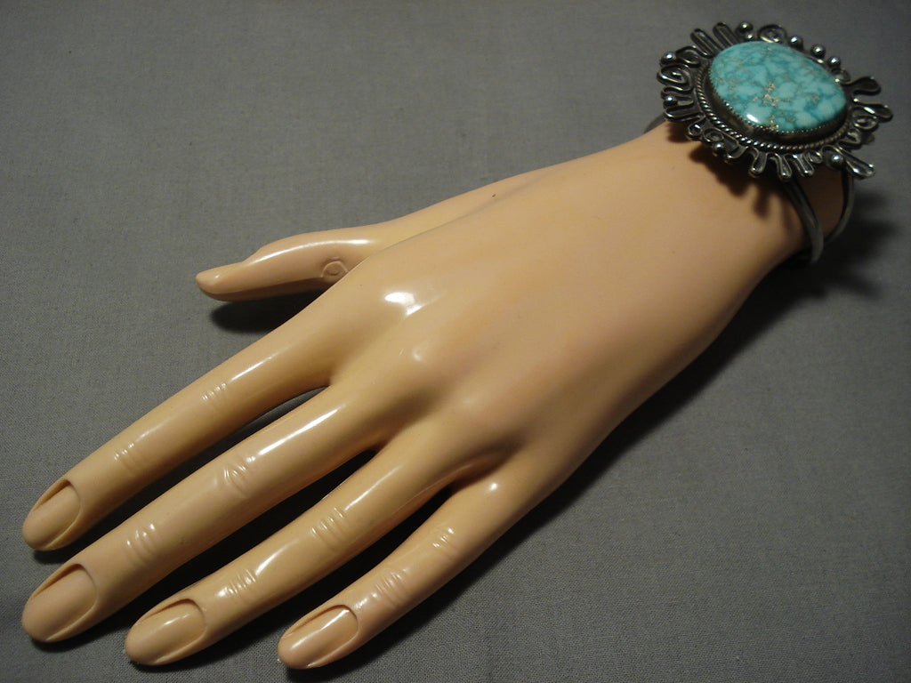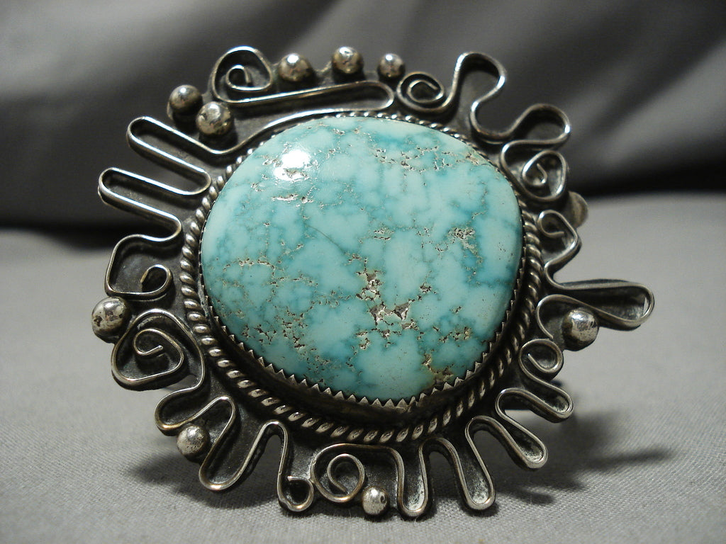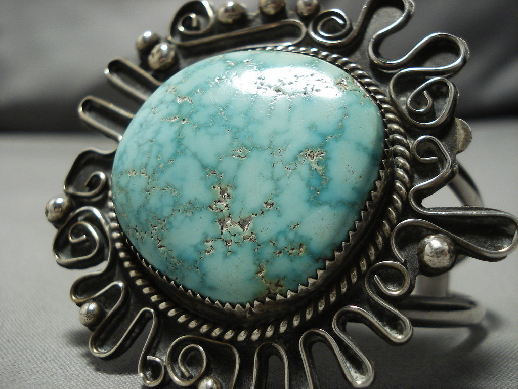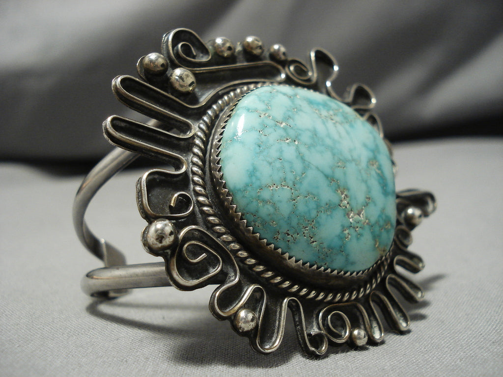 Opulent High Grade Carico Lake Turquoise Vintage Native American Navajo Sterling Silver Bracelet