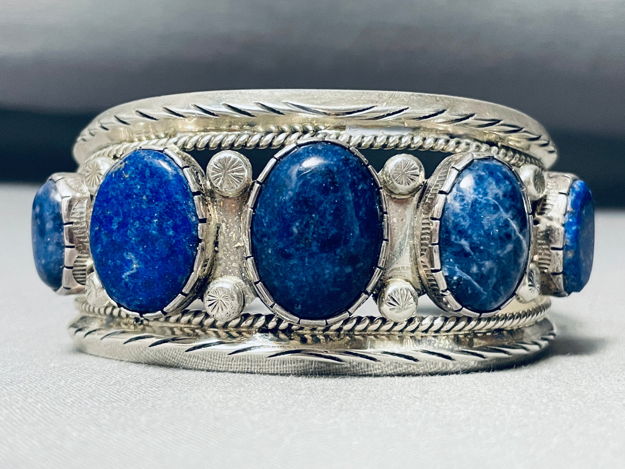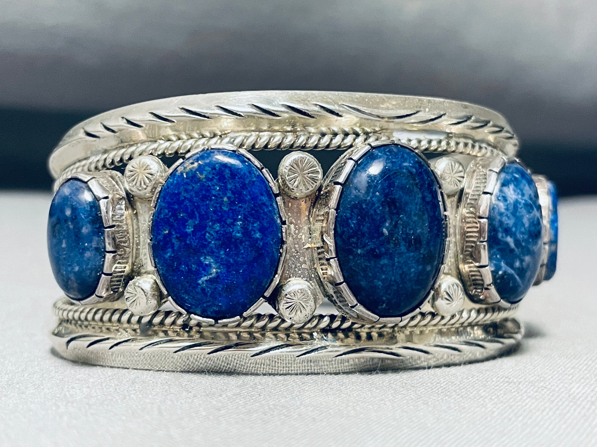 Opulent Midnight Lapis Vintage Native American Navajo Sterling Silver Bracelet Cuff
