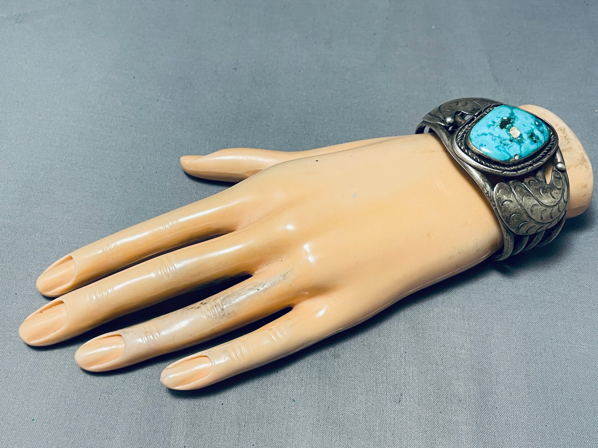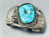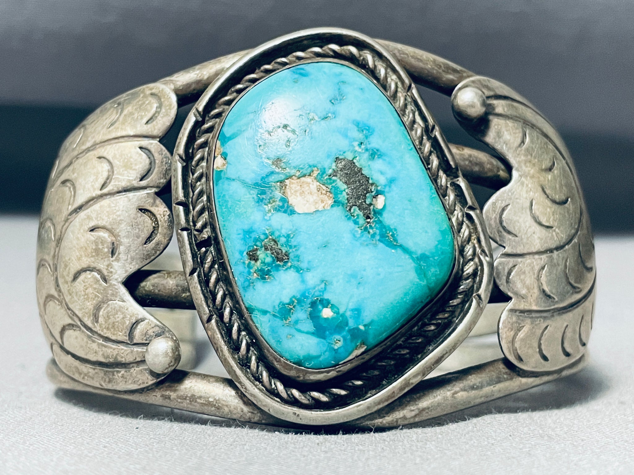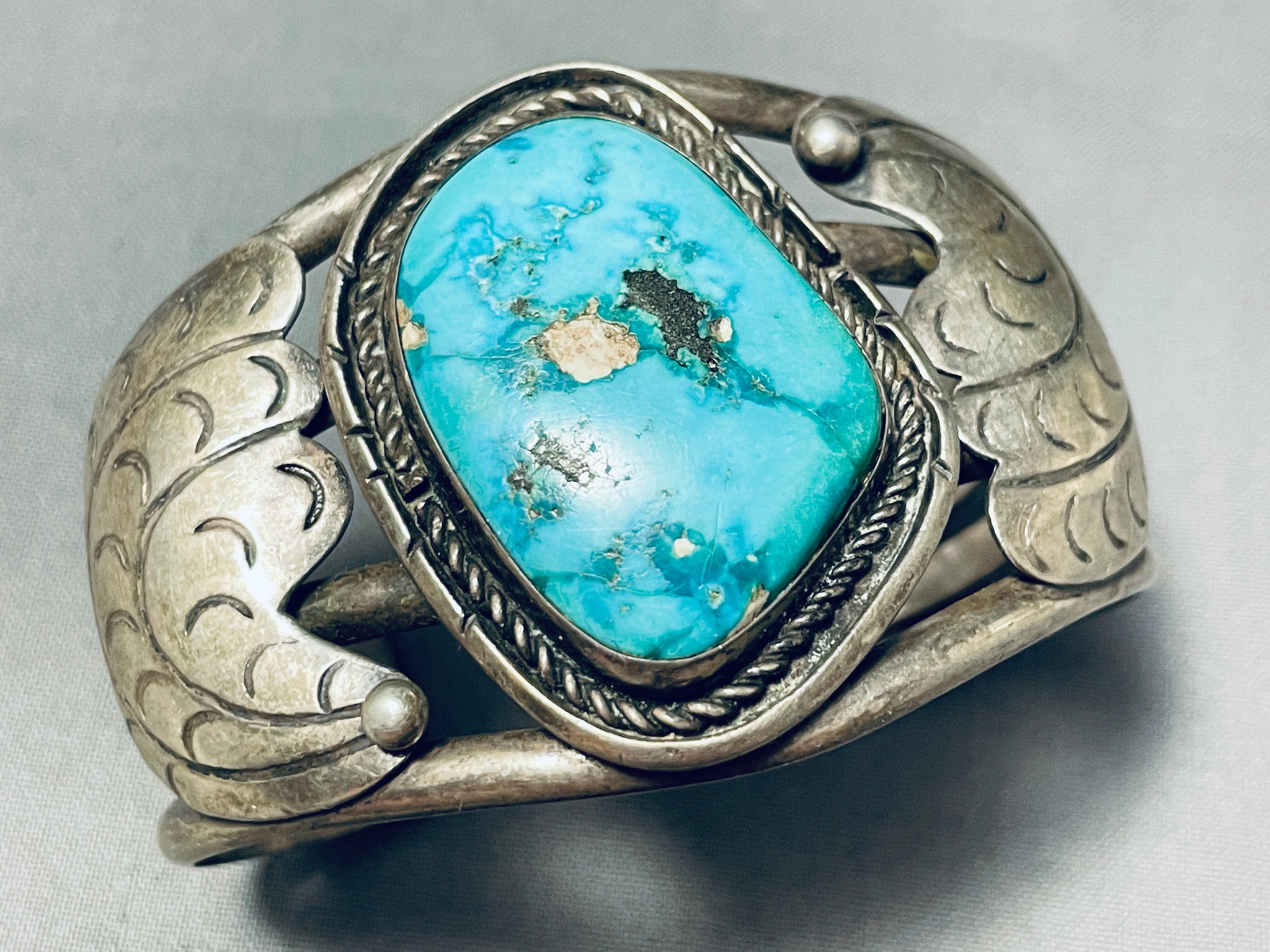 Opulent Vintage Native American Navajo Carico Lake Turquoise Sterling Silver Bracelet