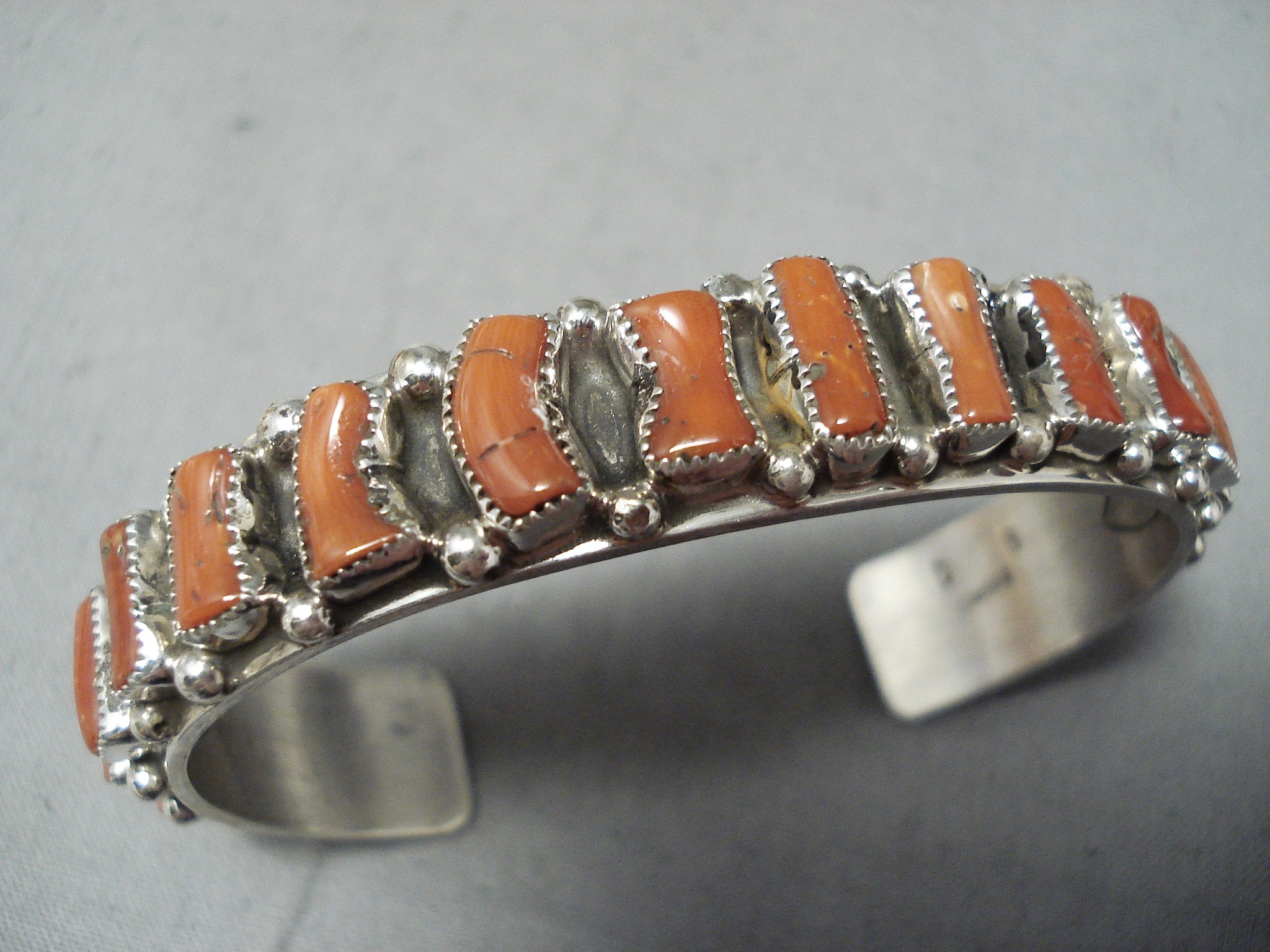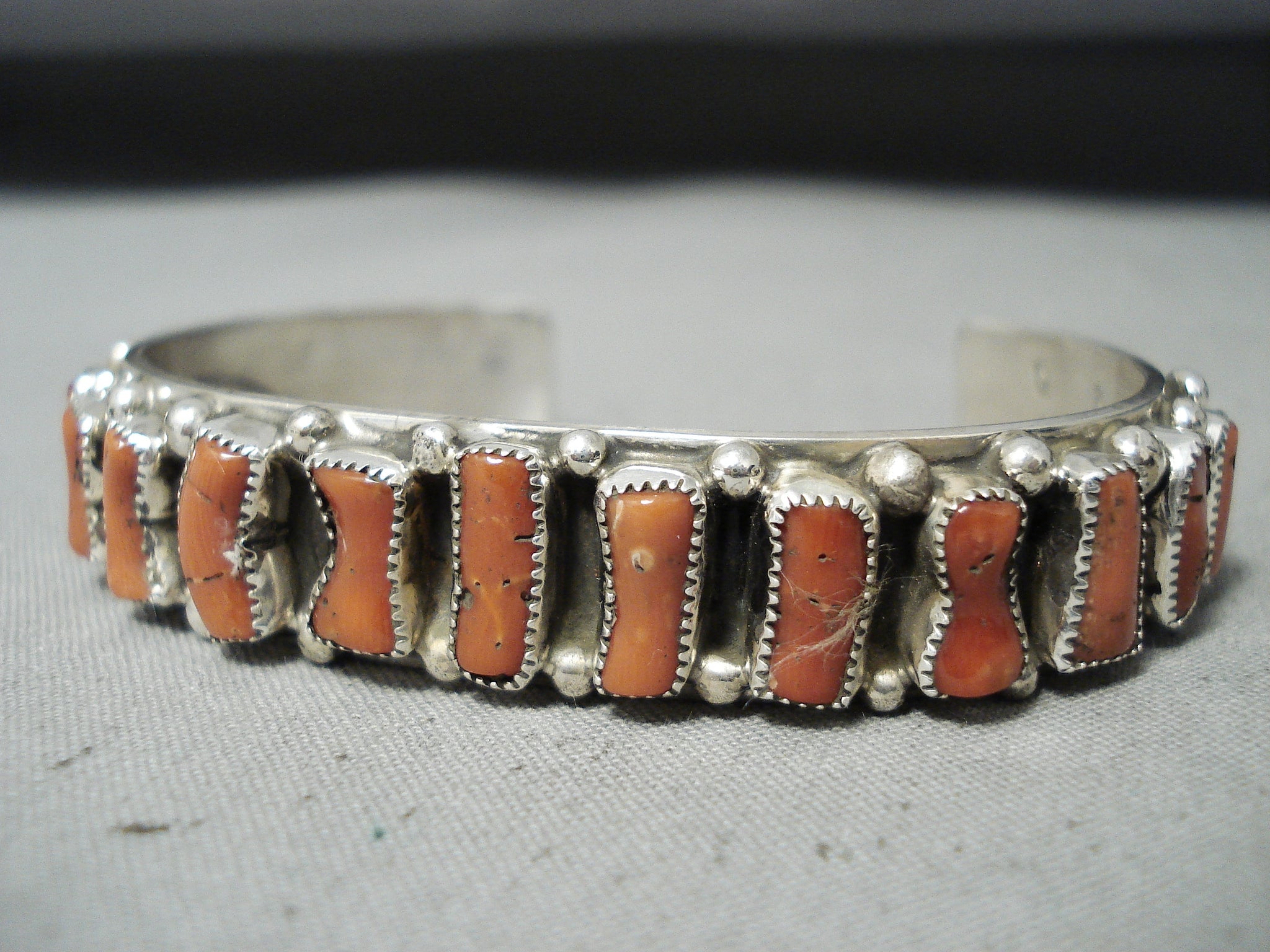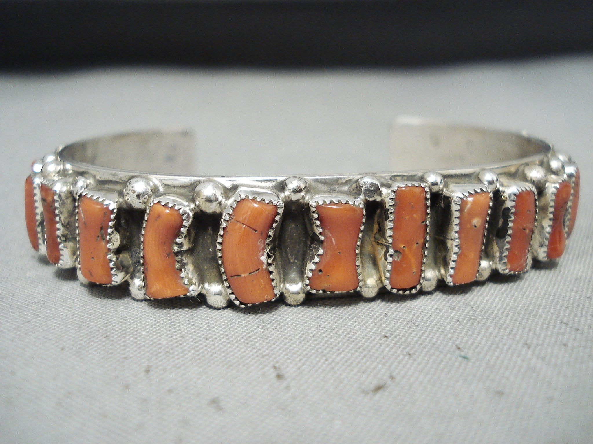 Outstanding Darlne Begay Native American Navajo Signed Coral Sterling Silver Bracelet