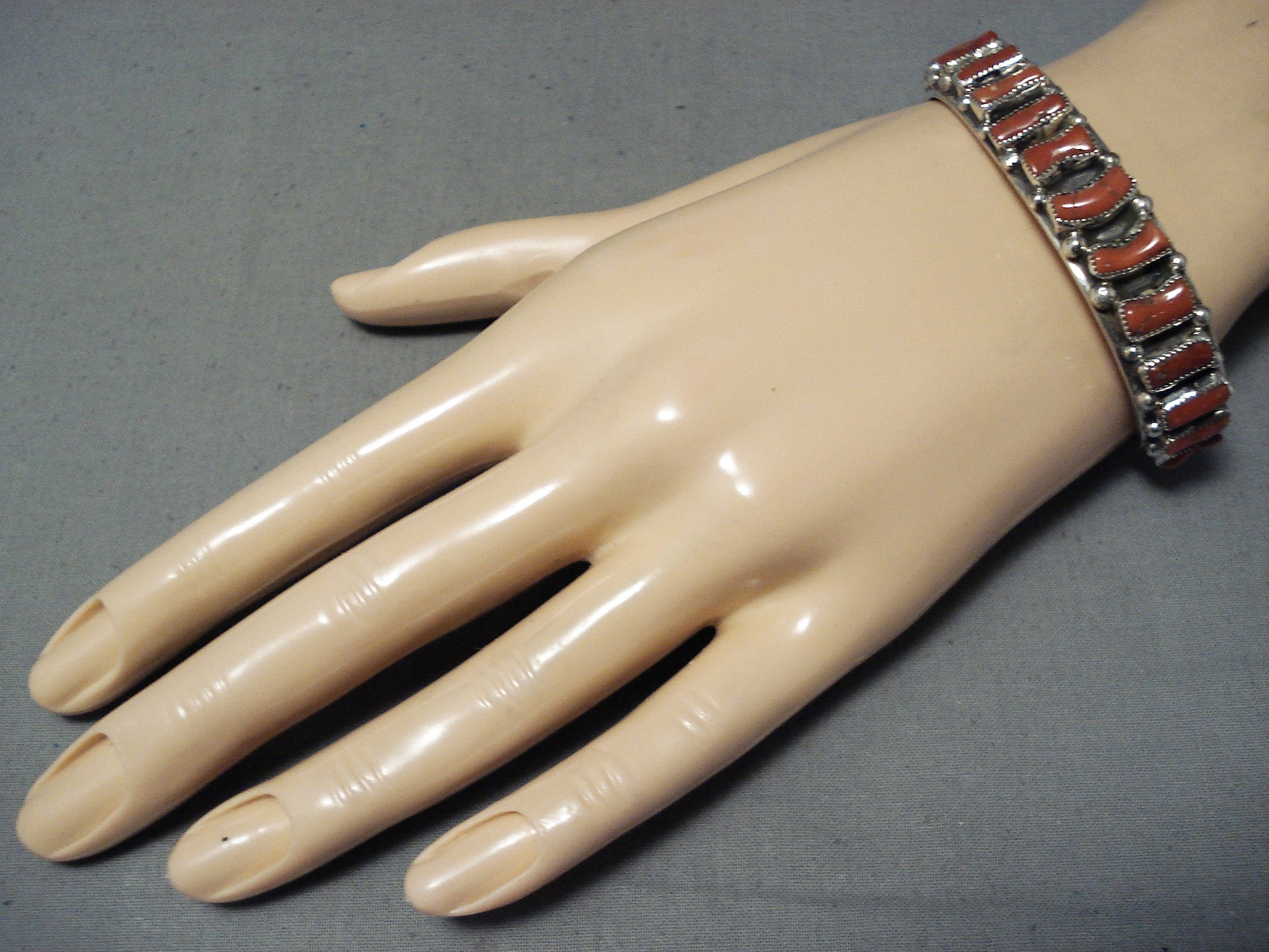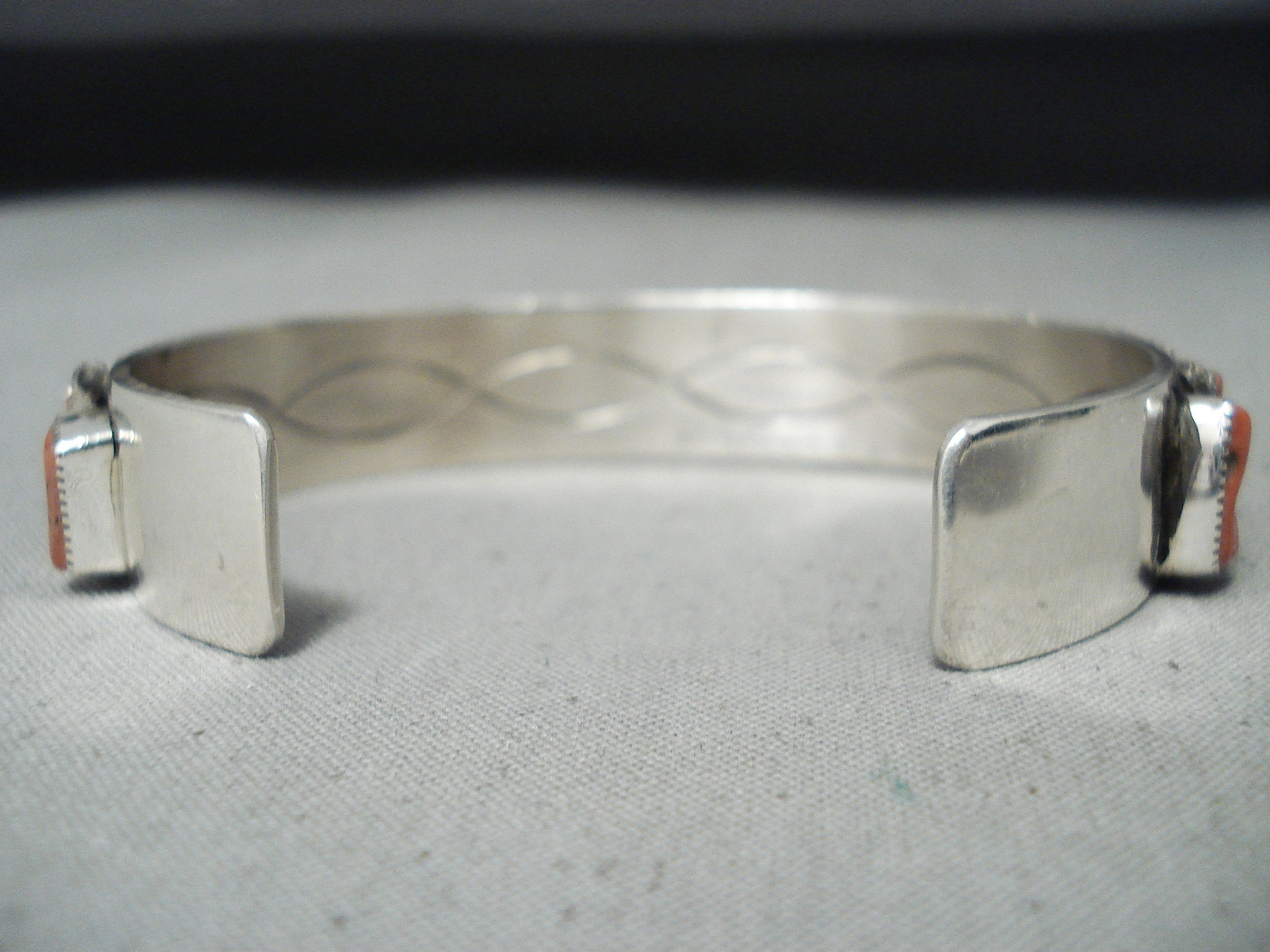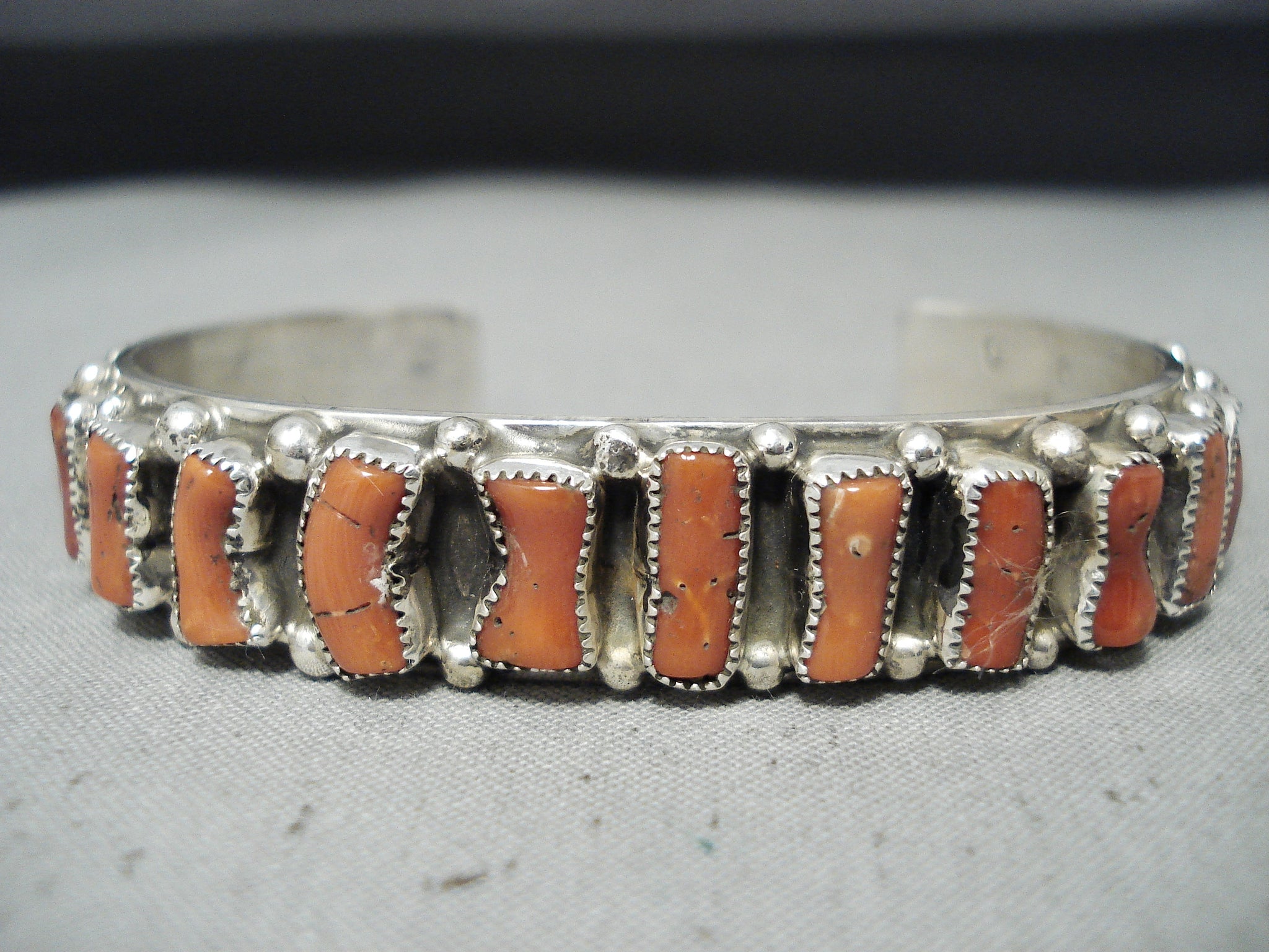 Outstanding Darlne Begay Native American Navajo Signed Coral Sterling Silver Bracelet
