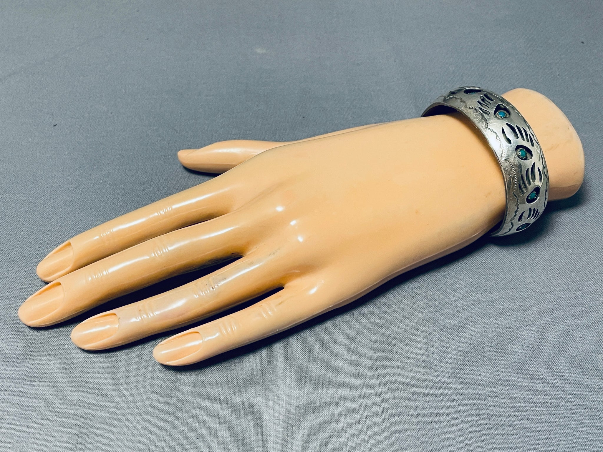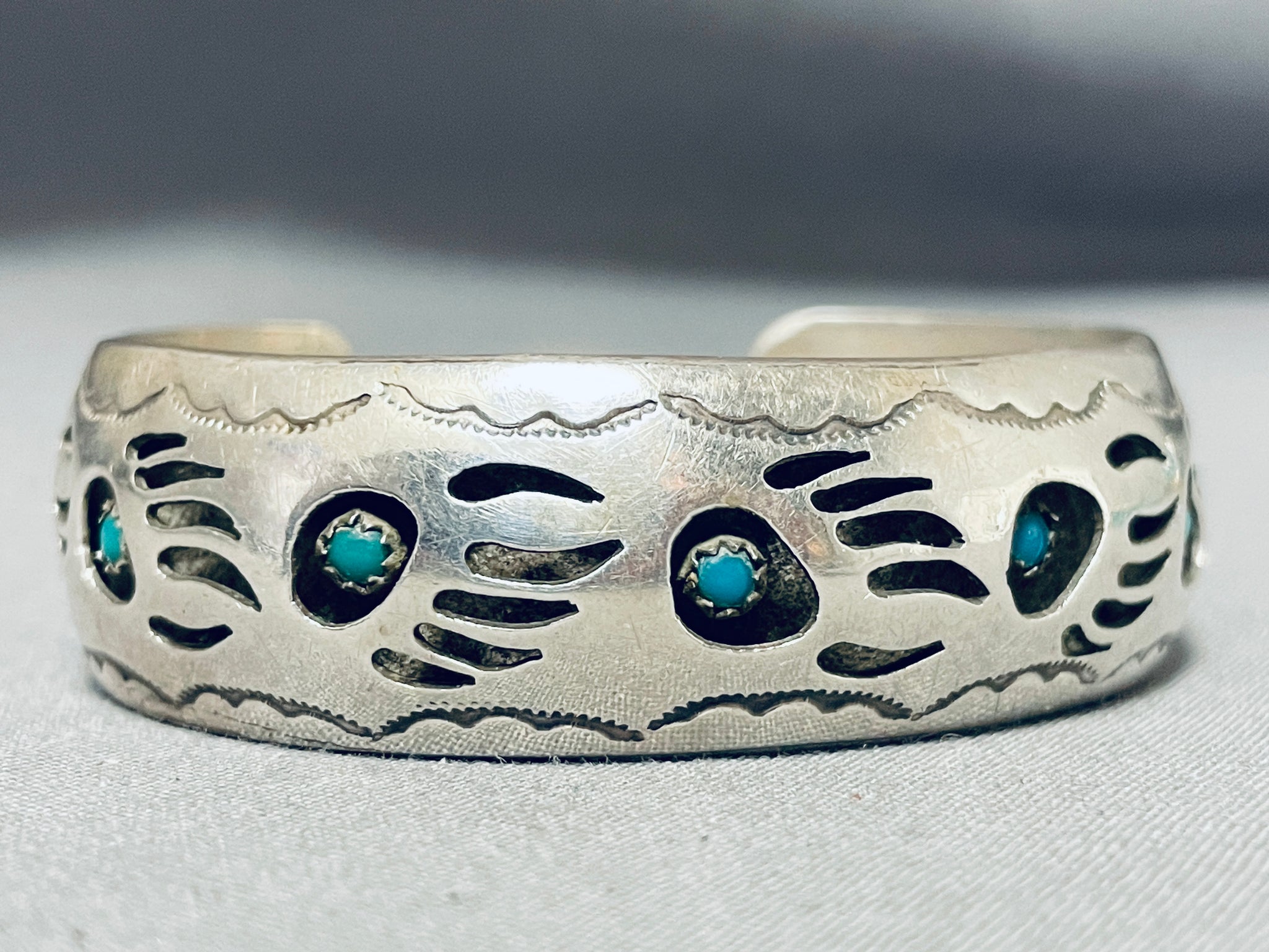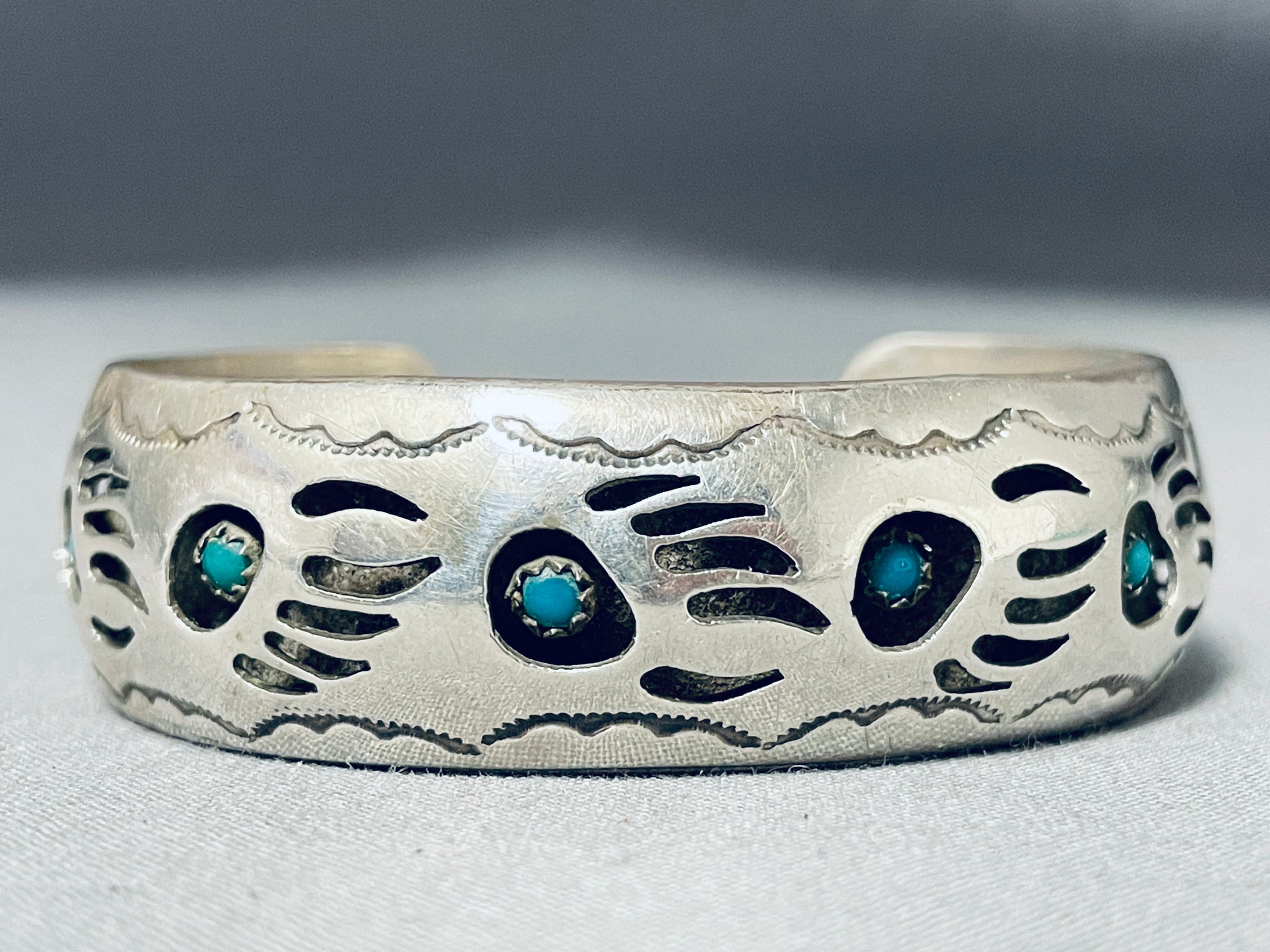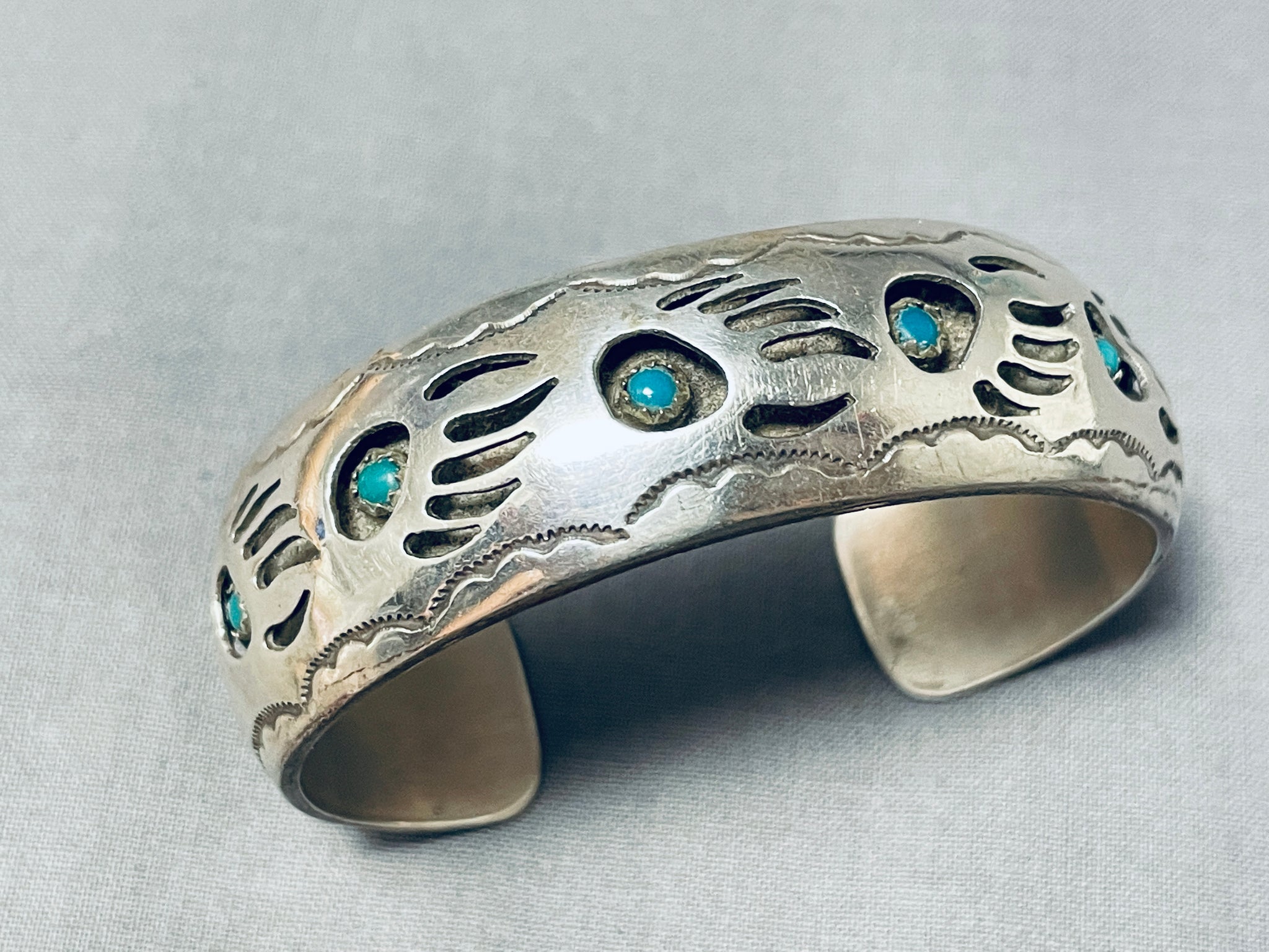 Outstanding Native American Navajo Turquoise Sterling Silver Bracelet Signed