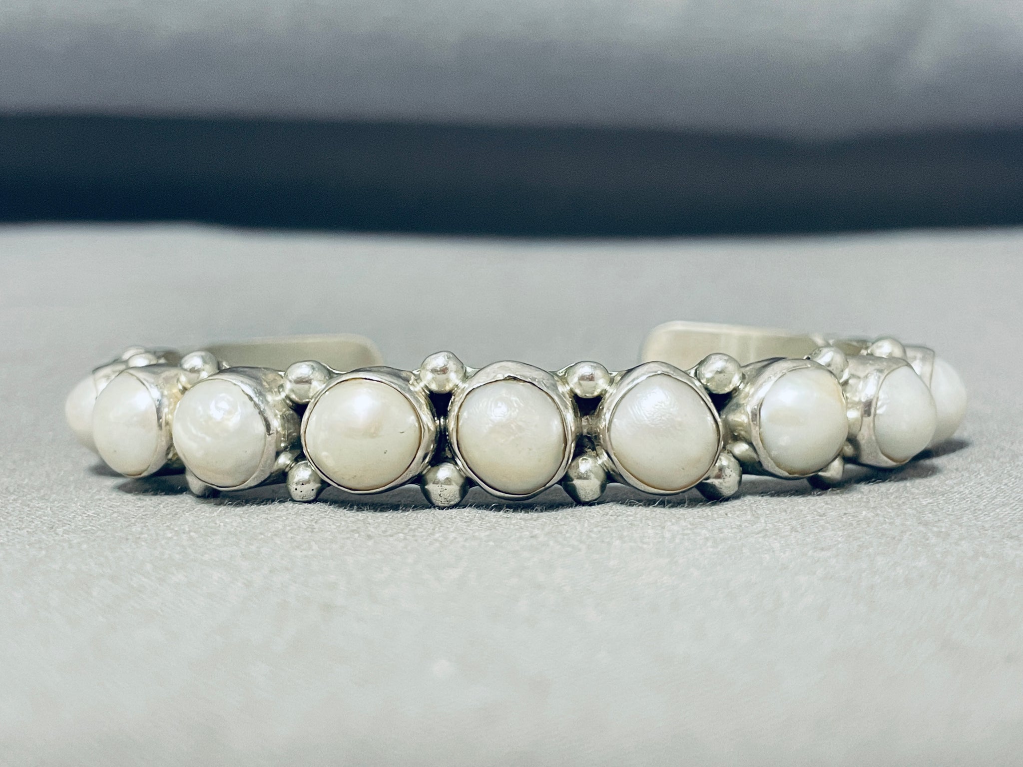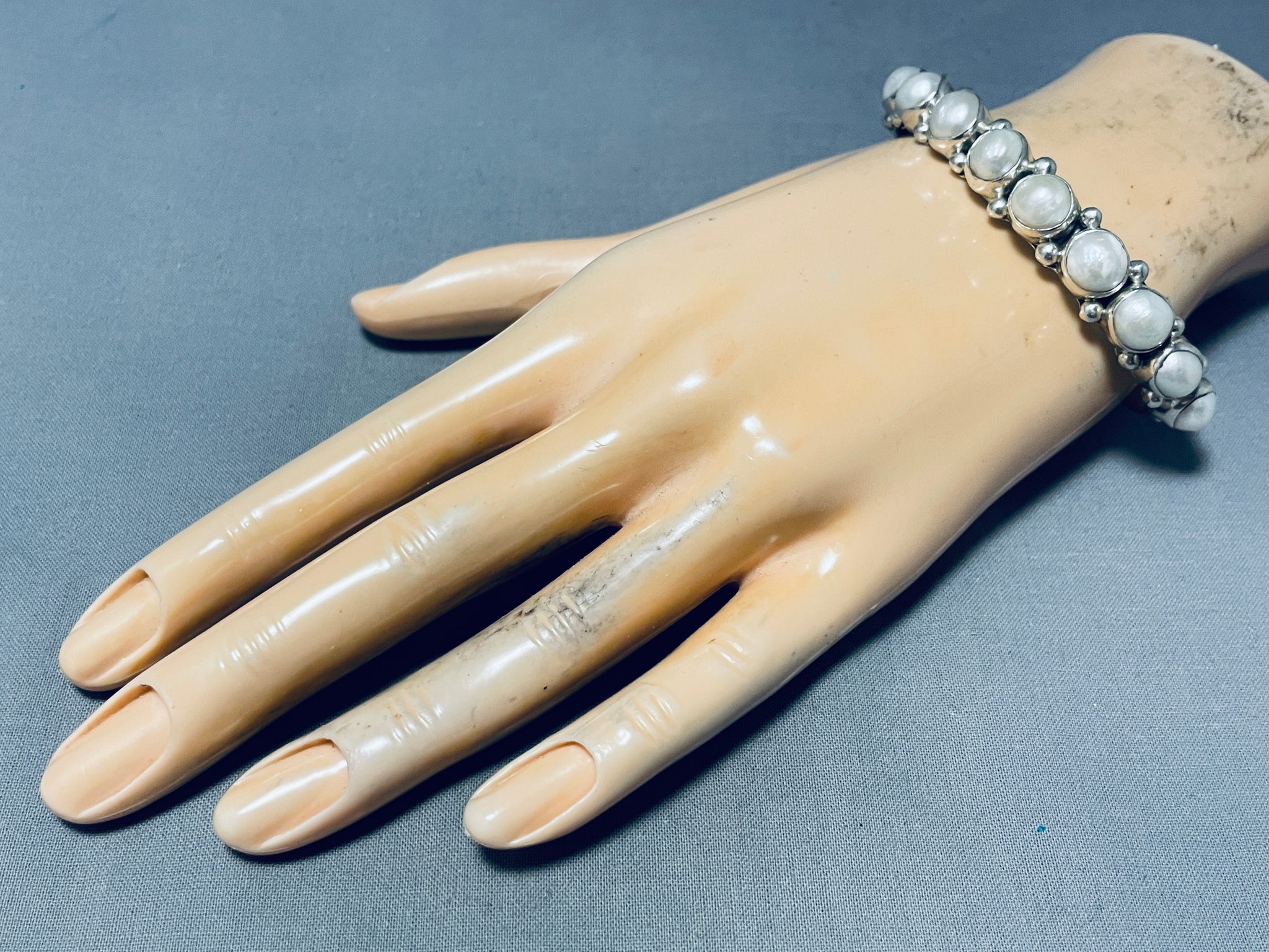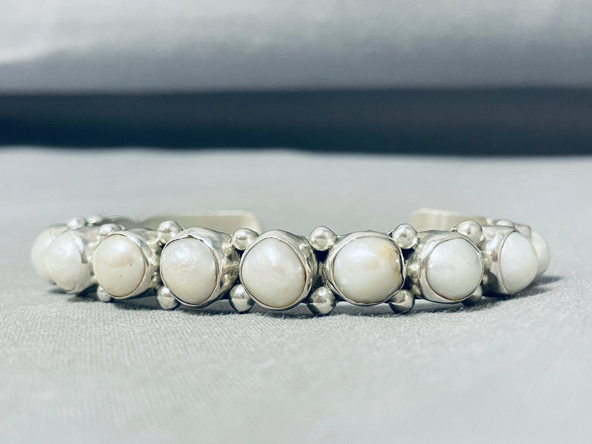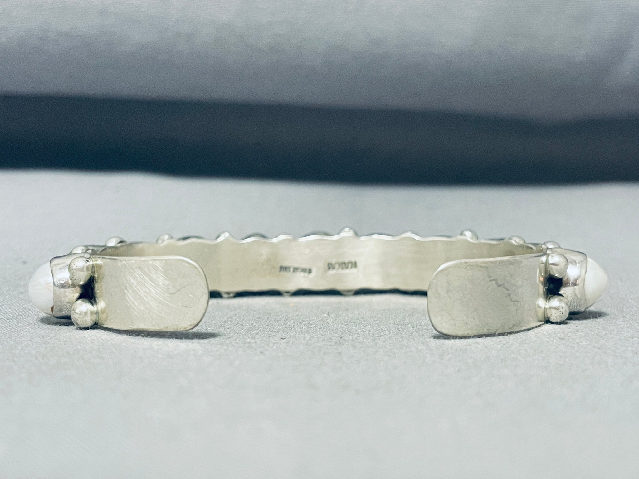 Outstanding Vintage Native American Navajo Pearl Sterling Silver Bracelet Signed Nakai