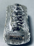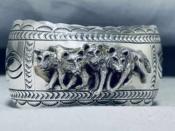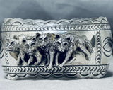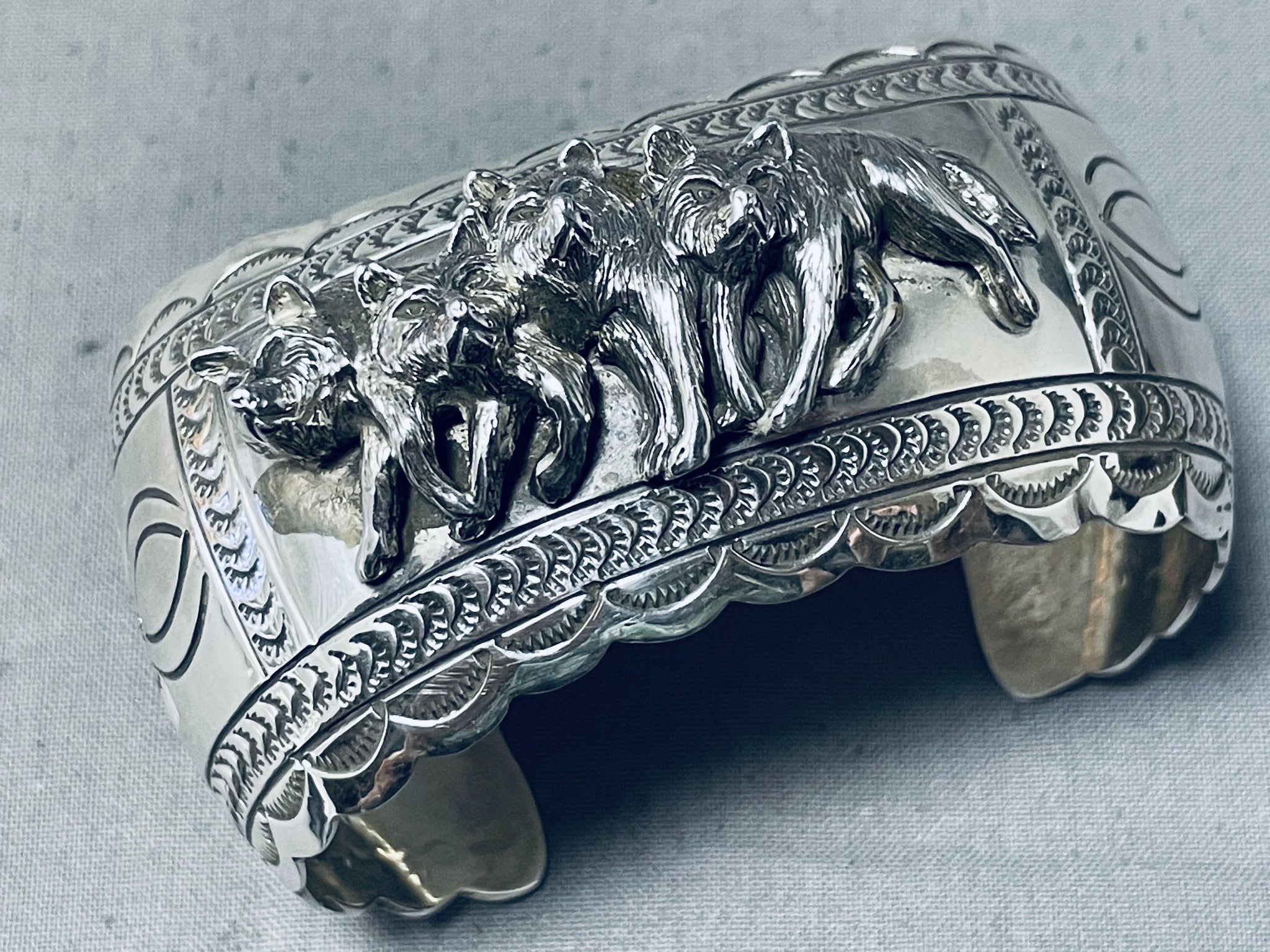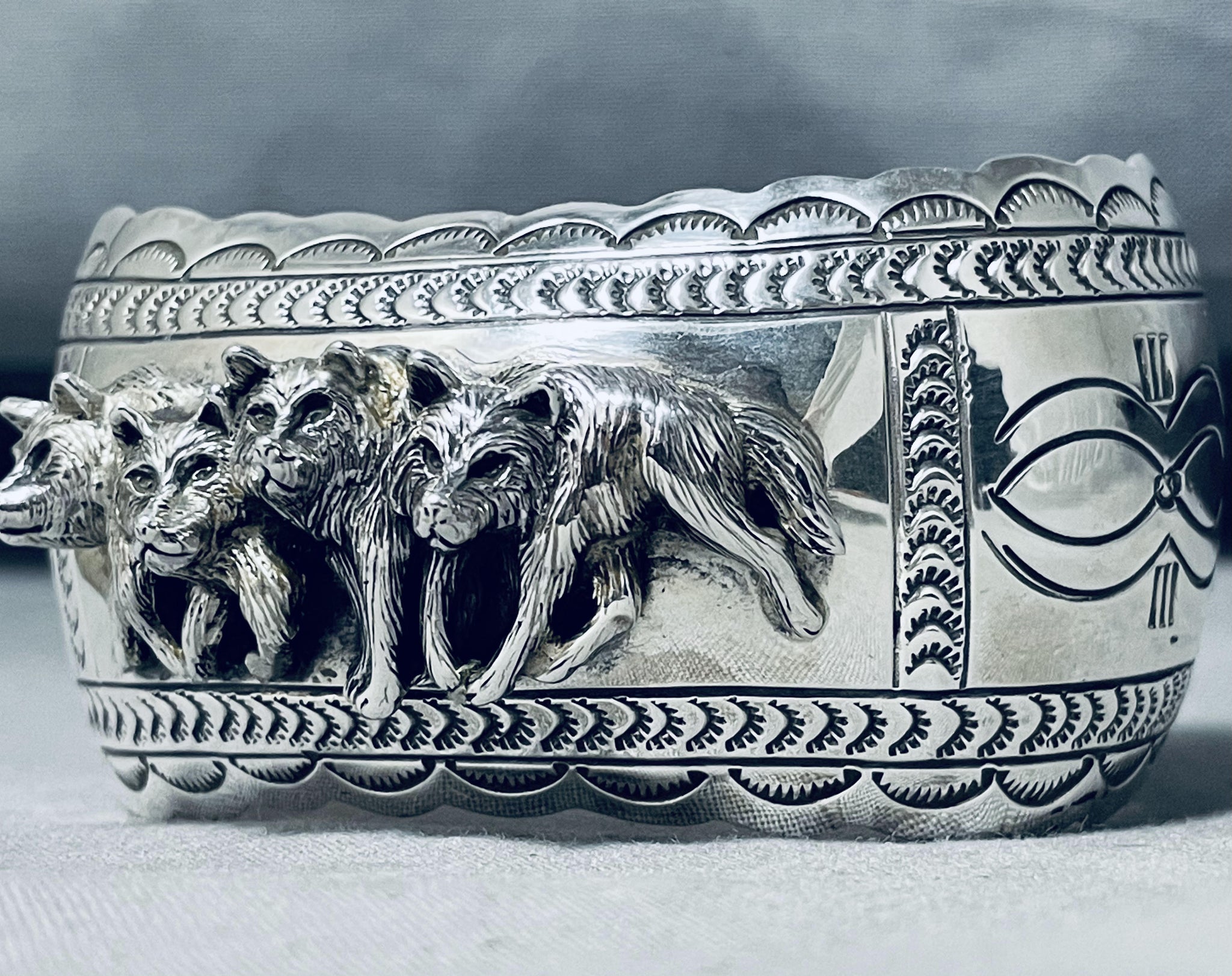 Pack Of Wolves Native American Navajo Sterling Silver Bracelet Cuff