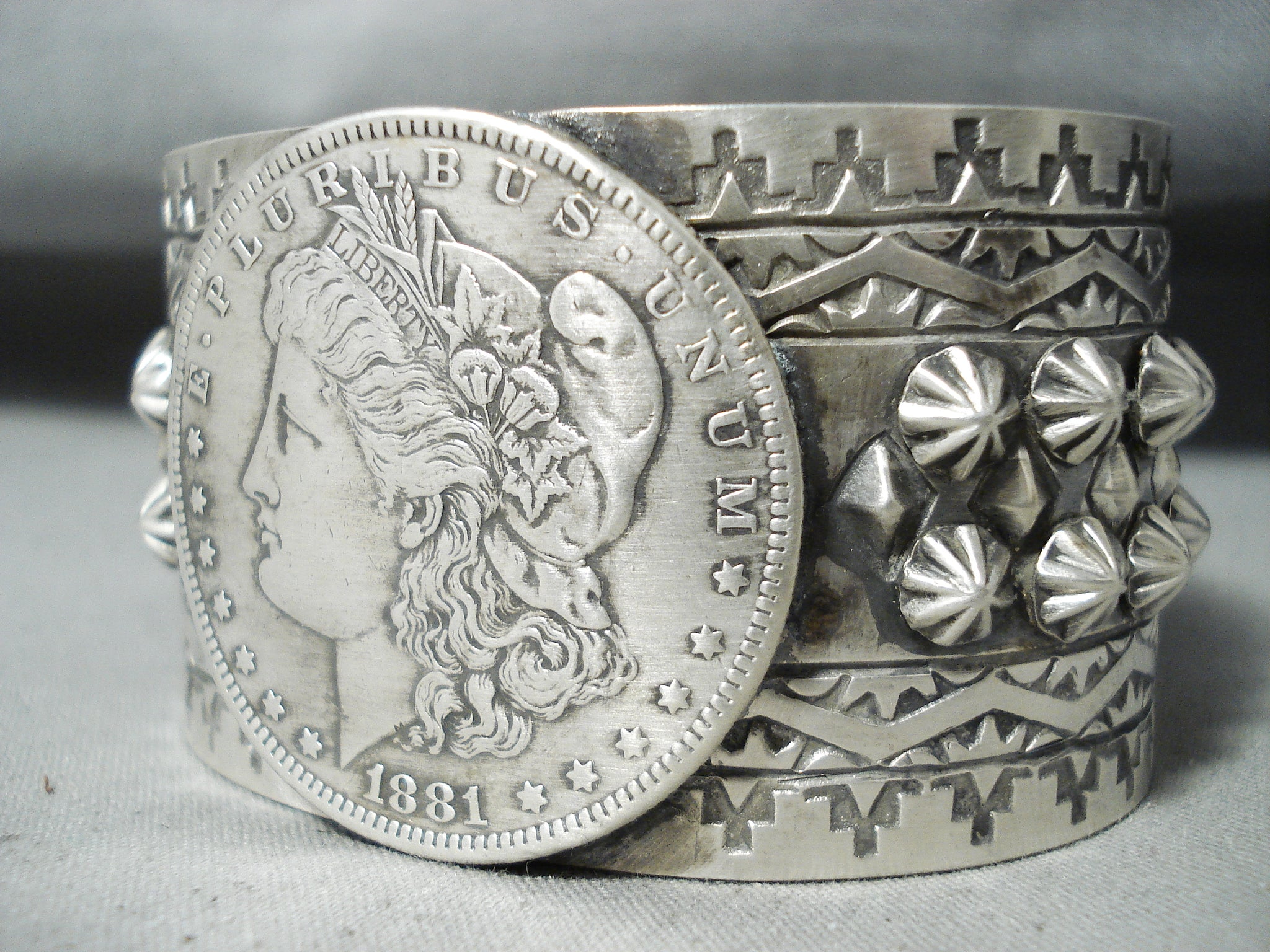 Phenomenal San Felipe Silver Dollar Sterling Silver Signed Bracelet