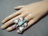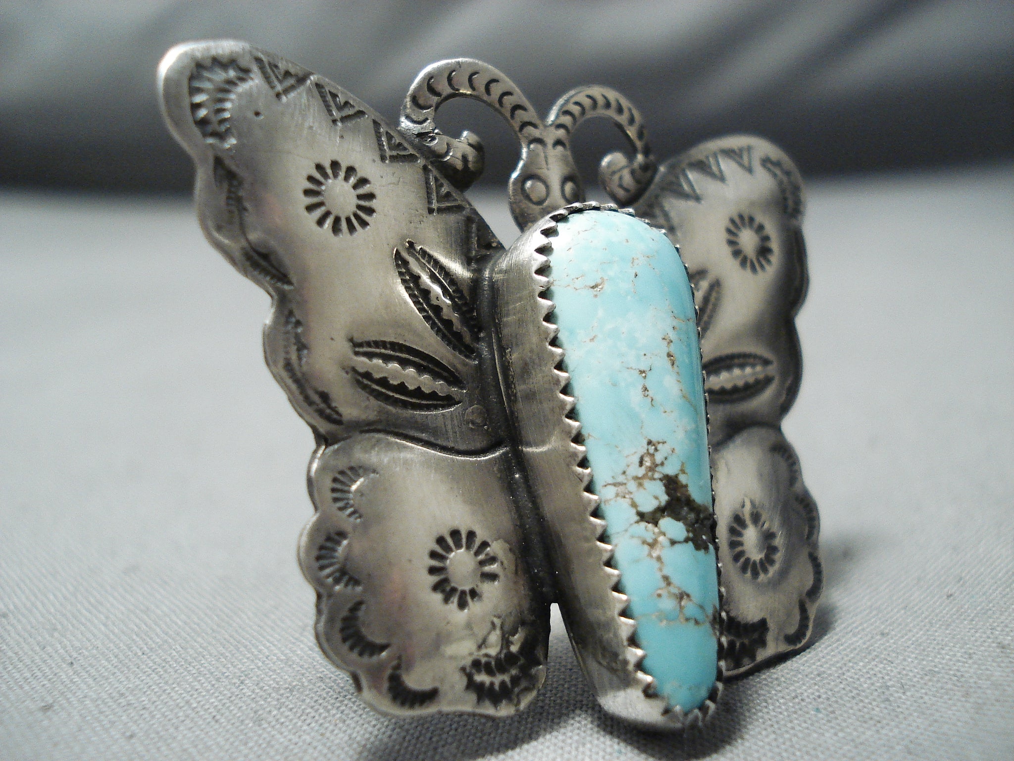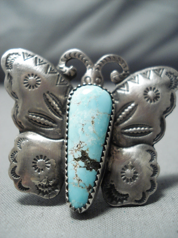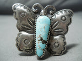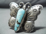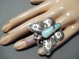 Picturesque Navajo Turquoise Sterling Silver Butterfly Ring Native American