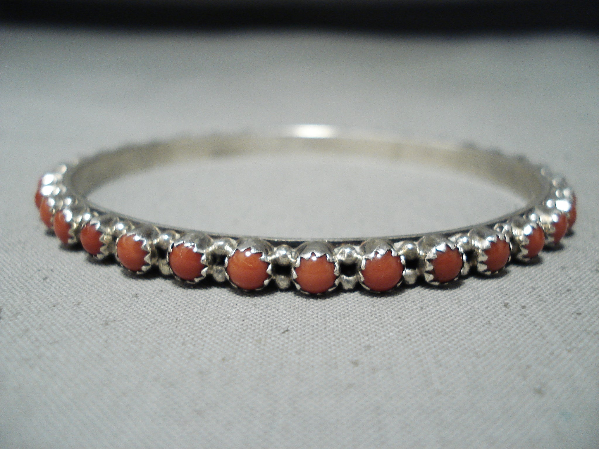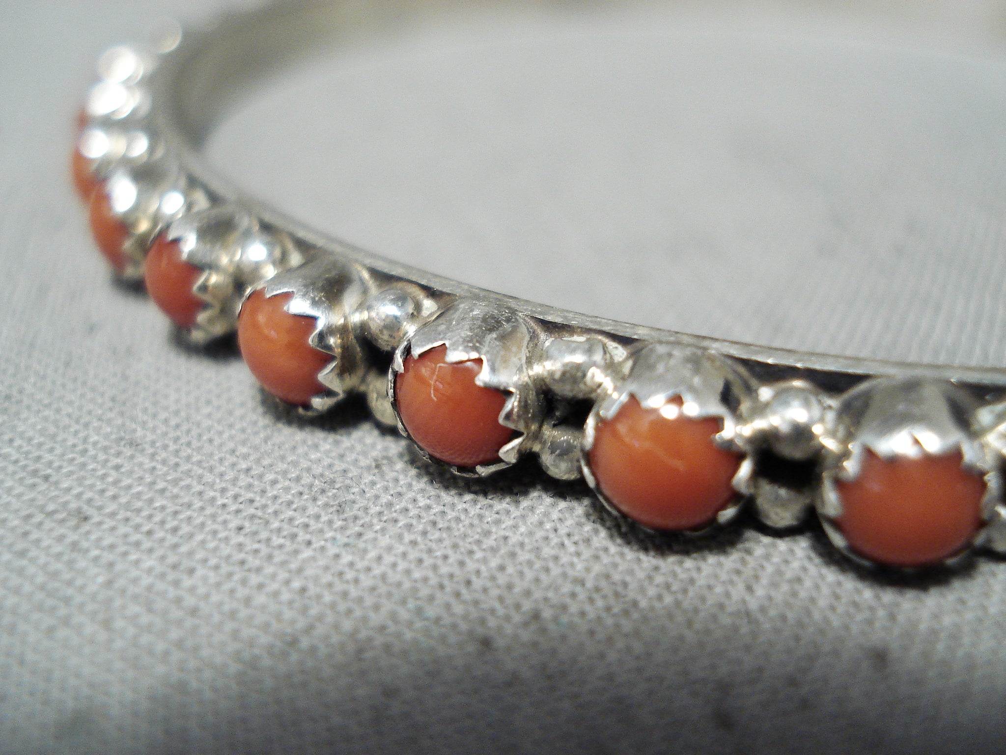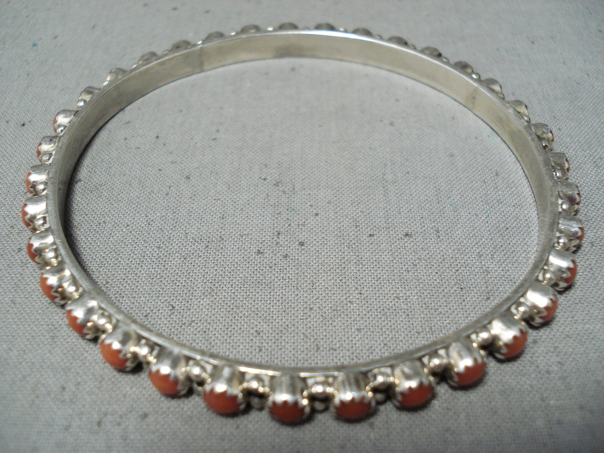 Platero Native American Navajo Coral Sterling Silver Bangle Bracelet