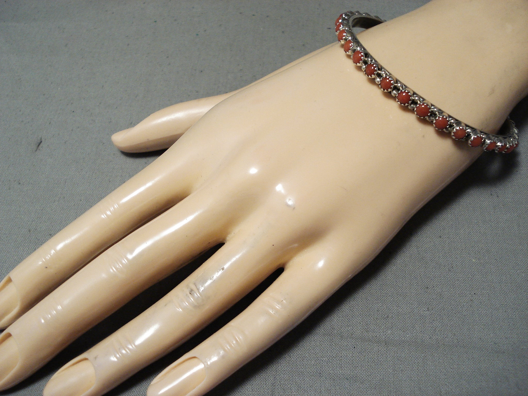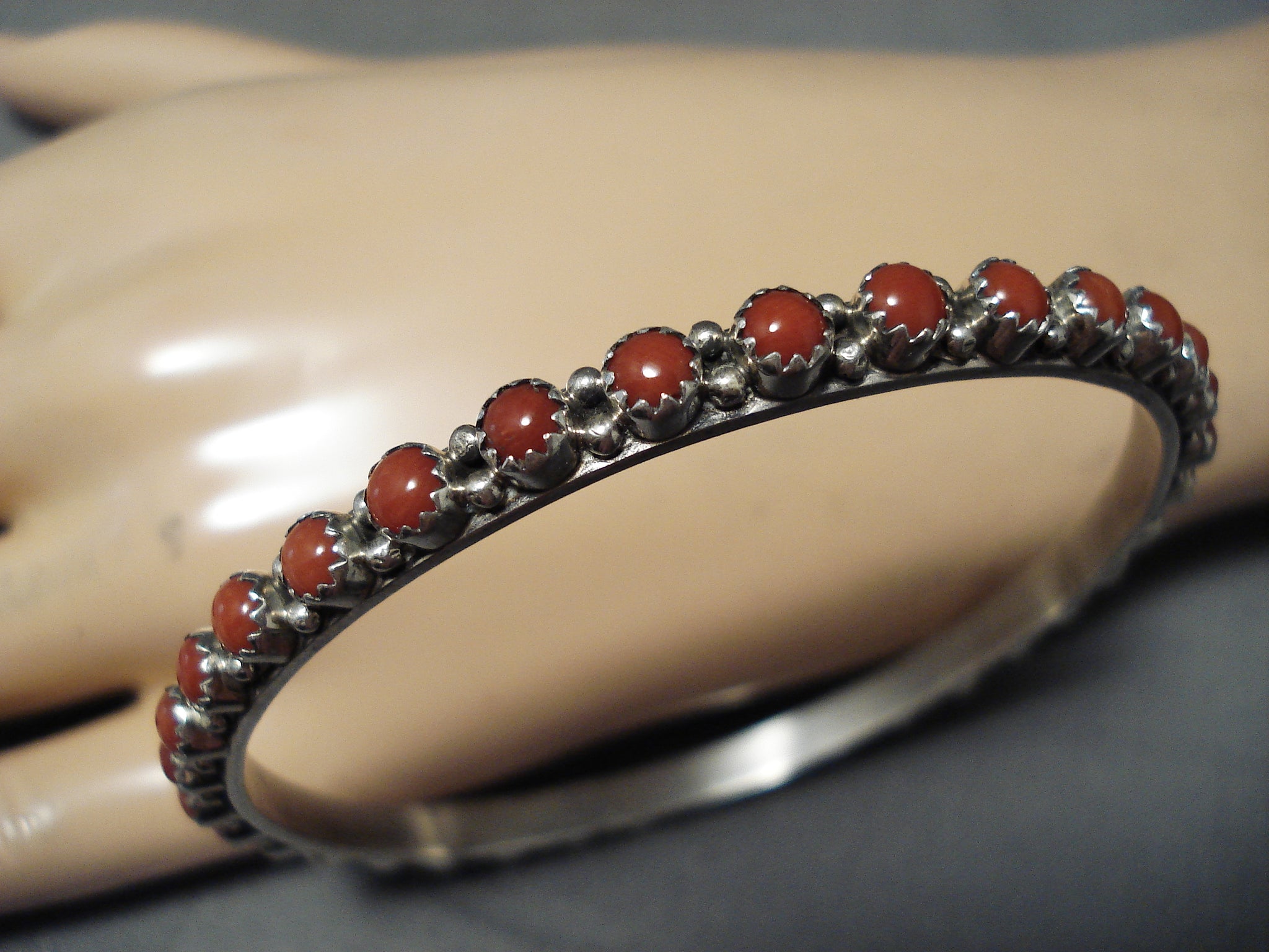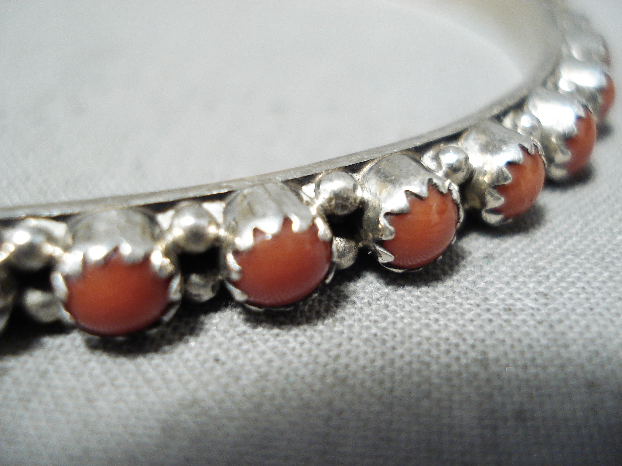 Platero Native American Navajo Coral Sterling Silver Bangle Bracelet