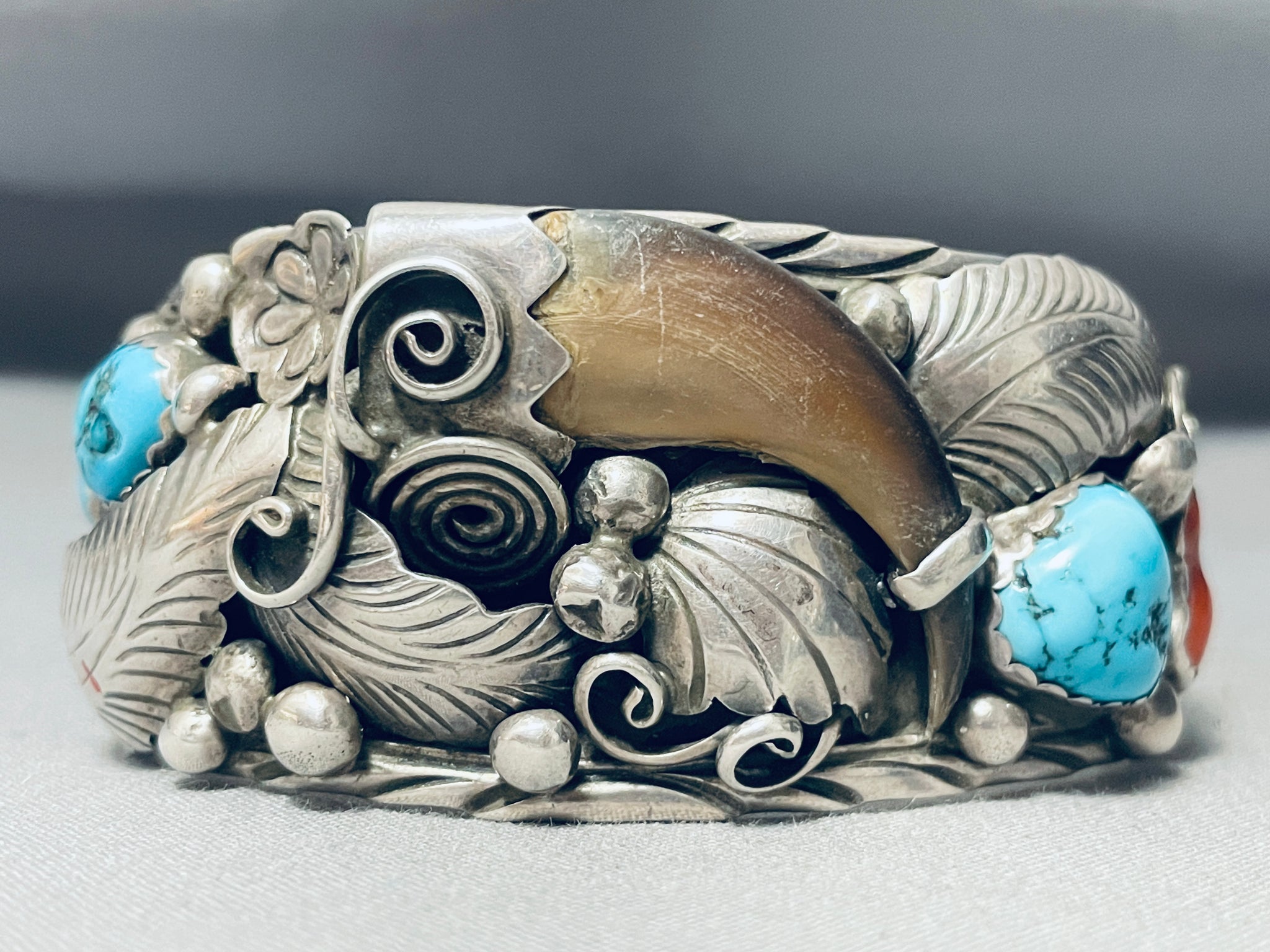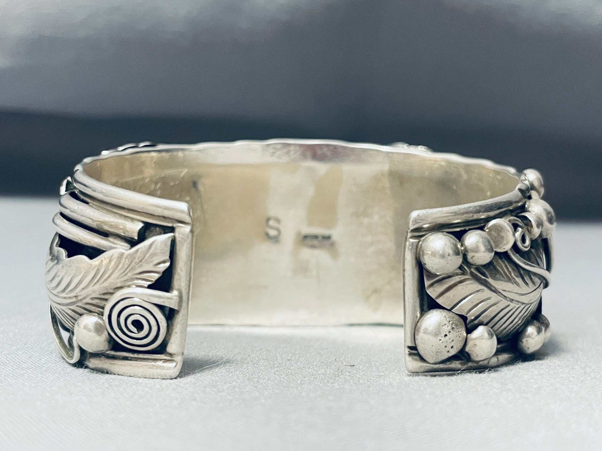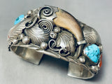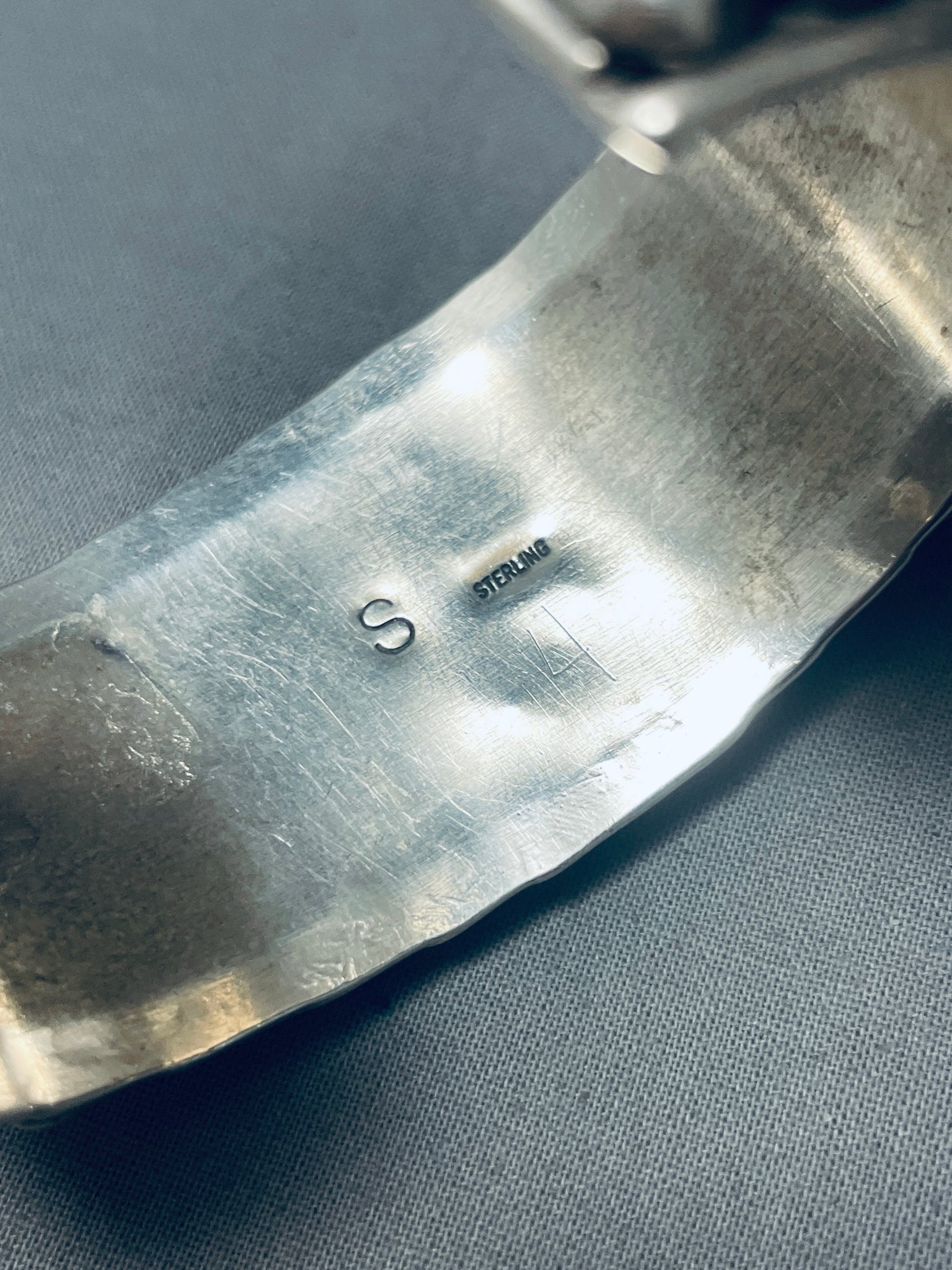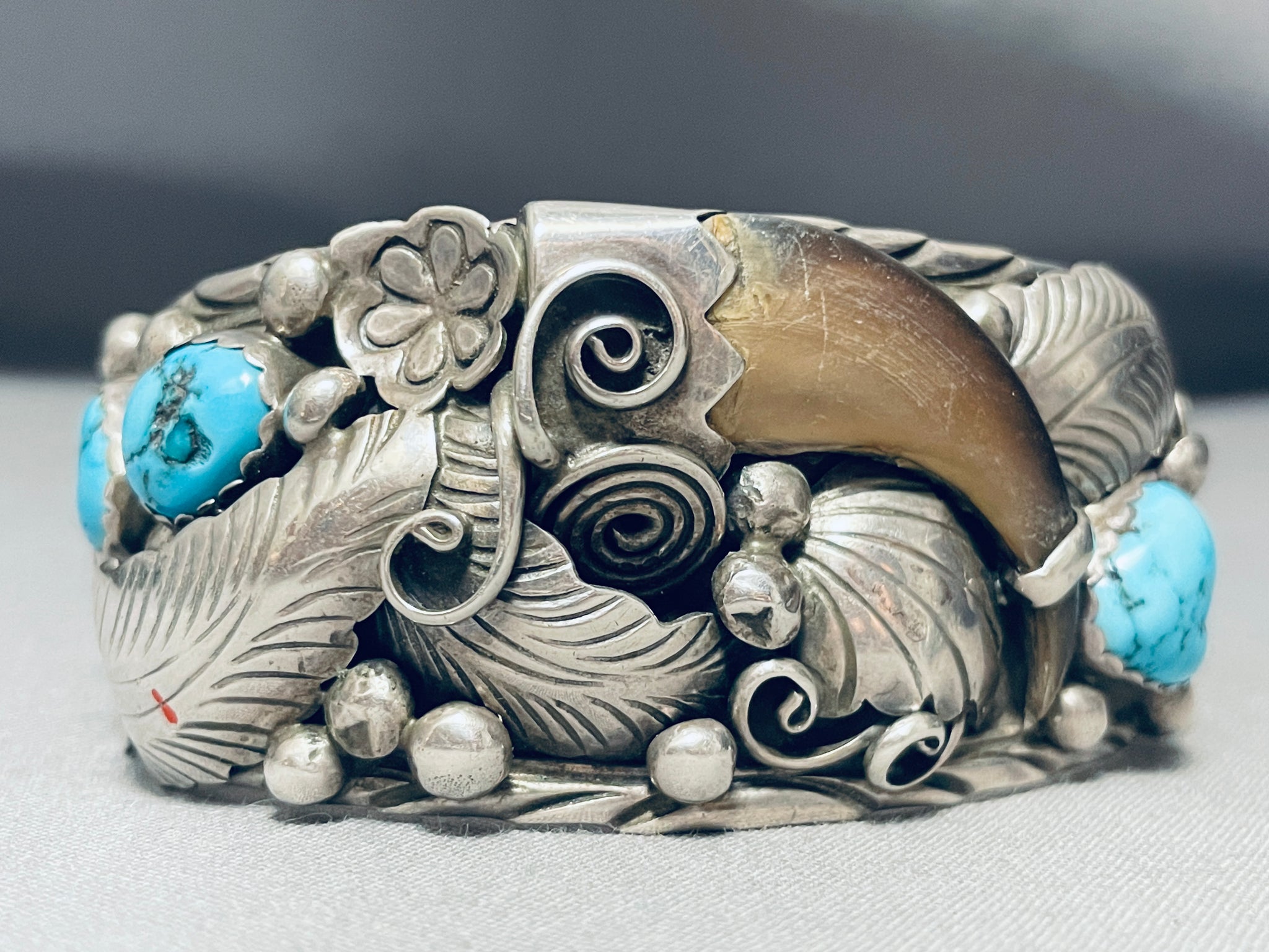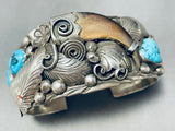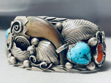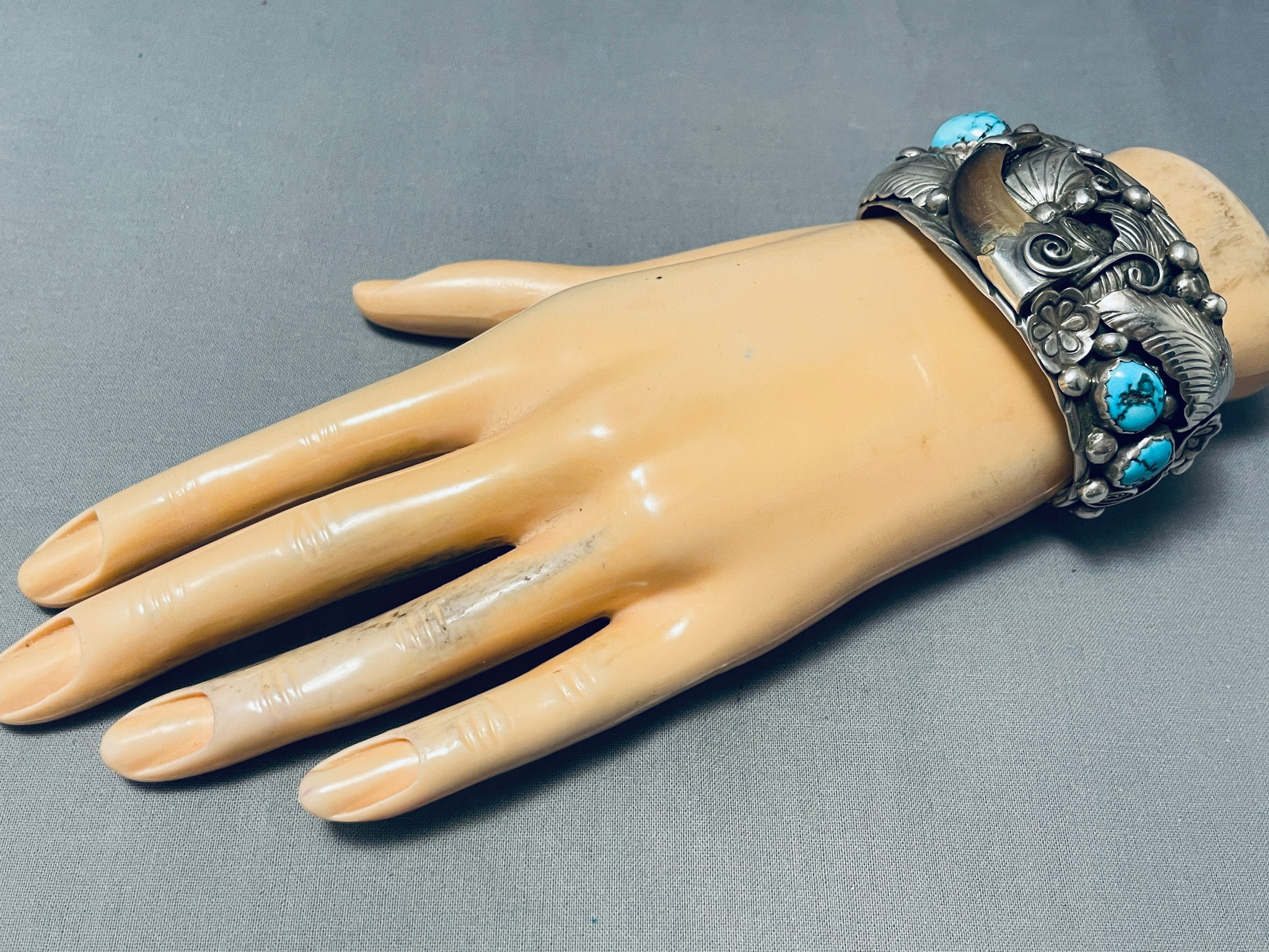 Powerful Signed Vintage Native American Navajo Turquoise Sterling Silver Bracelet