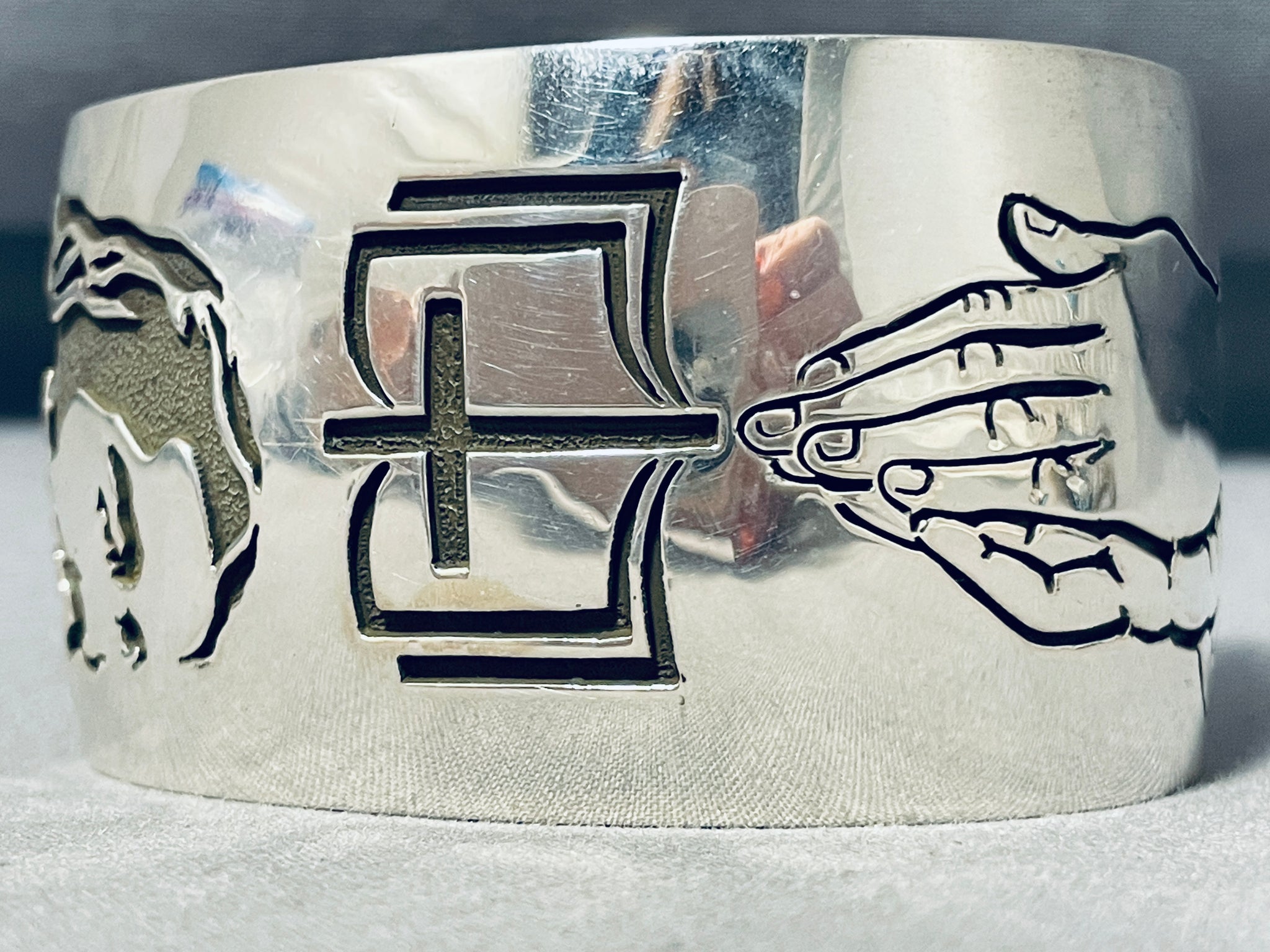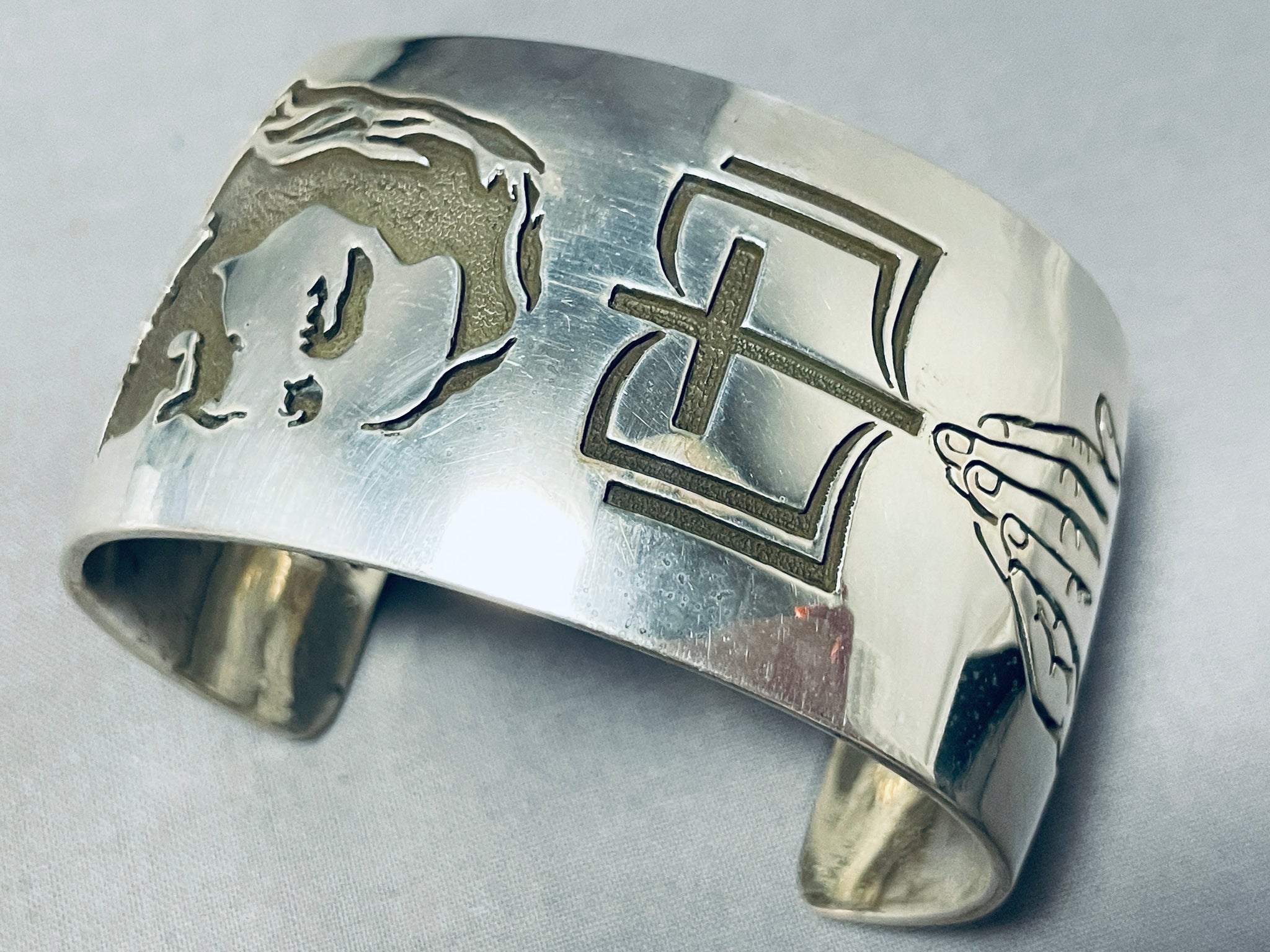 Praying Hands Vintage Native American Navajo Sterling Silver Christian Bracelet