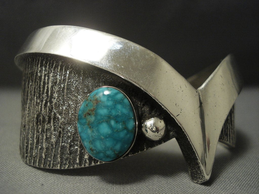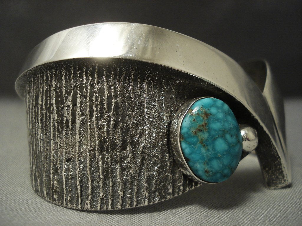 Rare Aaron Anderson Navajo Tufa Cast Native American Jewelry Silver Bracelet